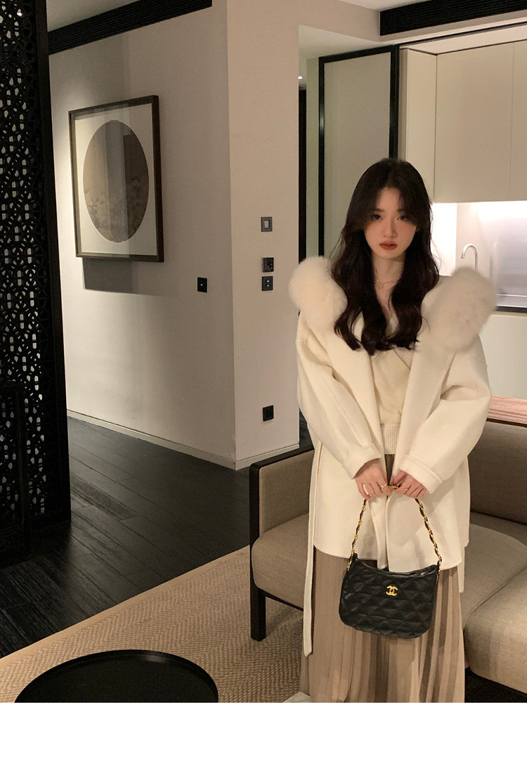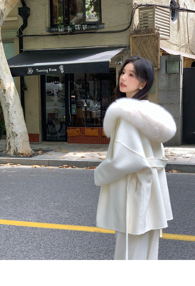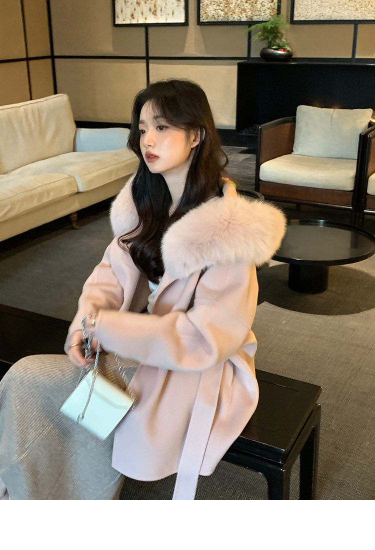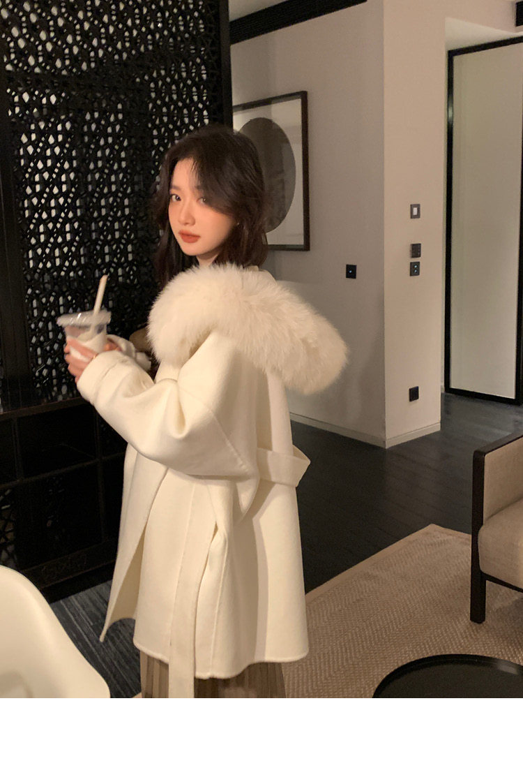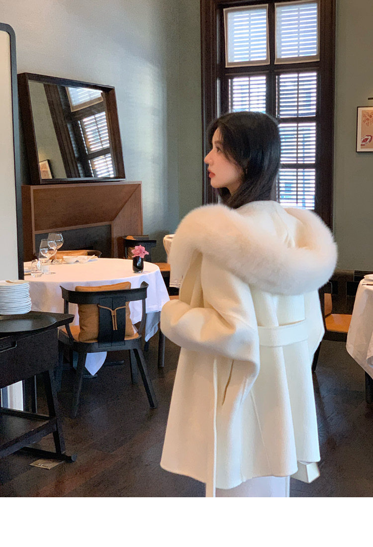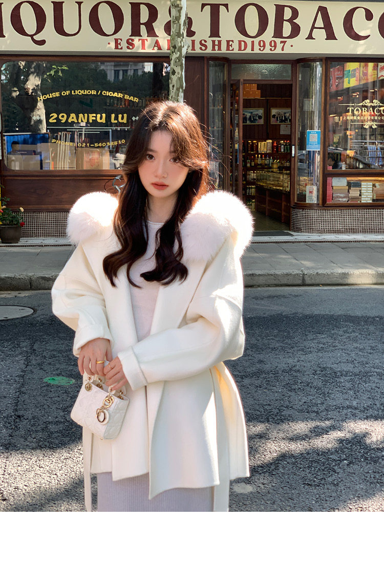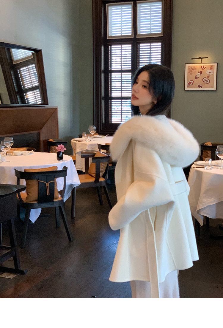 2025 Moonlight Coat for Women, Autumn and Winter Woolen Jacket with Hood, New Double-Sided Cashmere Cape with Fox Fur, High-End Feel