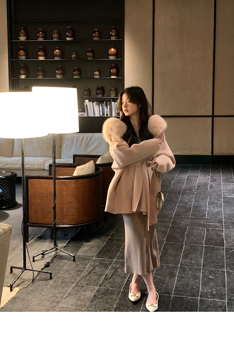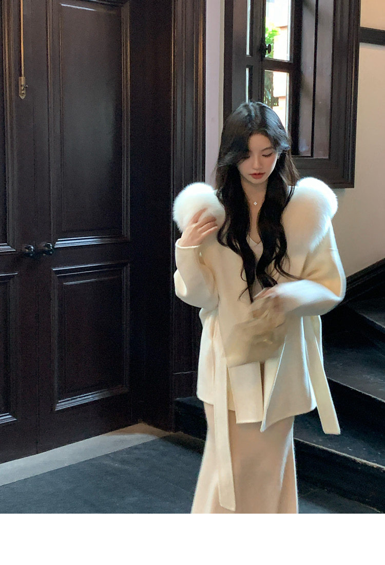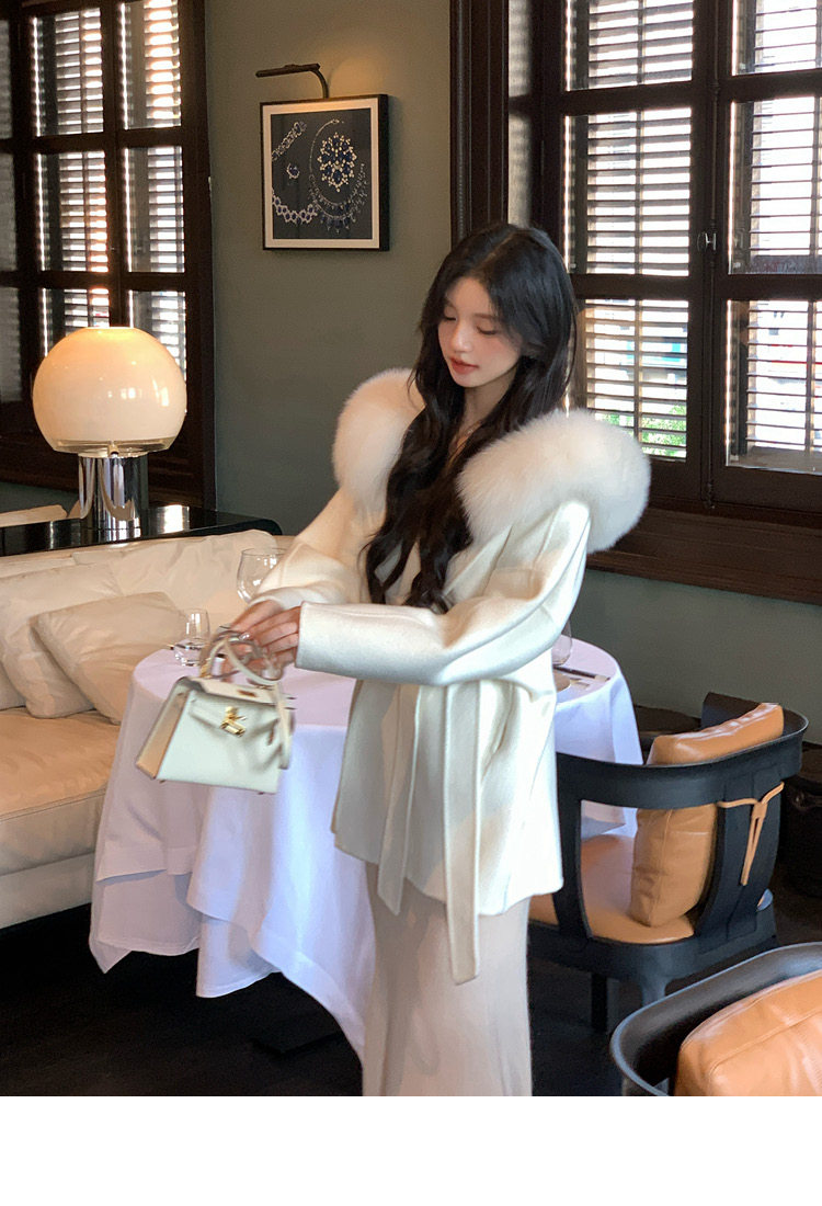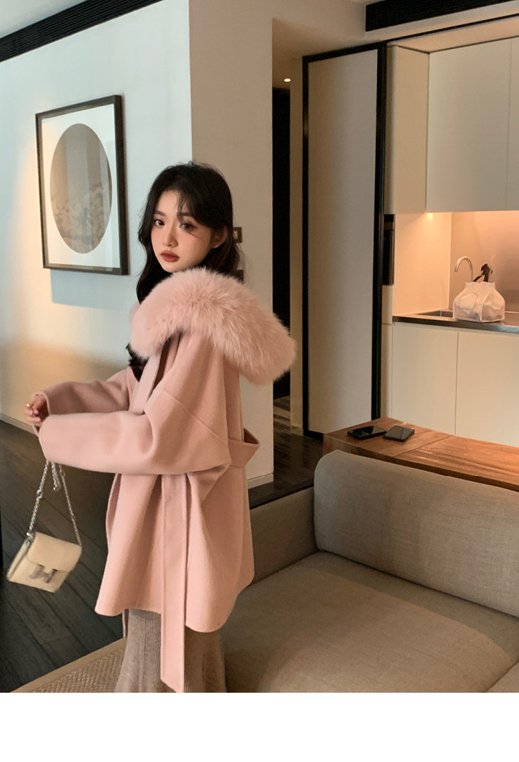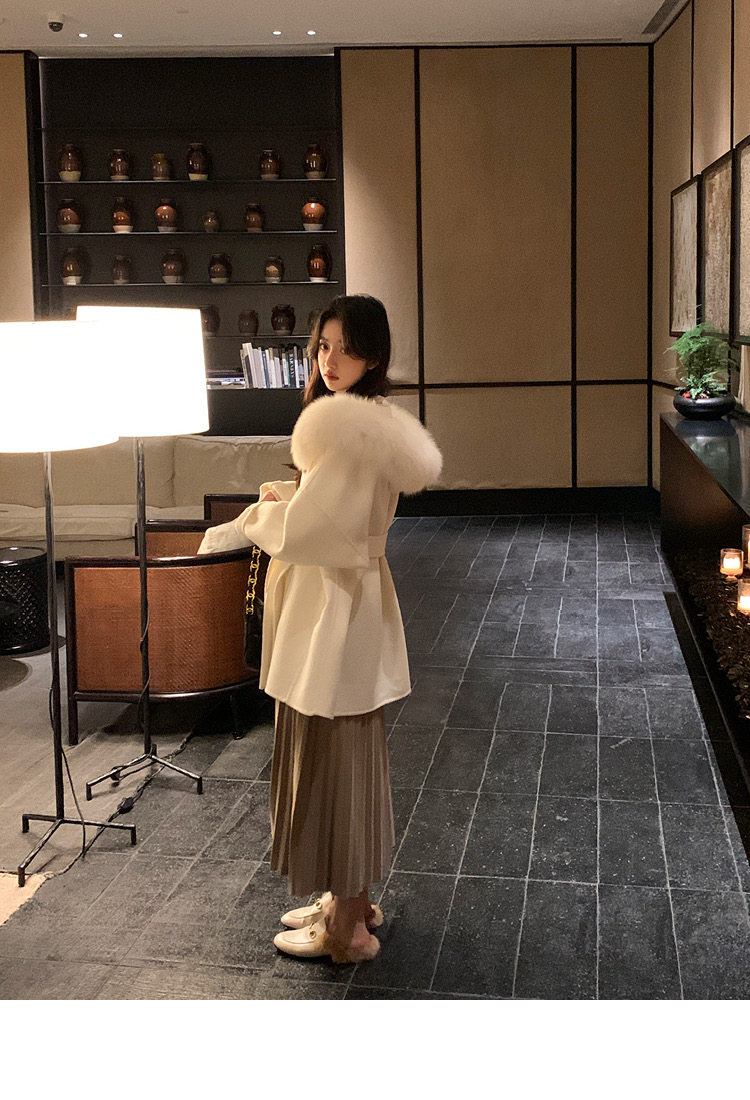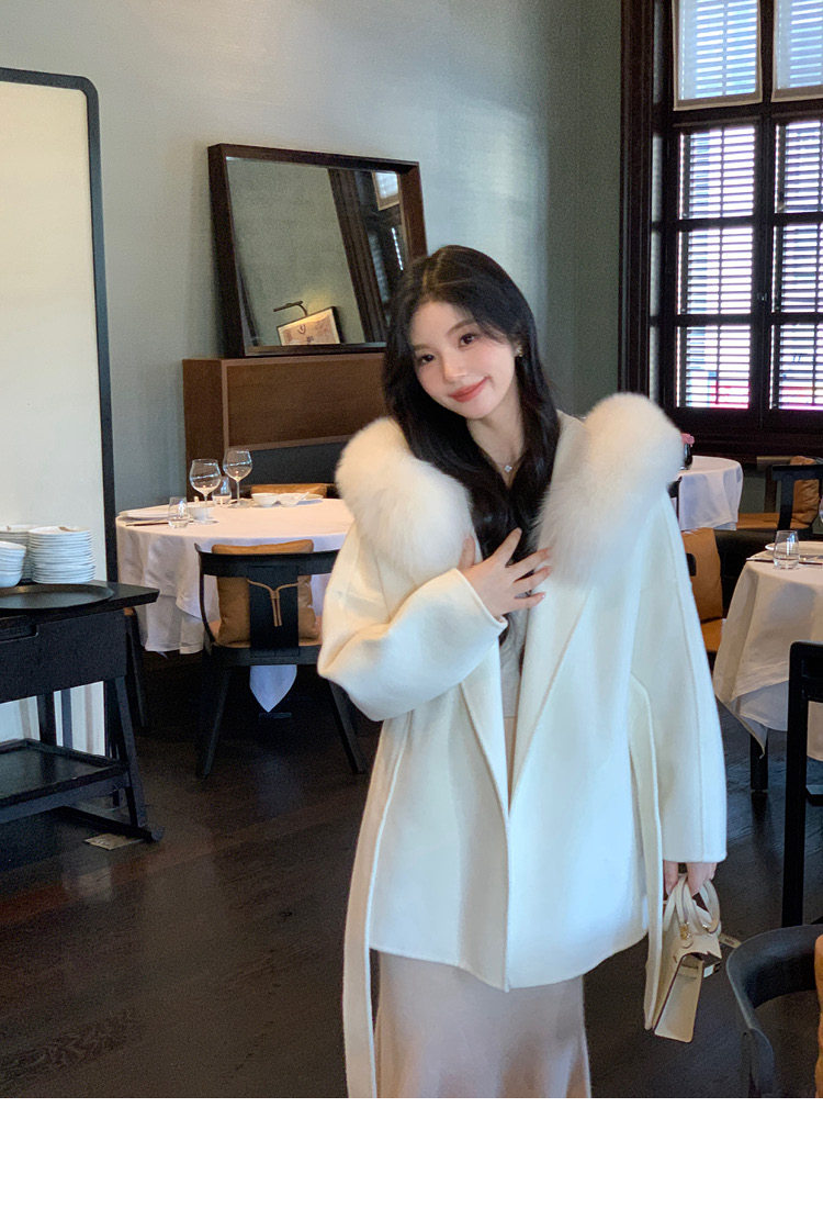 2025 Moonlight Coat for Women, Autumn and Winter Woolen Jacket with Hood, New Double-Sided Cashmere Cape with Fox Fur, High-End Feel