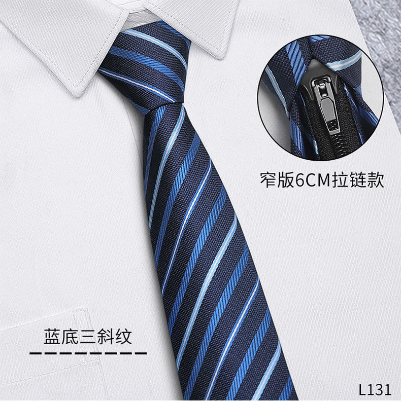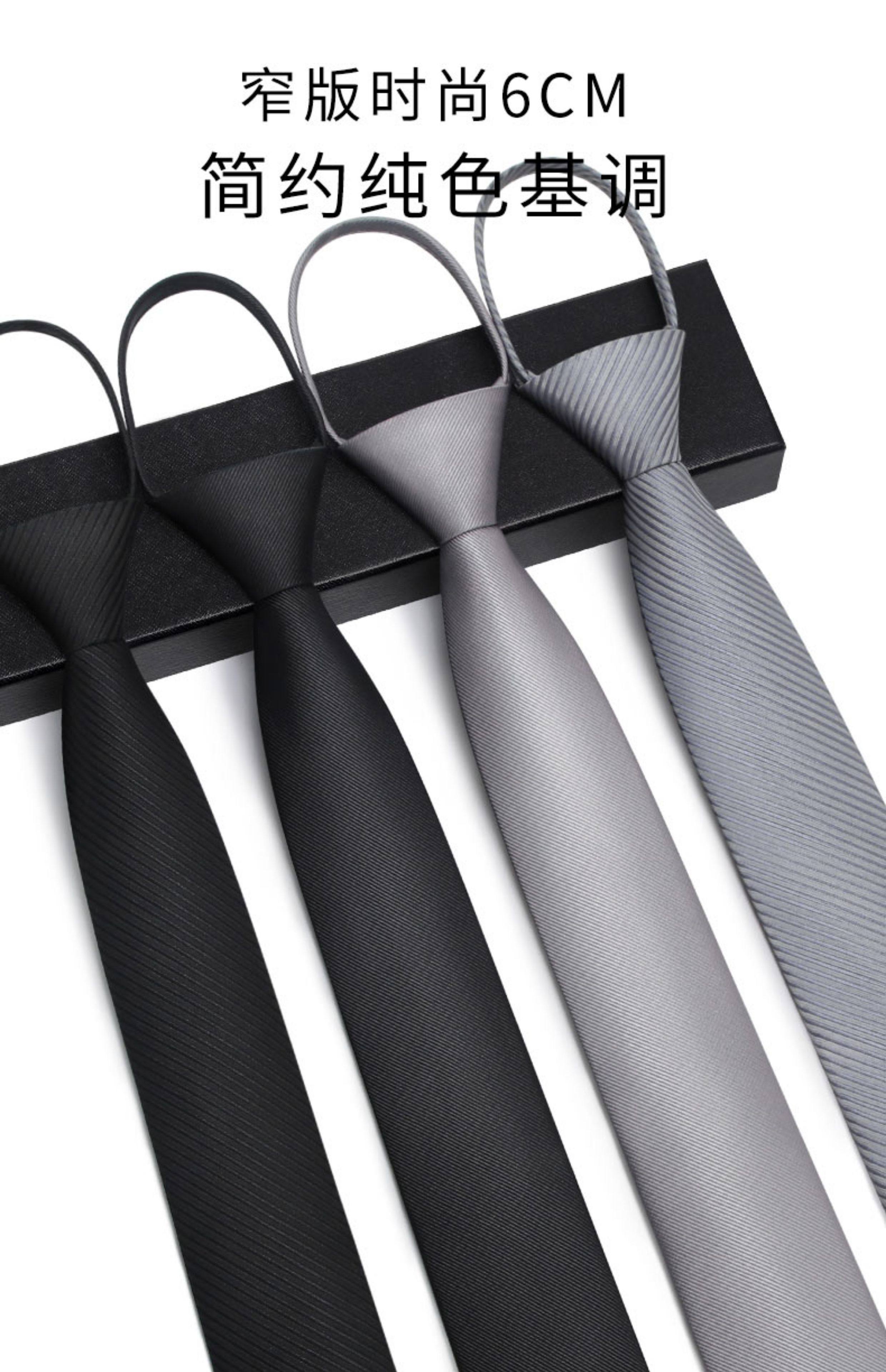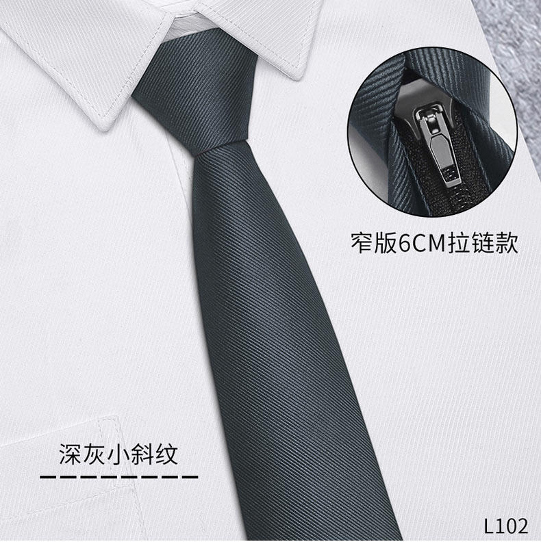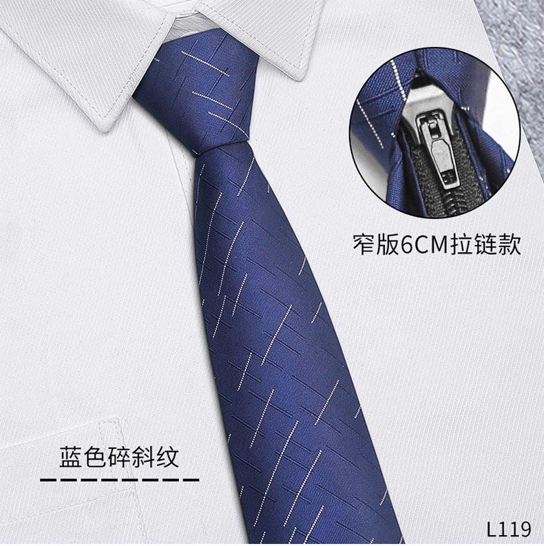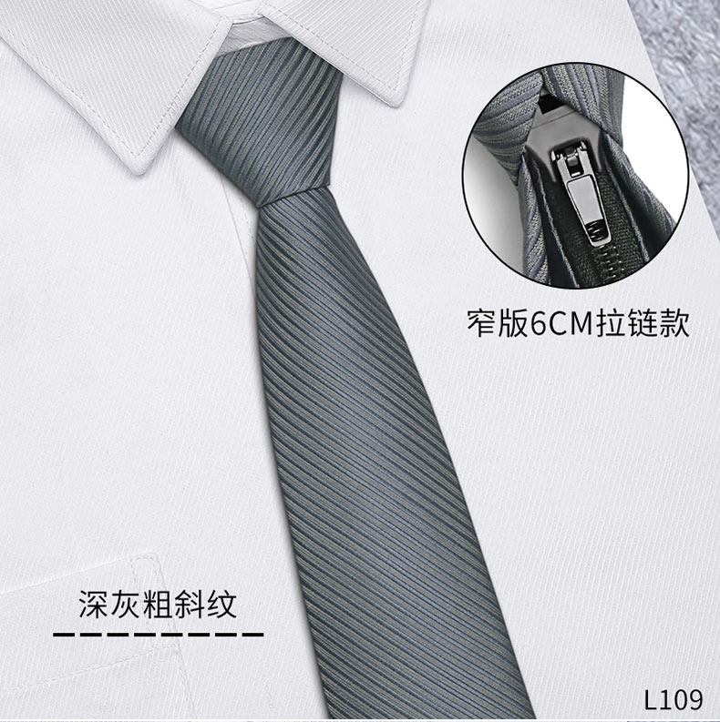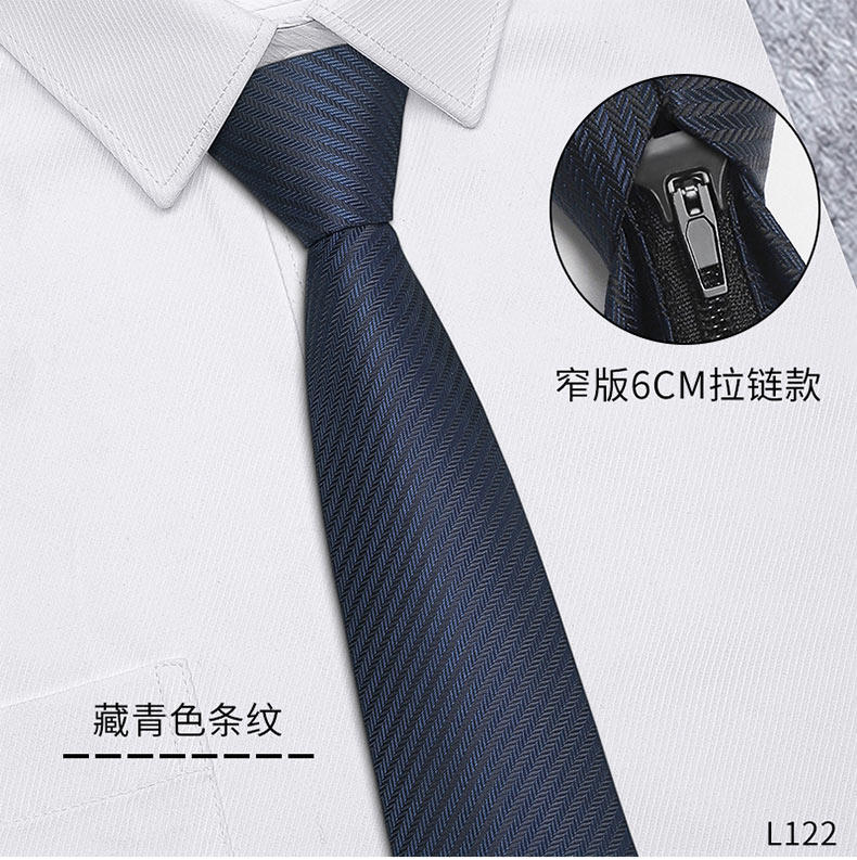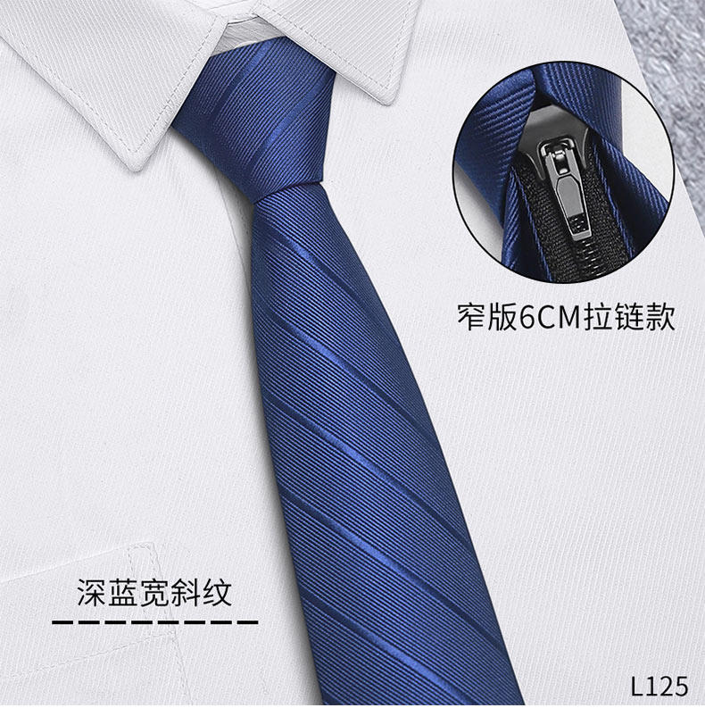 Black Tie for Men, Korean Style, Casual Blue and Gray Trendy Zipper Type, No-Knot Lazy Tie for Work and Suits