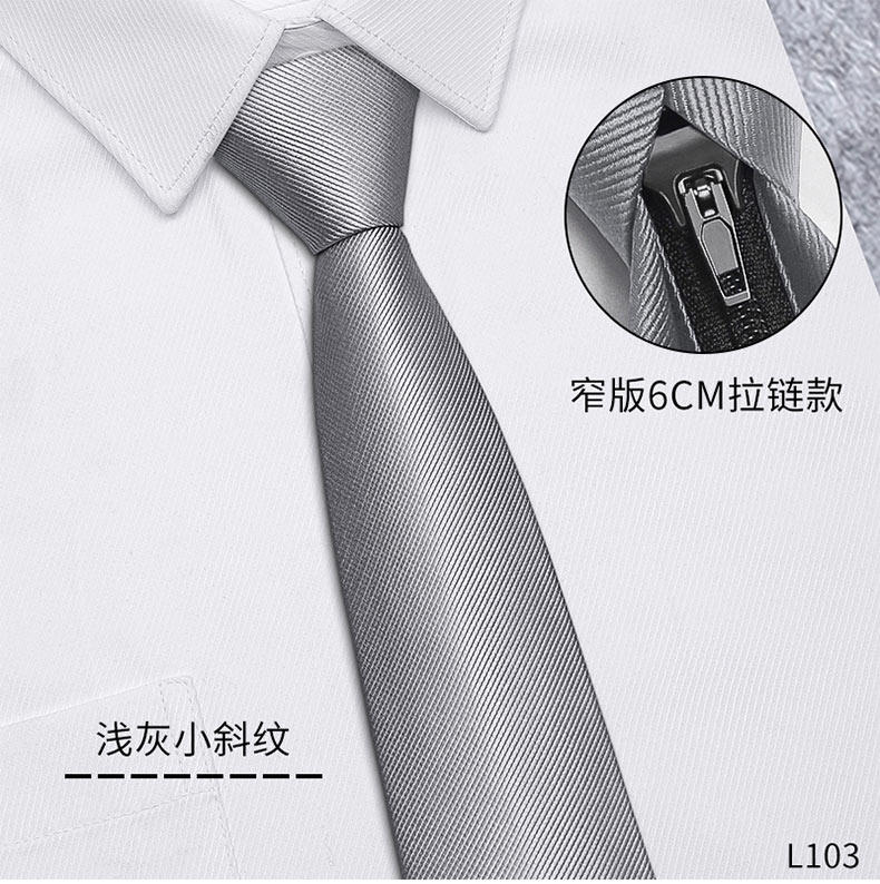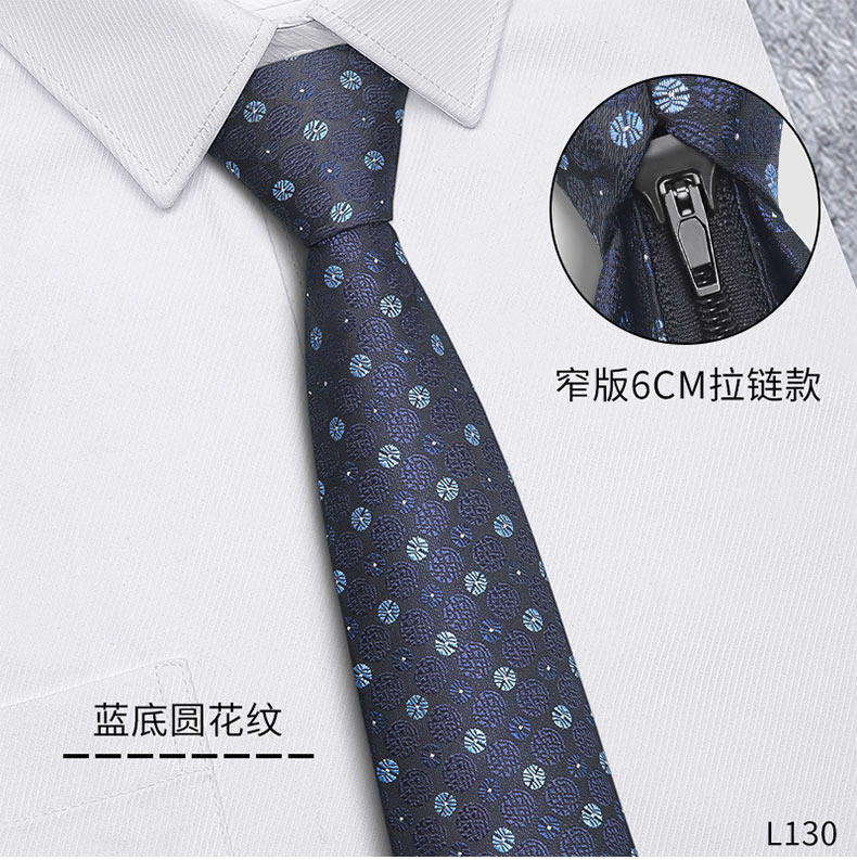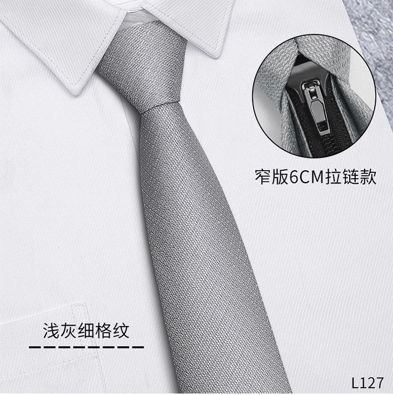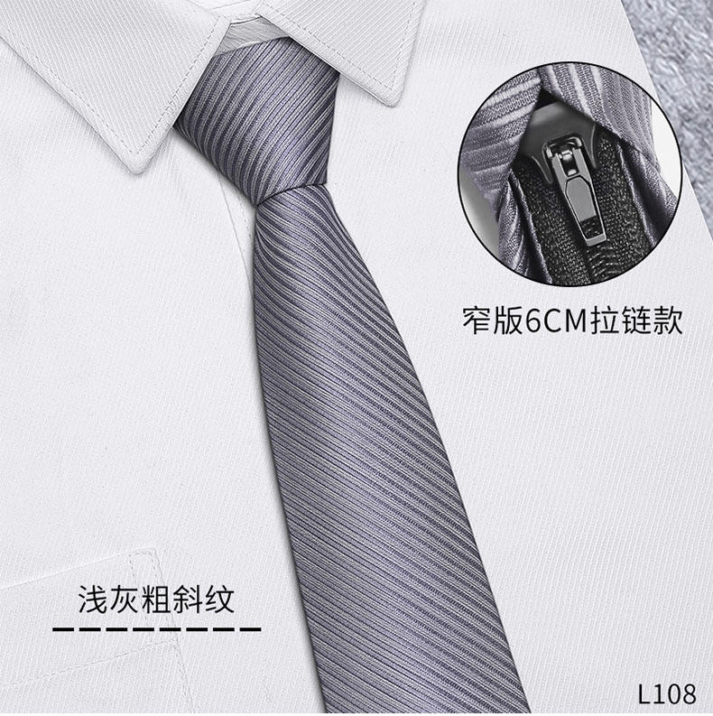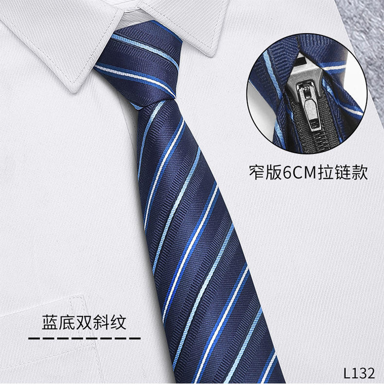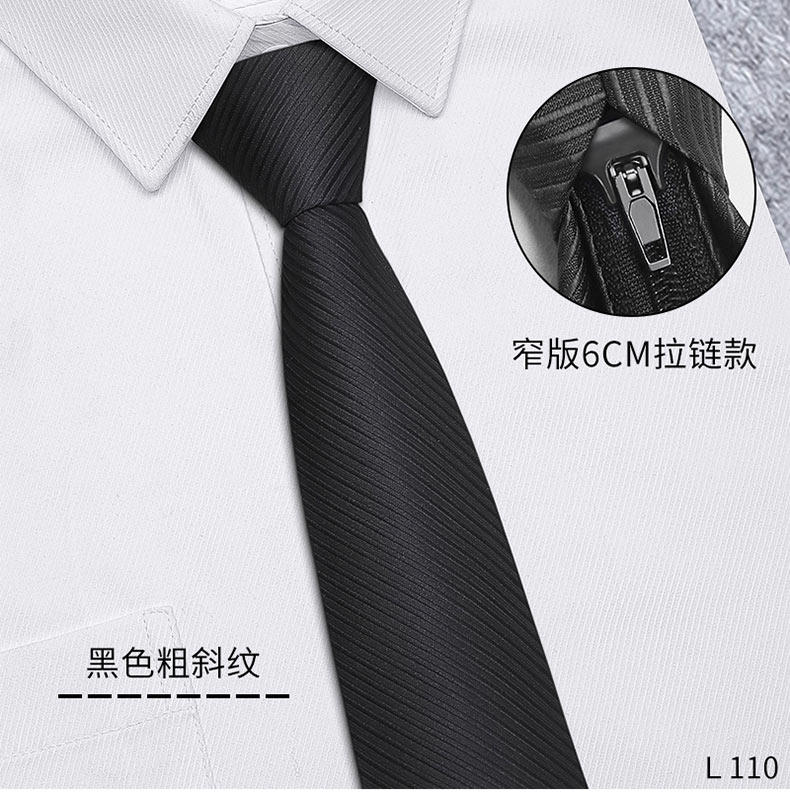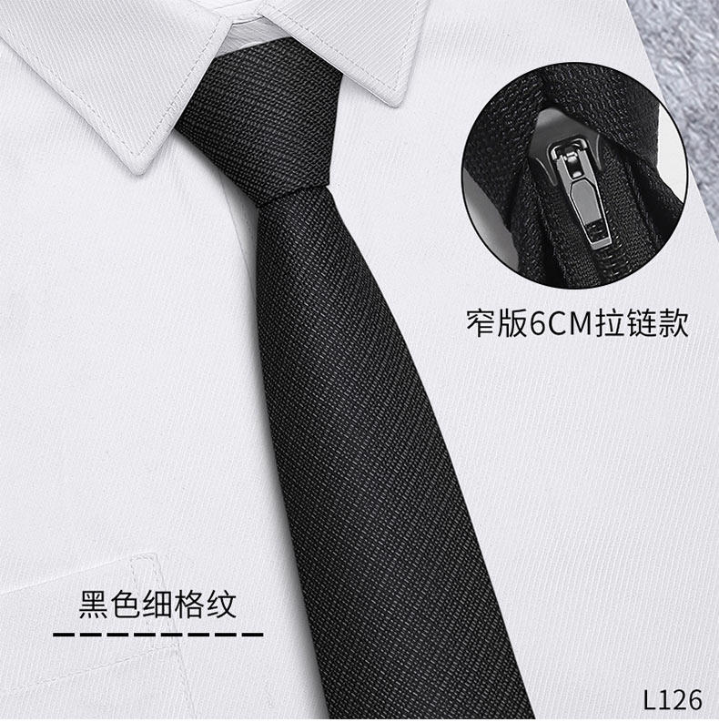 Black Tie for Men, Korean Style, Casual Blue and Gray Trendy Zipper Type, No-Knot Lazy Tie for Work and Suits