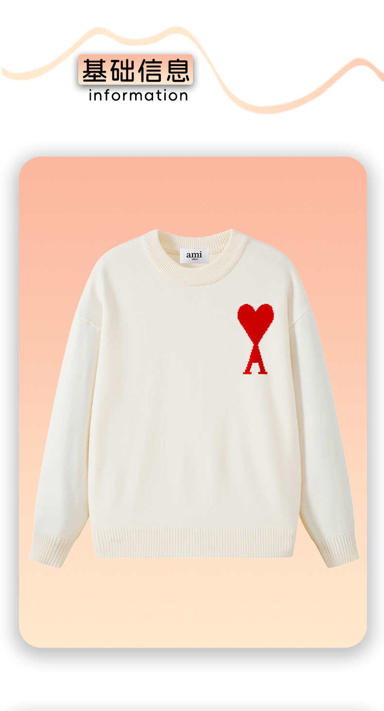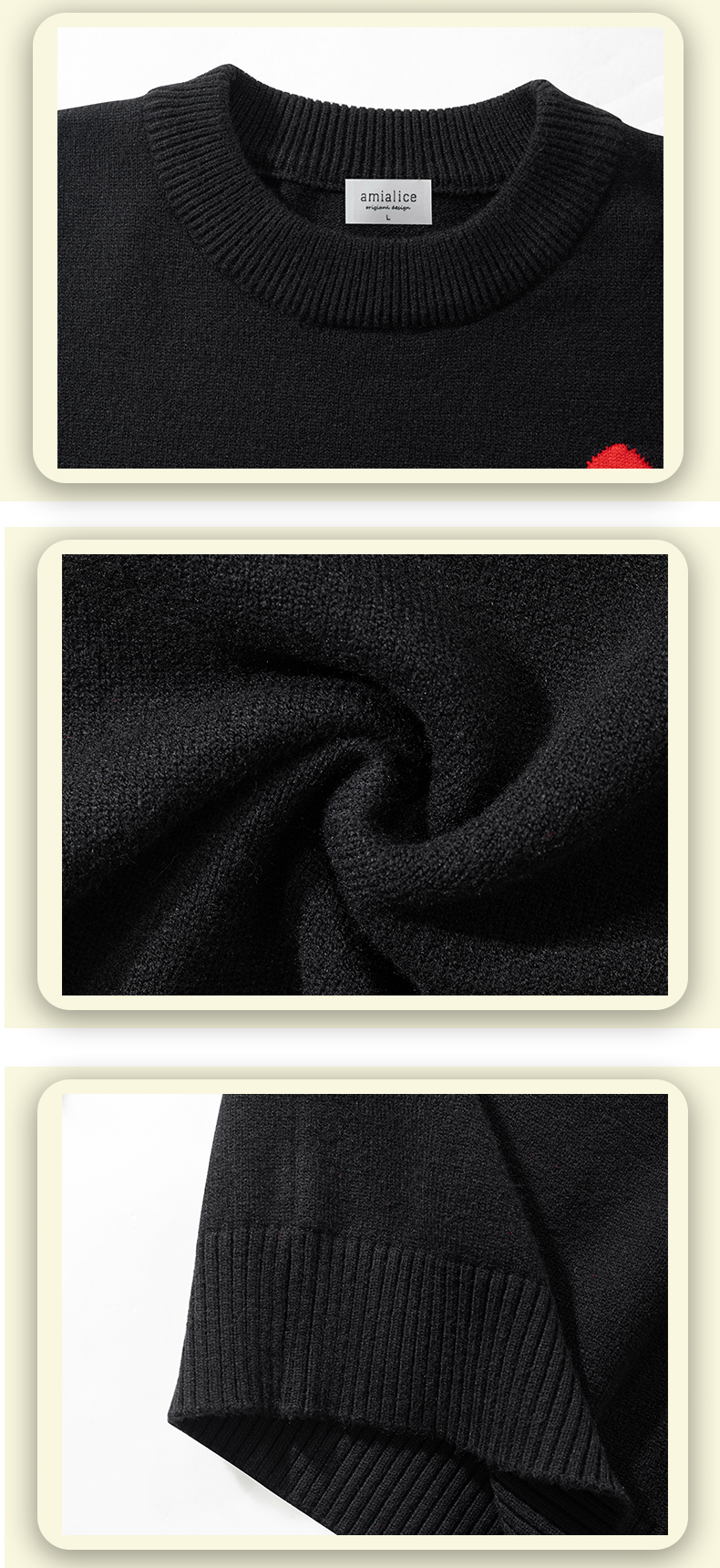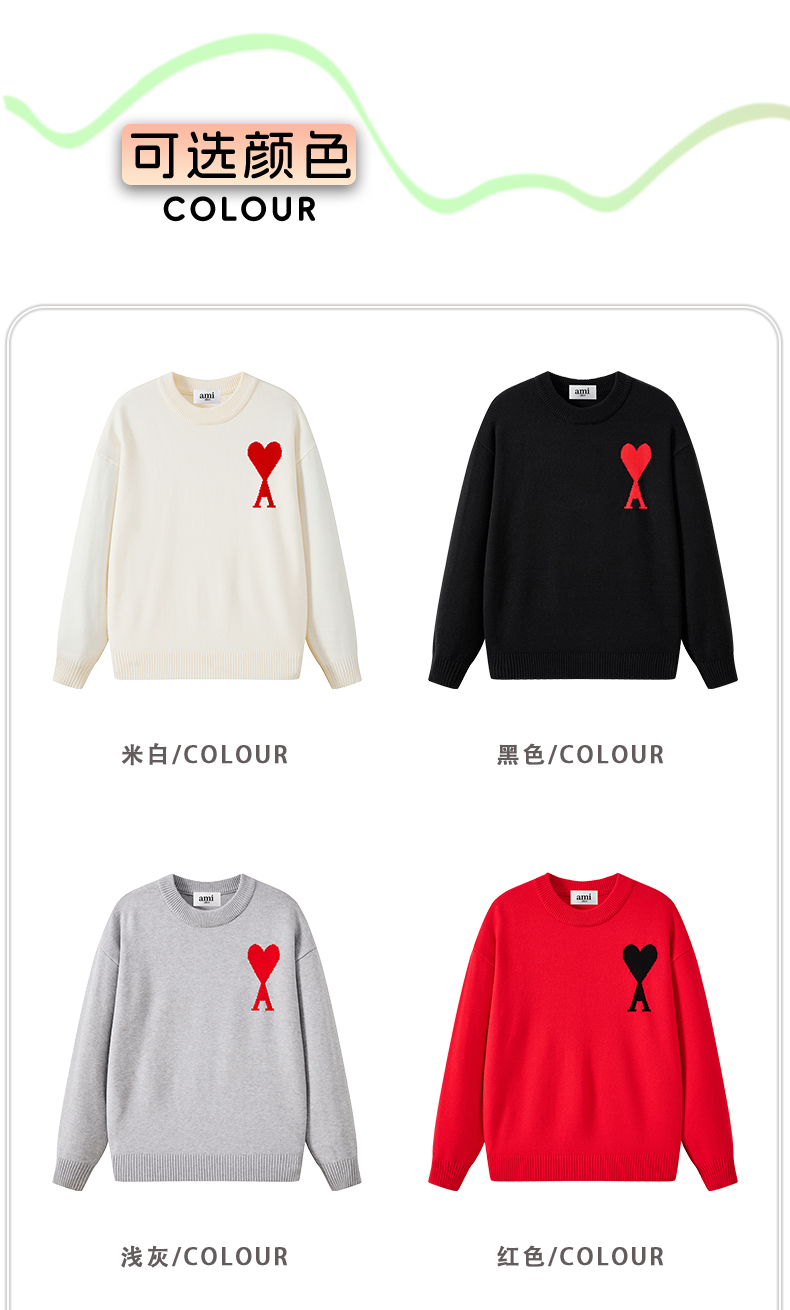 Ami Aiedr Official Sweater Knitwear Unisex Spring and Autumn New Heart-Shaped Crew Neck Pullover Loose Jacket