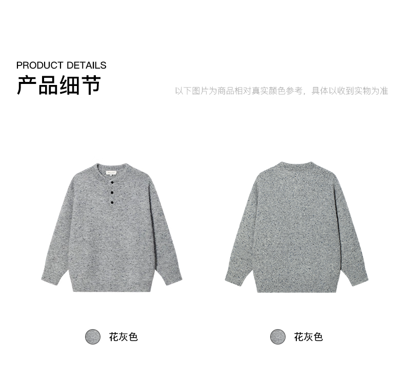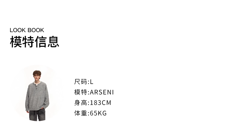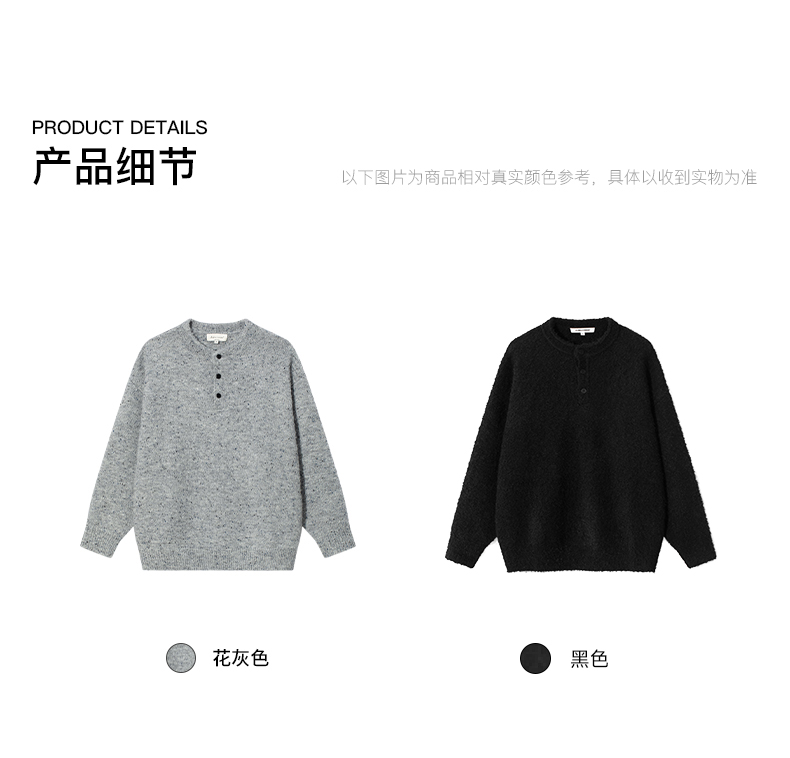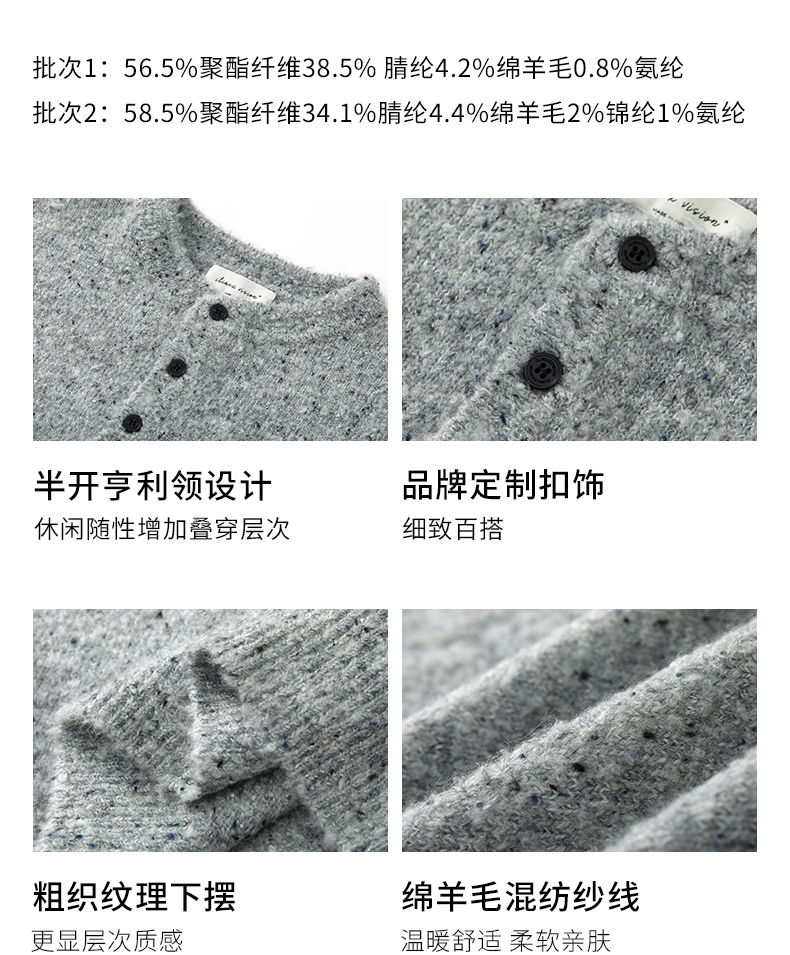 Climax Vision Loop Yarn Relaxed Fit Henry Collar Pullover Sweater Jacket with Wool Blend Knitwear