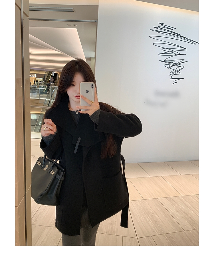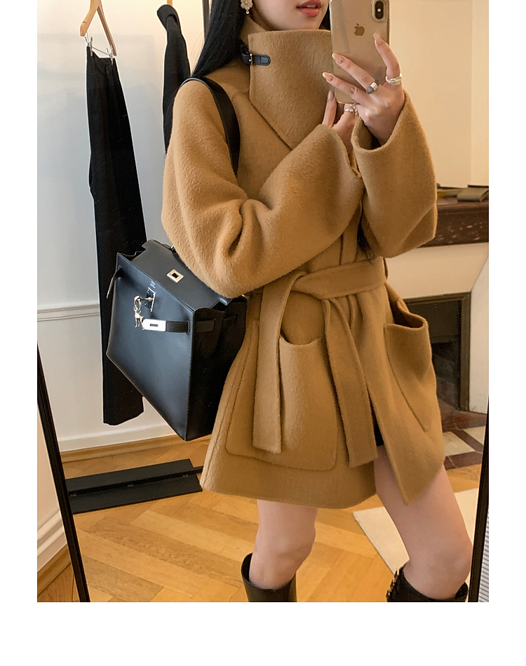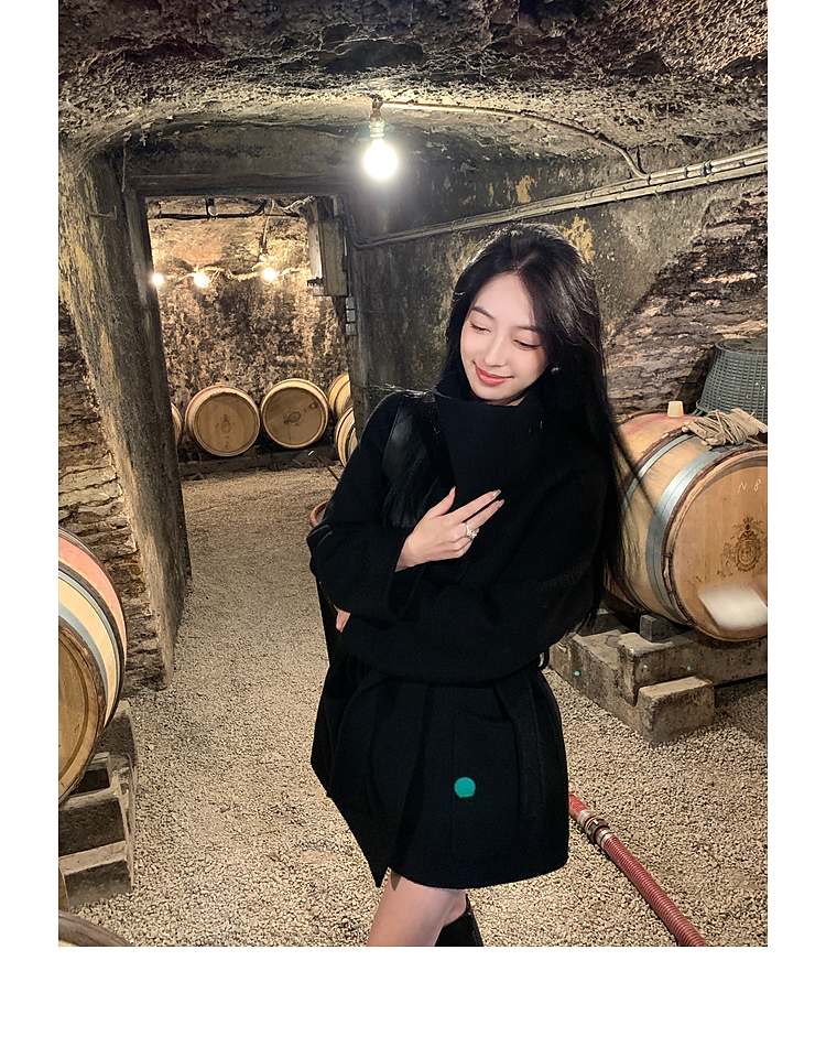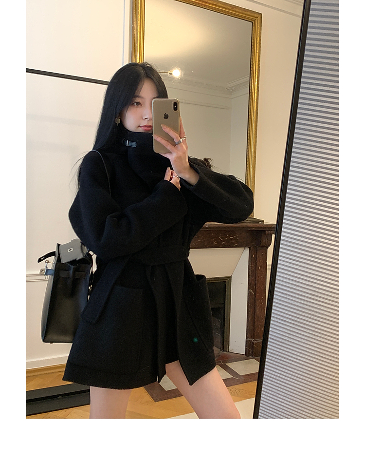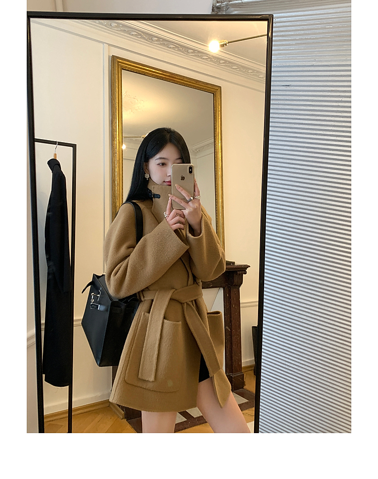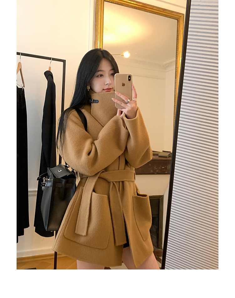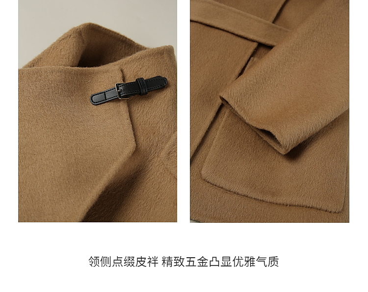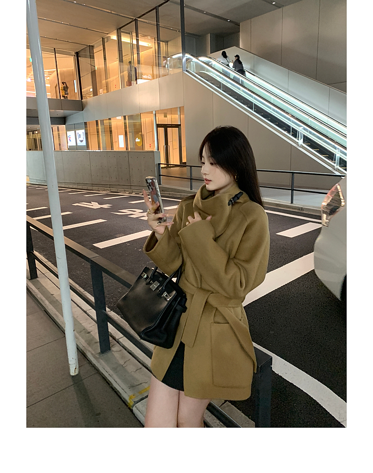 Xia Shiwen Sheep Wool Double-Sided Woolen Cape Outwear Women's Winter Lace-Up Waist Mid-Length Outwear about Poem