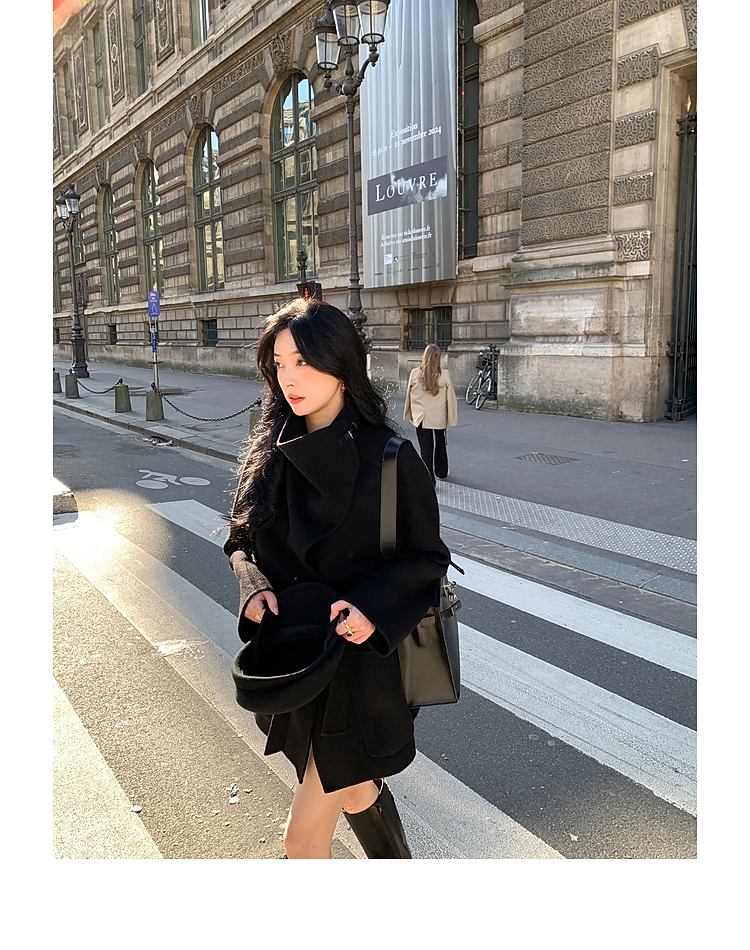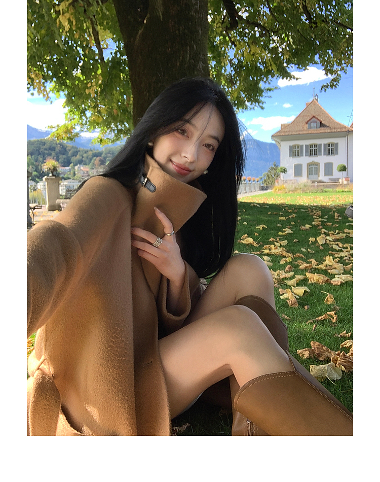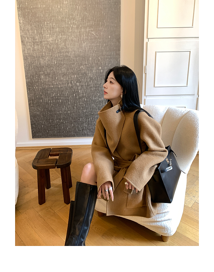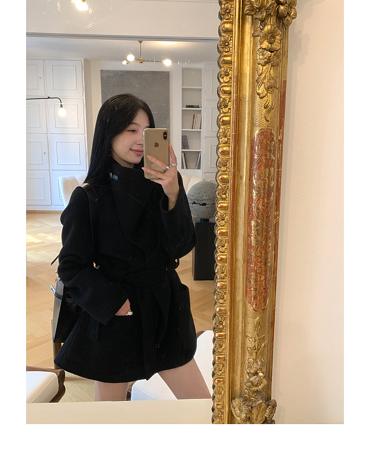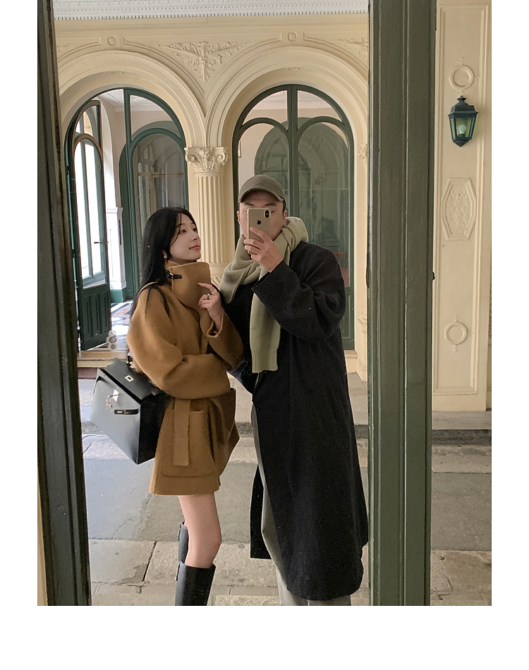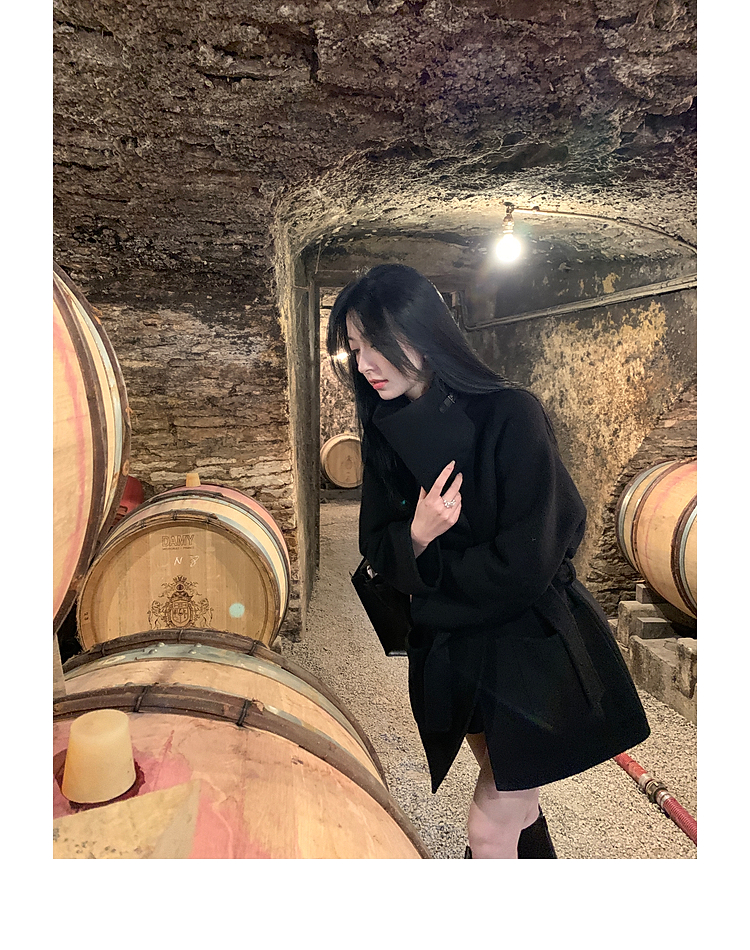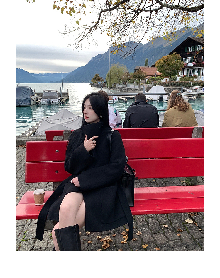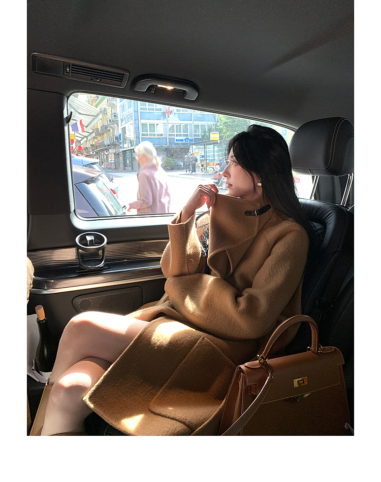 Xia Shiwen Sheep Wool Double-Sided Woolen Cape Outwear Women's Winter Lace-Up Waist Mid-Length Outwear about Poem