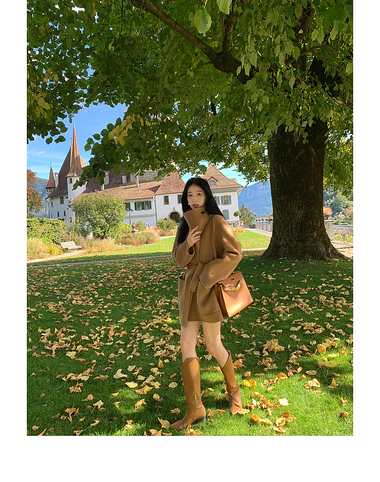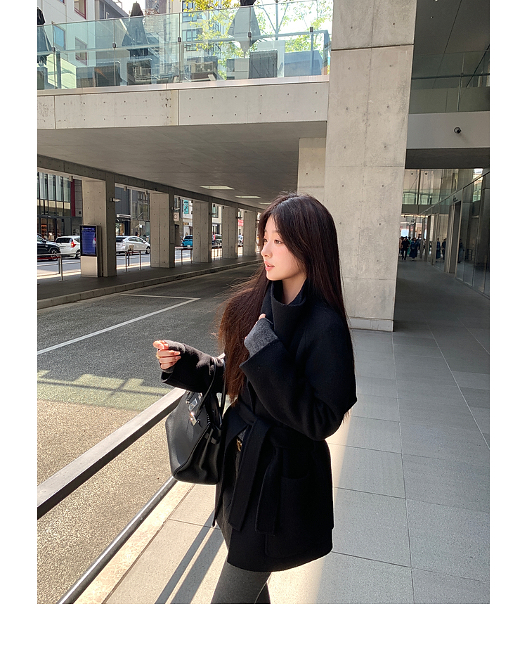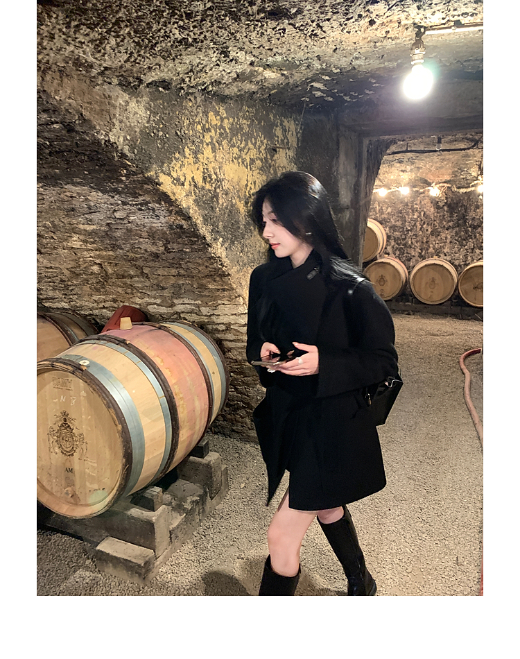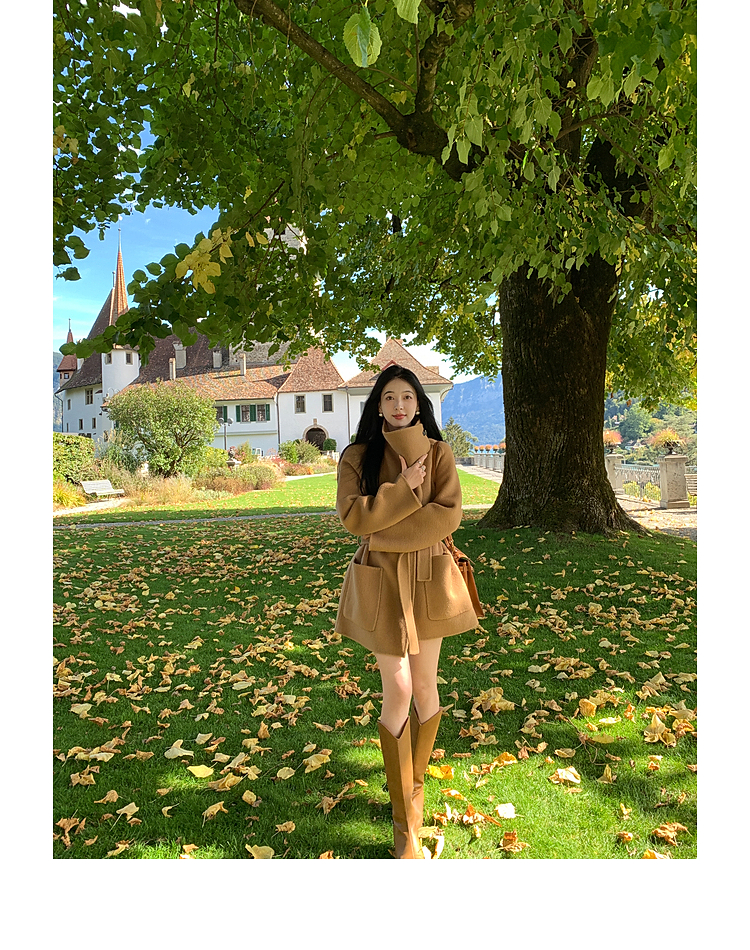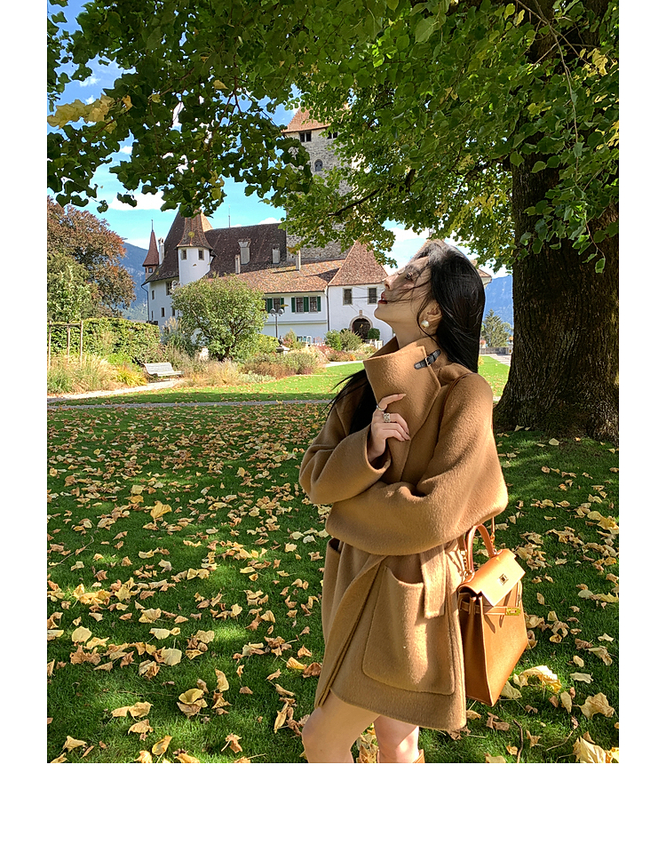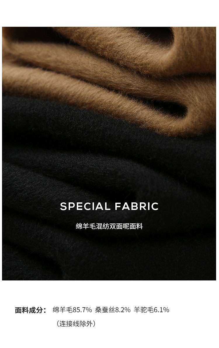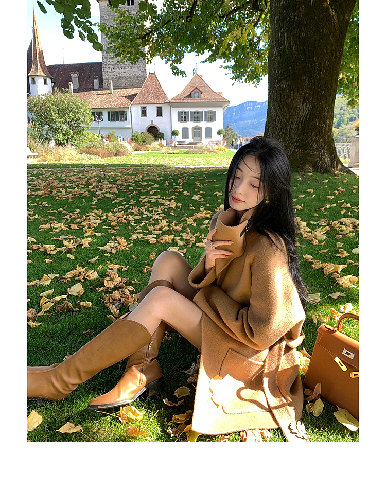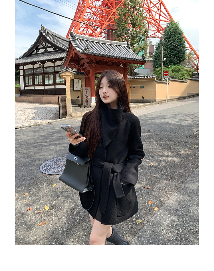 Xia Shiwen Sheep Wool Double-Sided Woolen Cape Outwear Women's Winter Lace-Up Waist Mid-Length Outwear about Poem