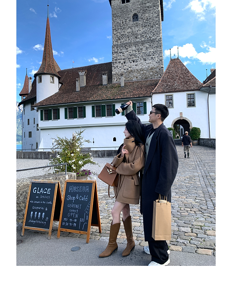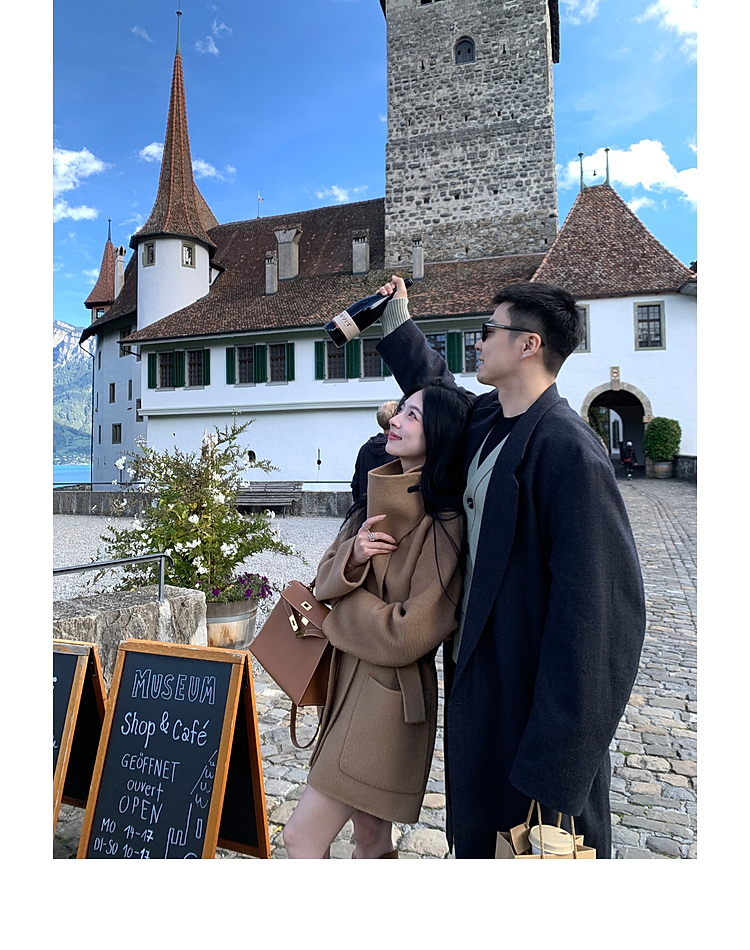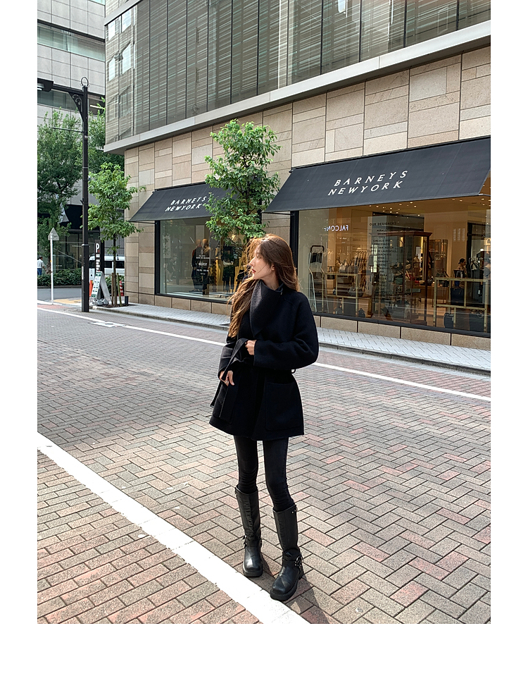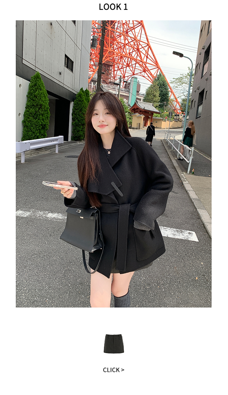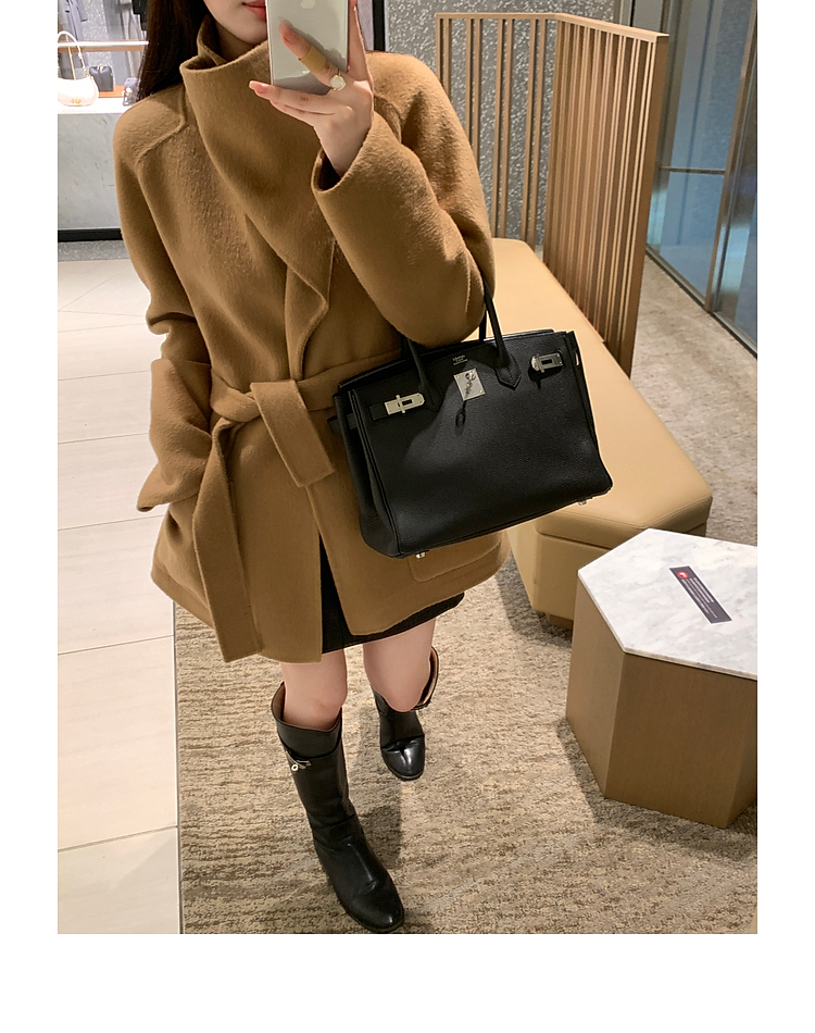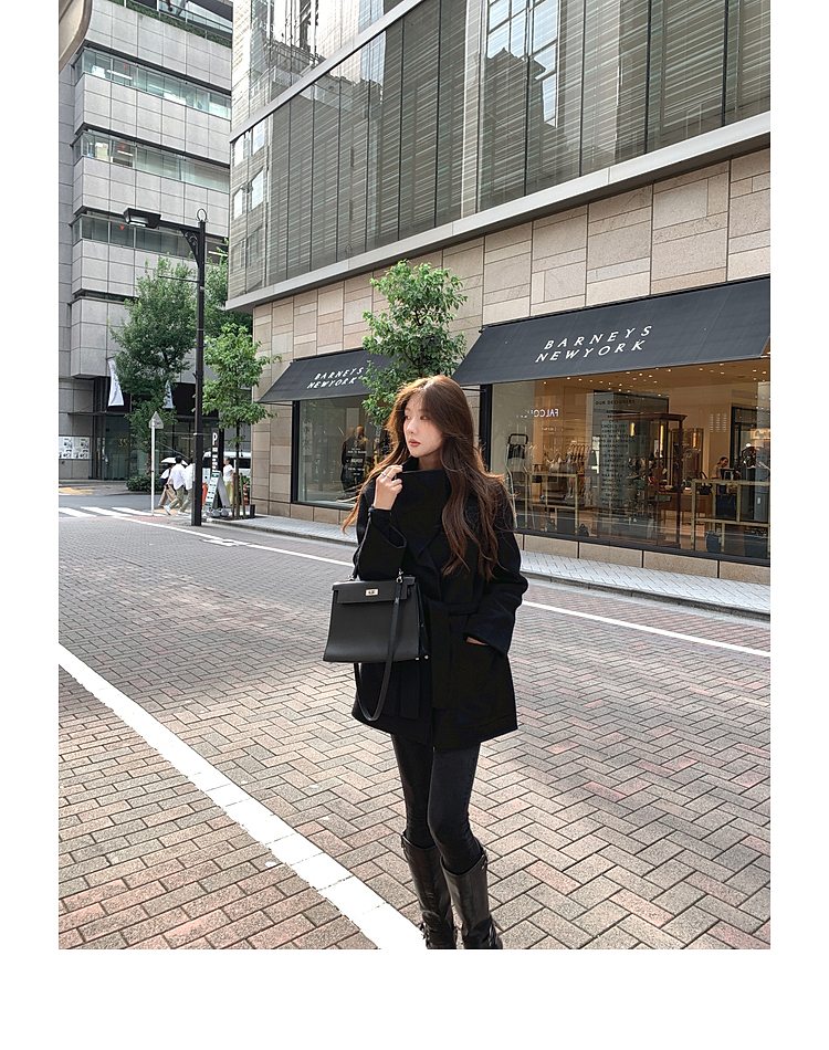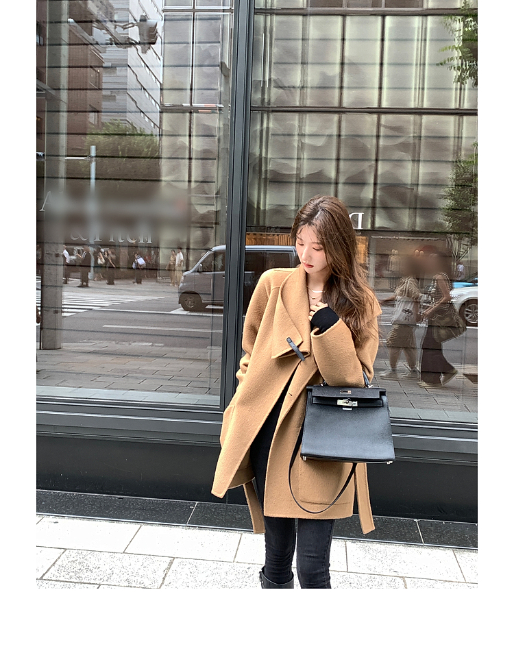 Xia Shiwen Sheep Wool Double-Sided Woolen Cape Outwear Women's Winter Lace-Up Waist Mid-Length Outwear about Poem
