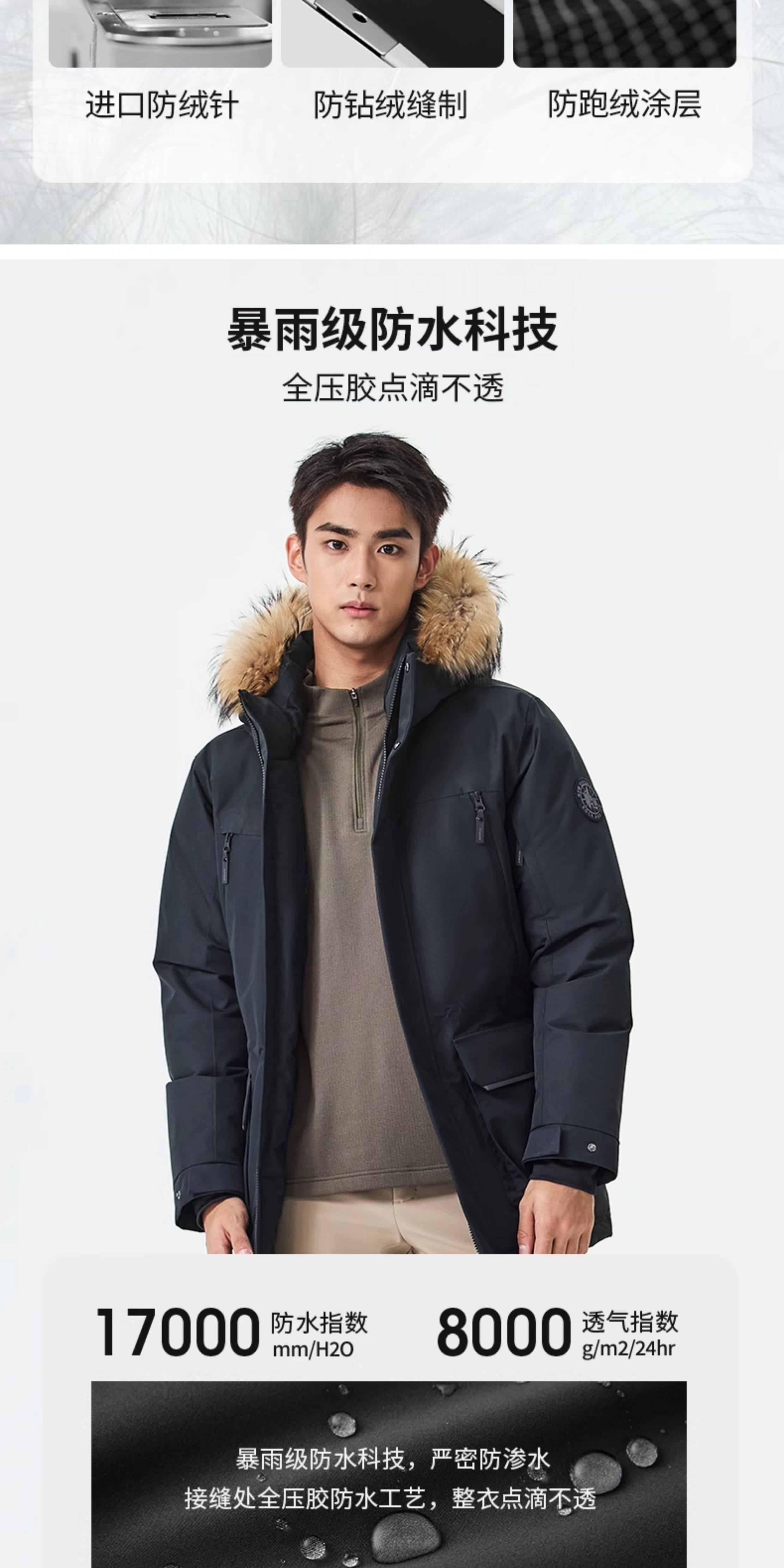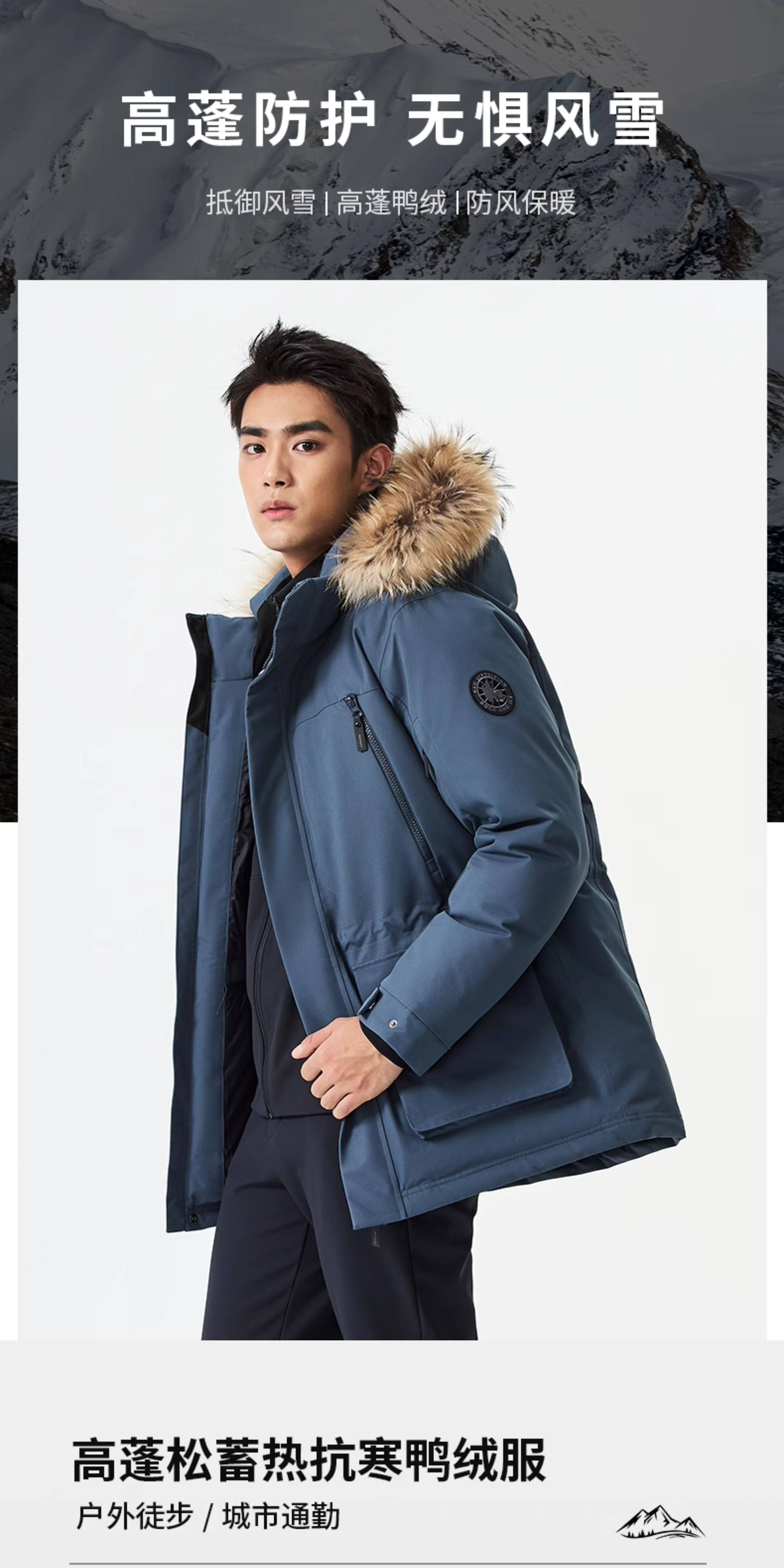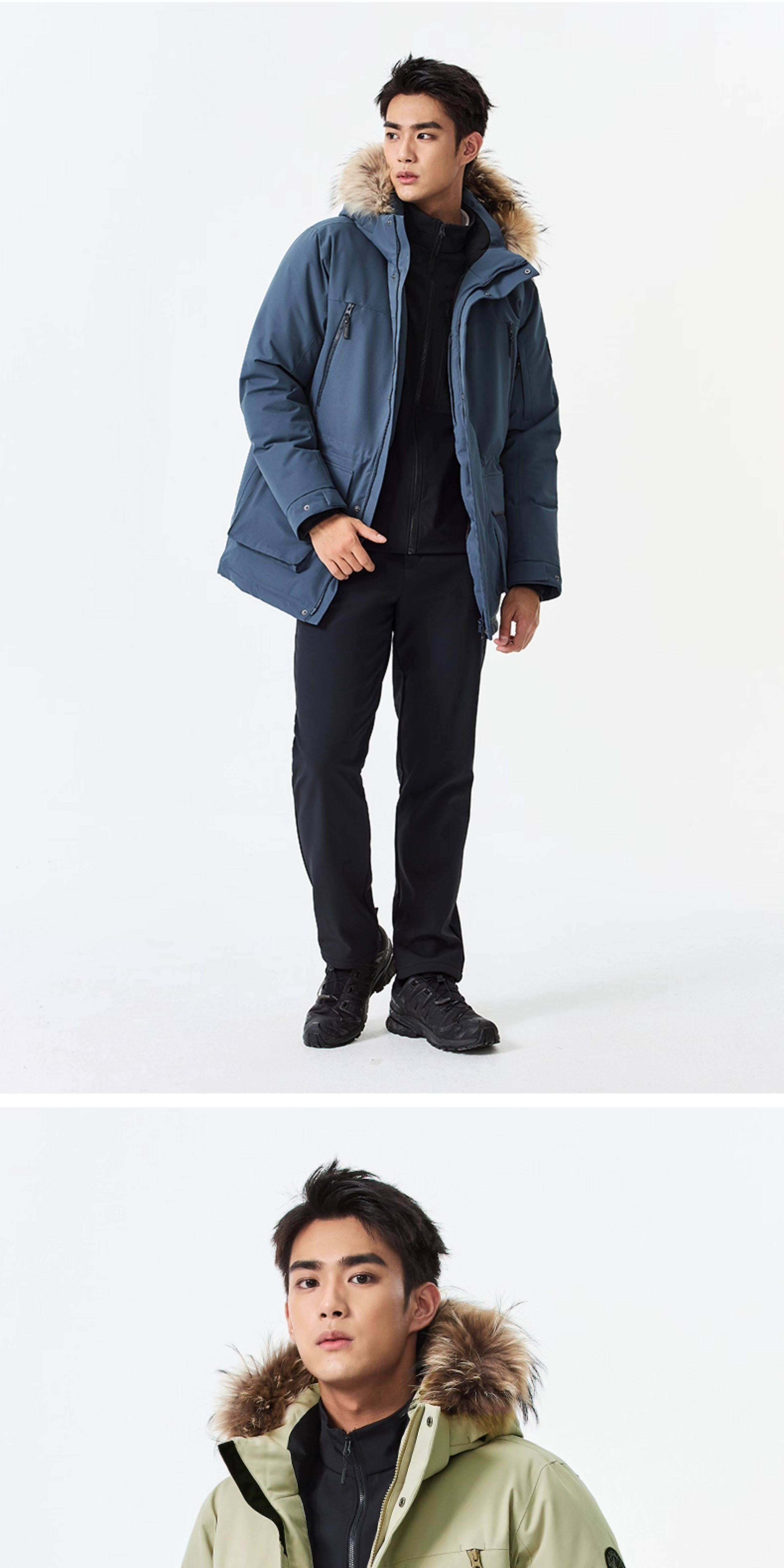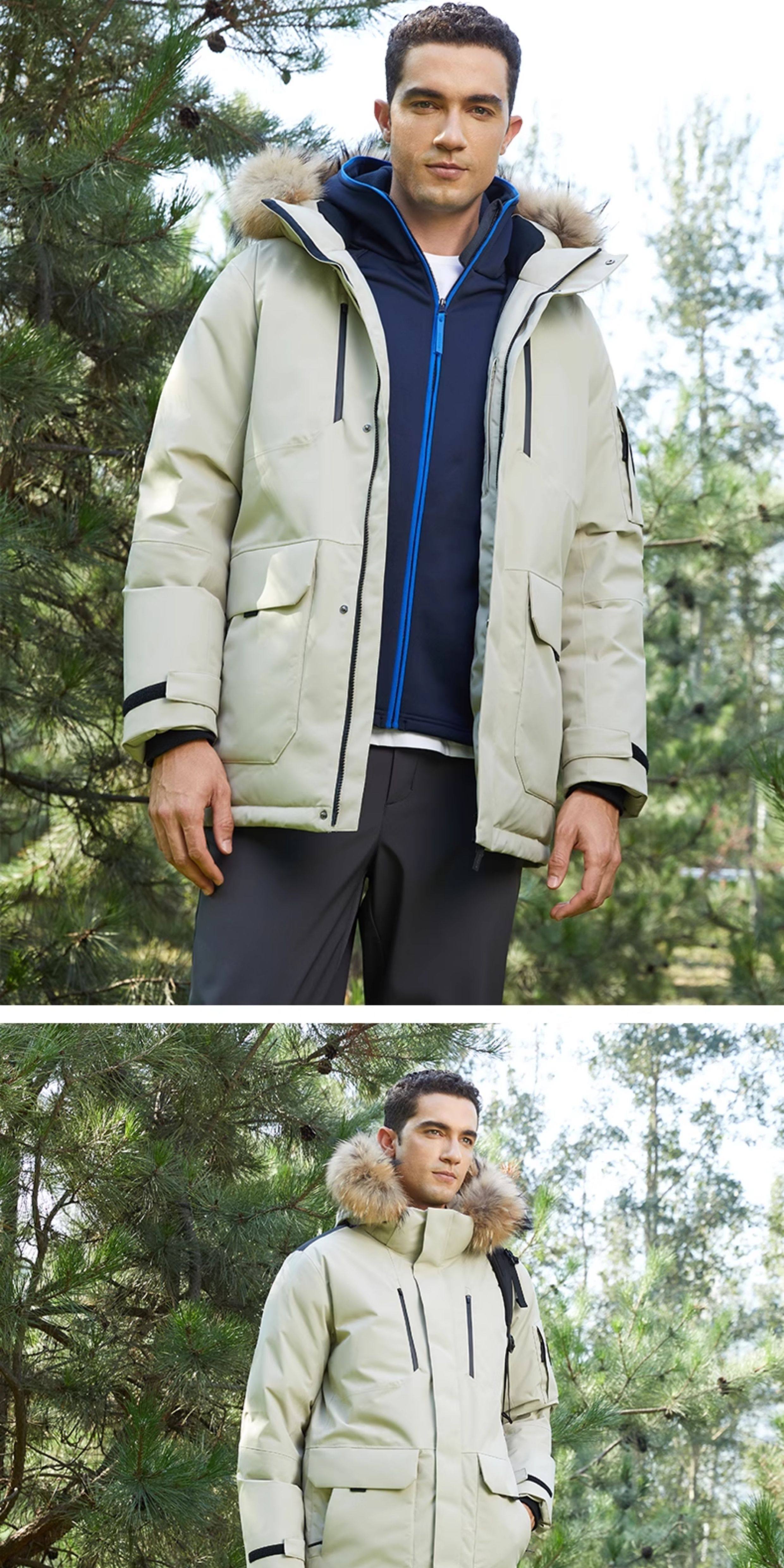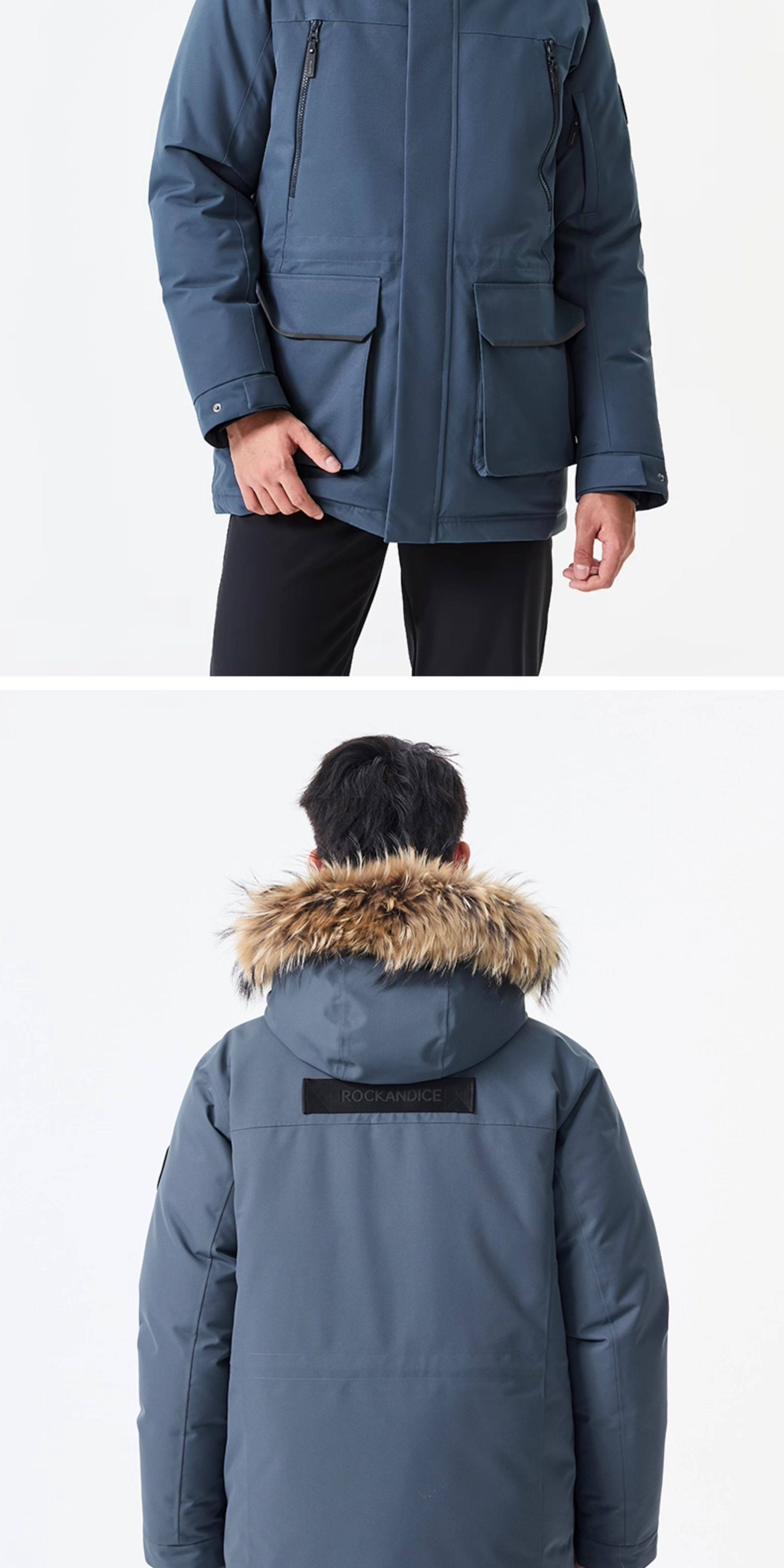 Rockice Men's down Jacket Winter New Style Fur Collar Coat Thickened Warm Outdoor Windproof Waterproof Parka