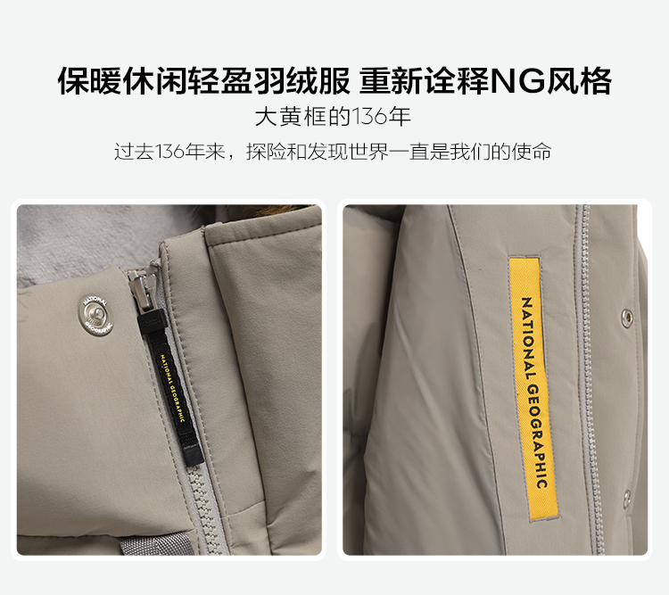 Ng National Geographic Official Flagship Store Unisex Warm Mid-Length Goose down Jacket