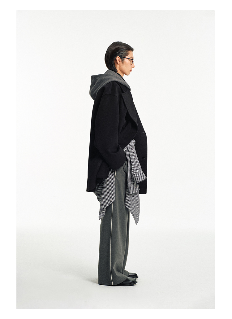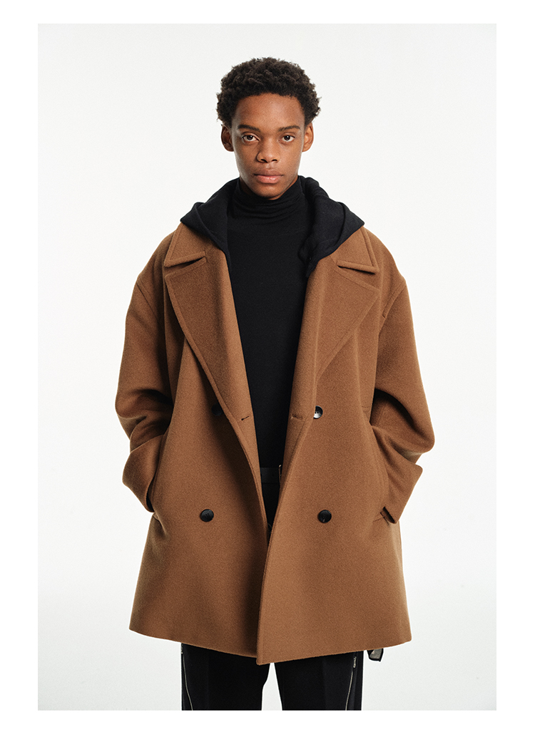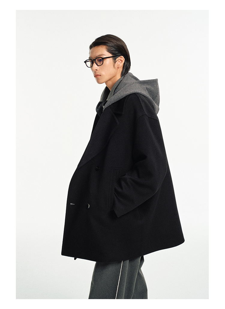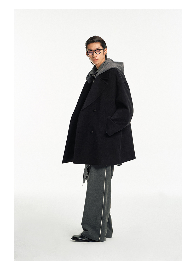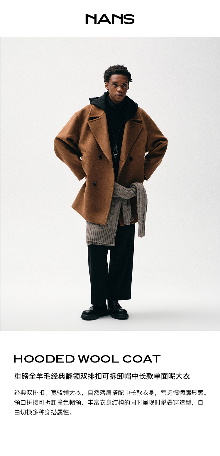 Nans Heavy-Duty All-Wool Classic Lapel Double-Breasted Detachable Hood Mid-Length Single-Sided Woolen Coat Ns8I02