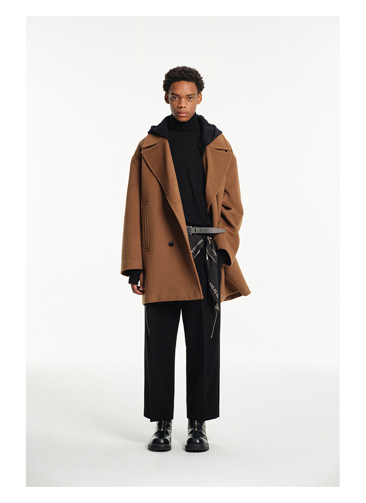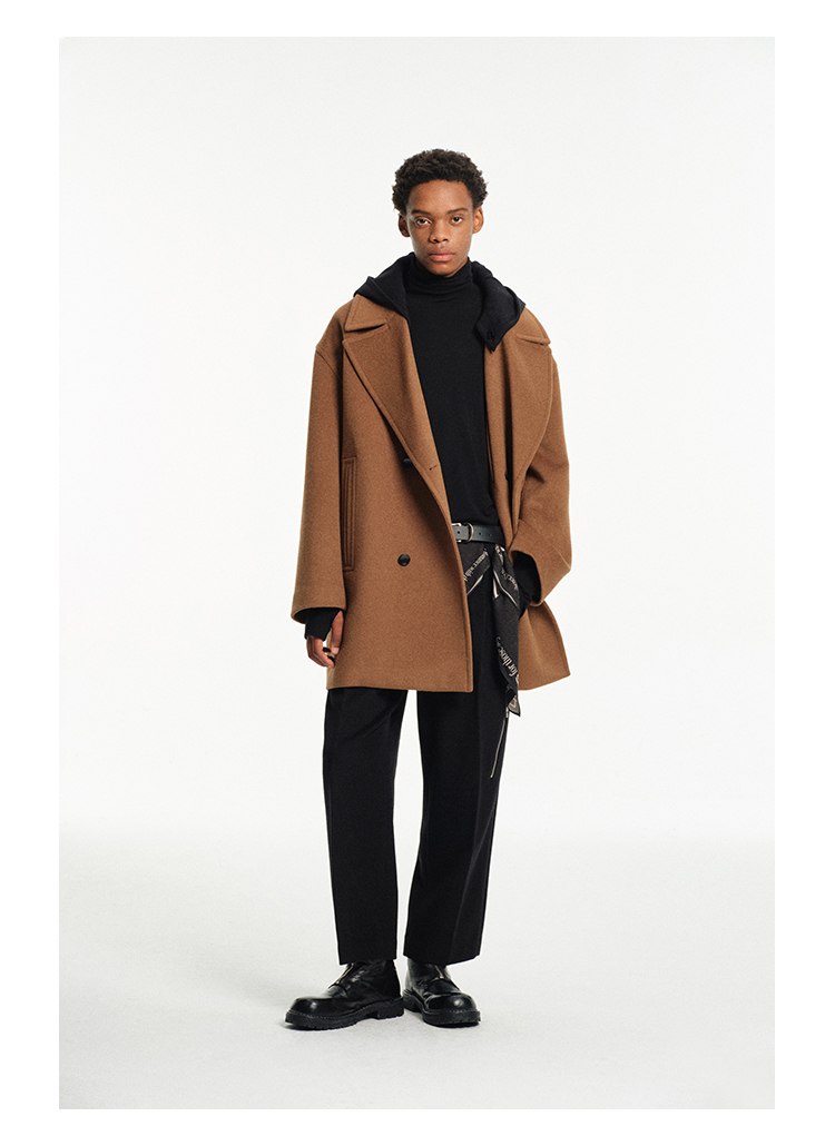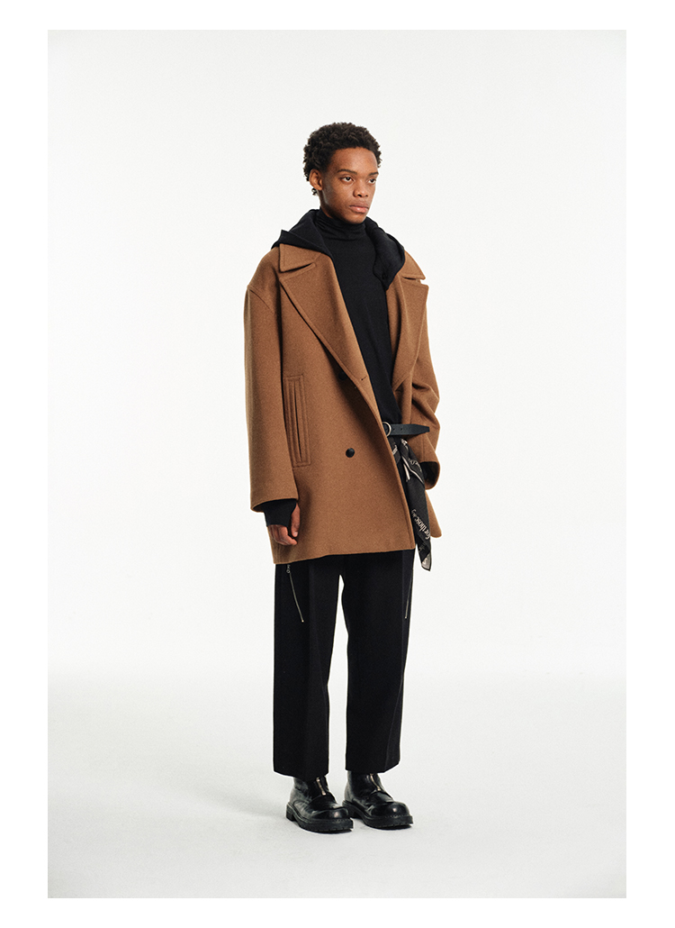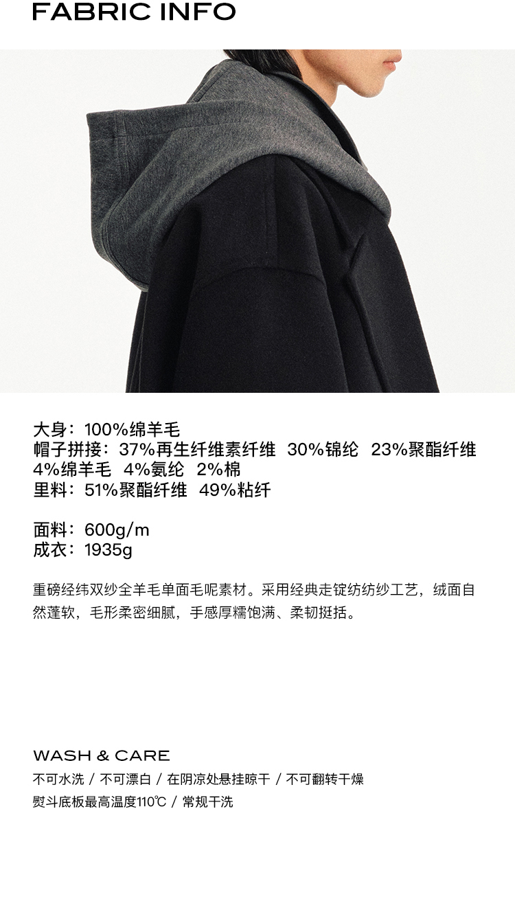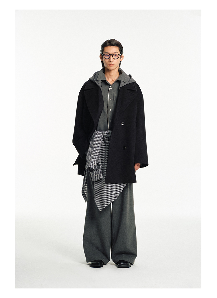Nans Heavy-Duty All-Wool Classic Lapel Double-Breasted Detachable Hood Mid-Length Single-Sided Woolen Coat Ns8I02