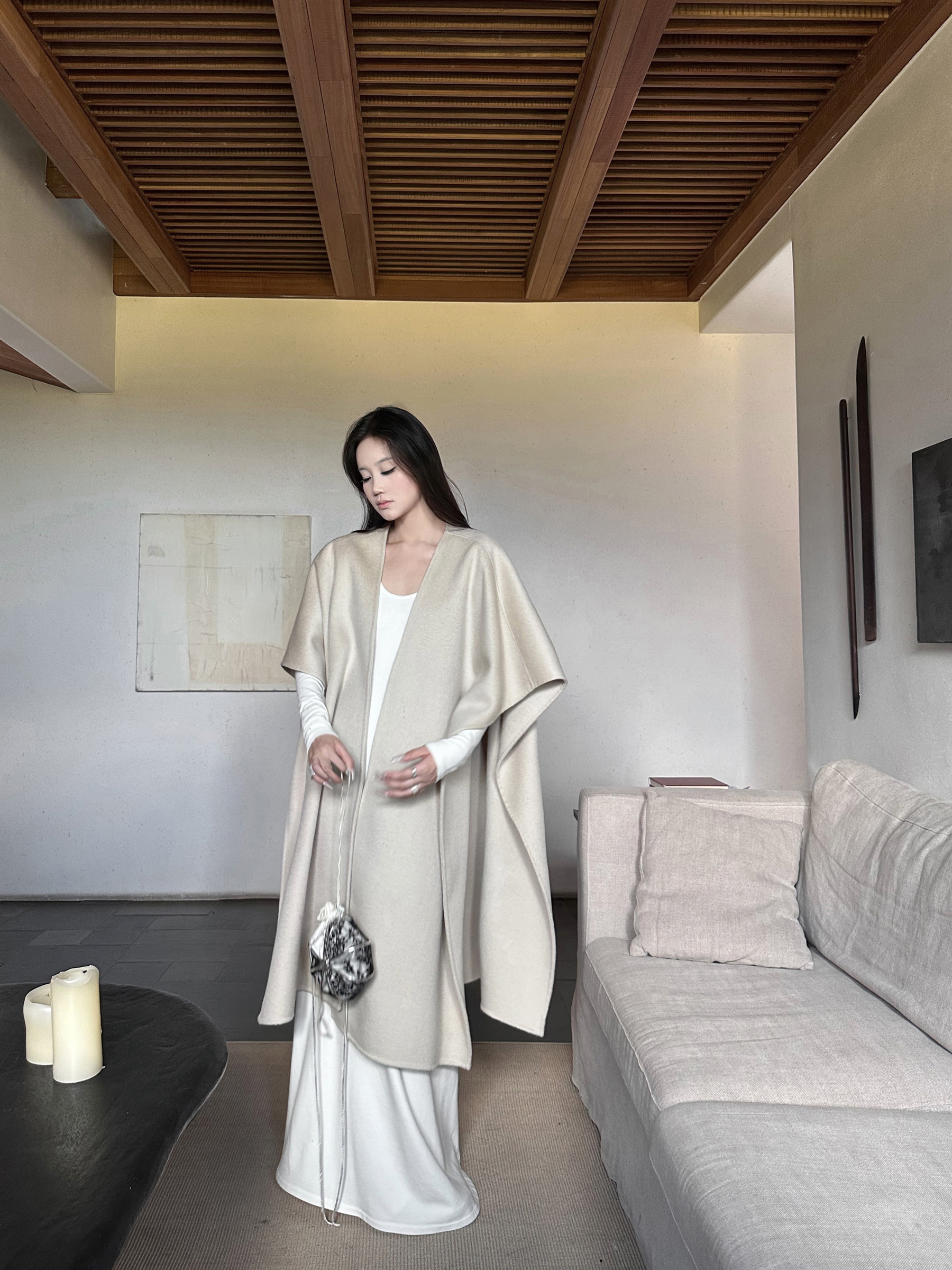 5Werkwen La C*Lletion Minimalist Cape Wool Cape Autumn and Winter Large Size Mid-Length Double-Sided Woolen Fabric