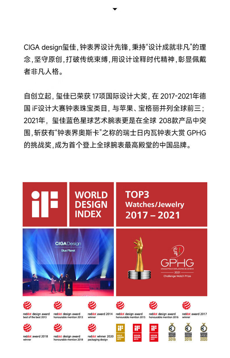 Ciga Design Xijia Mechanical Watch U Series Blue Planet Ii Won the Gphg Men's Earth Watch Award