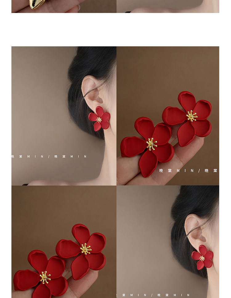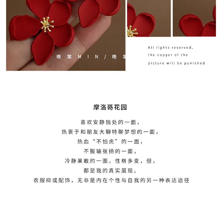 Wan Tang Min Moroccan Garden~Retro Hong Kong Style Red Flower Earrings High-End Accessible Luxury Earrings A400/401
