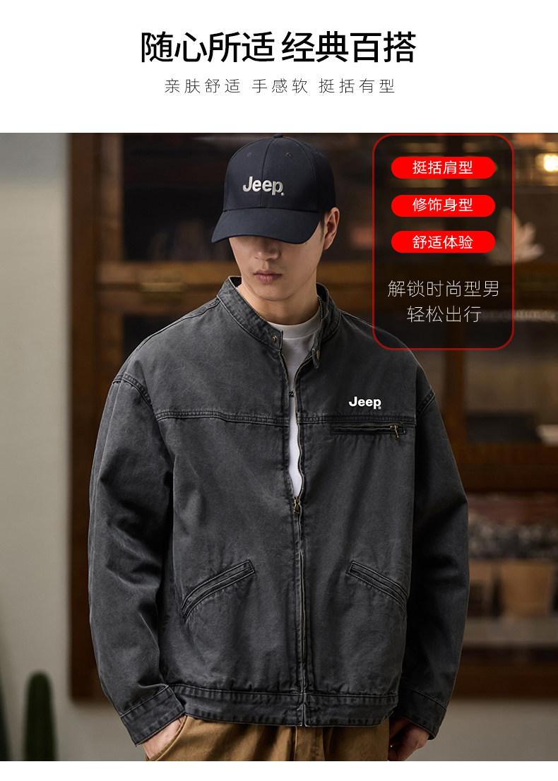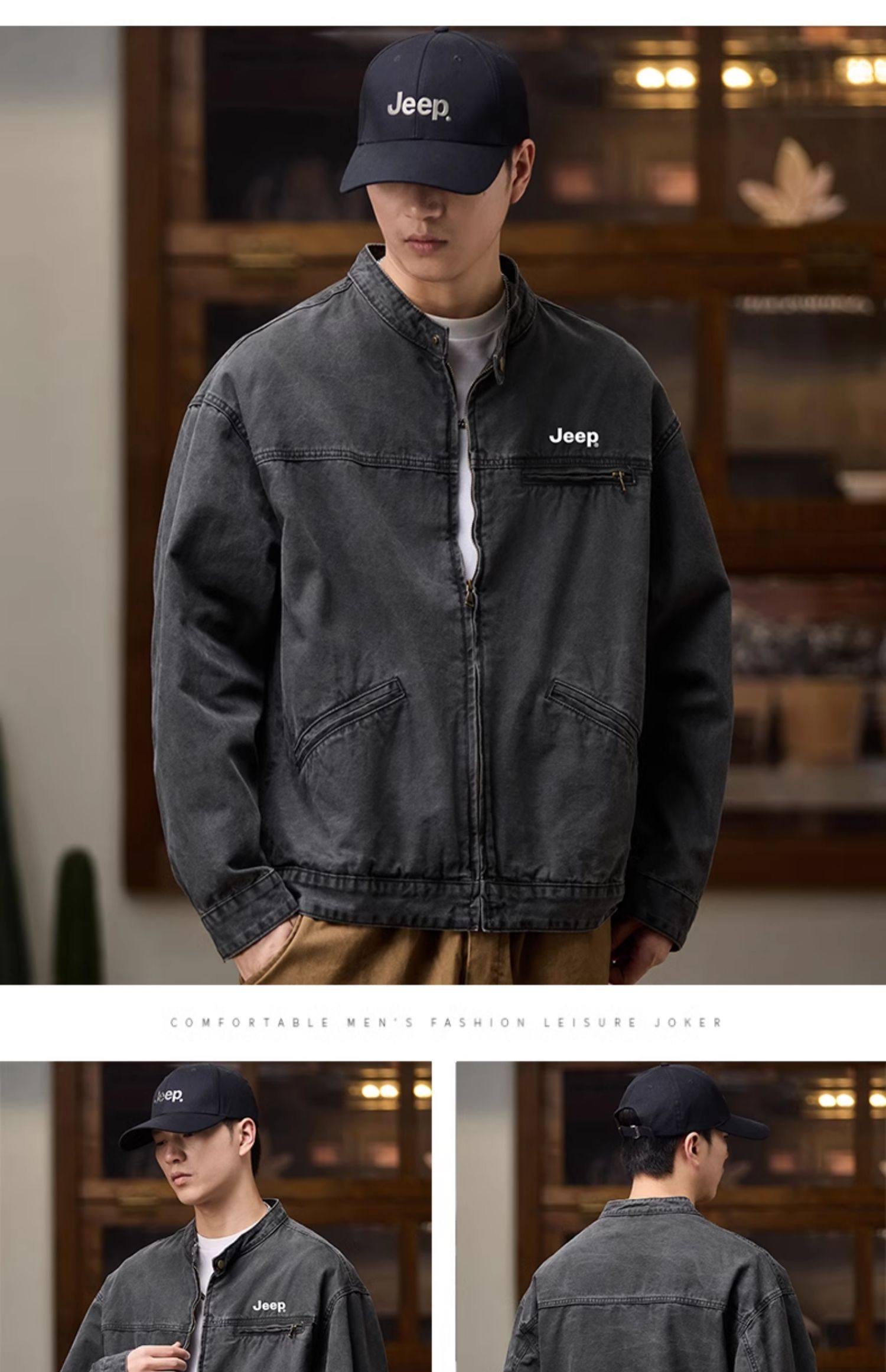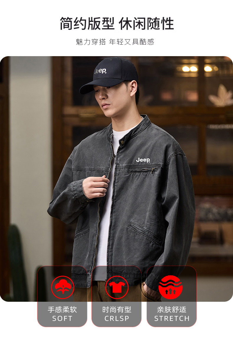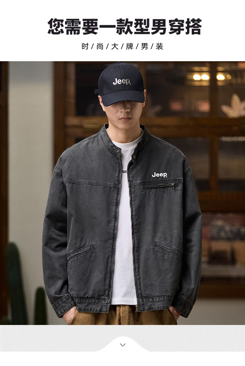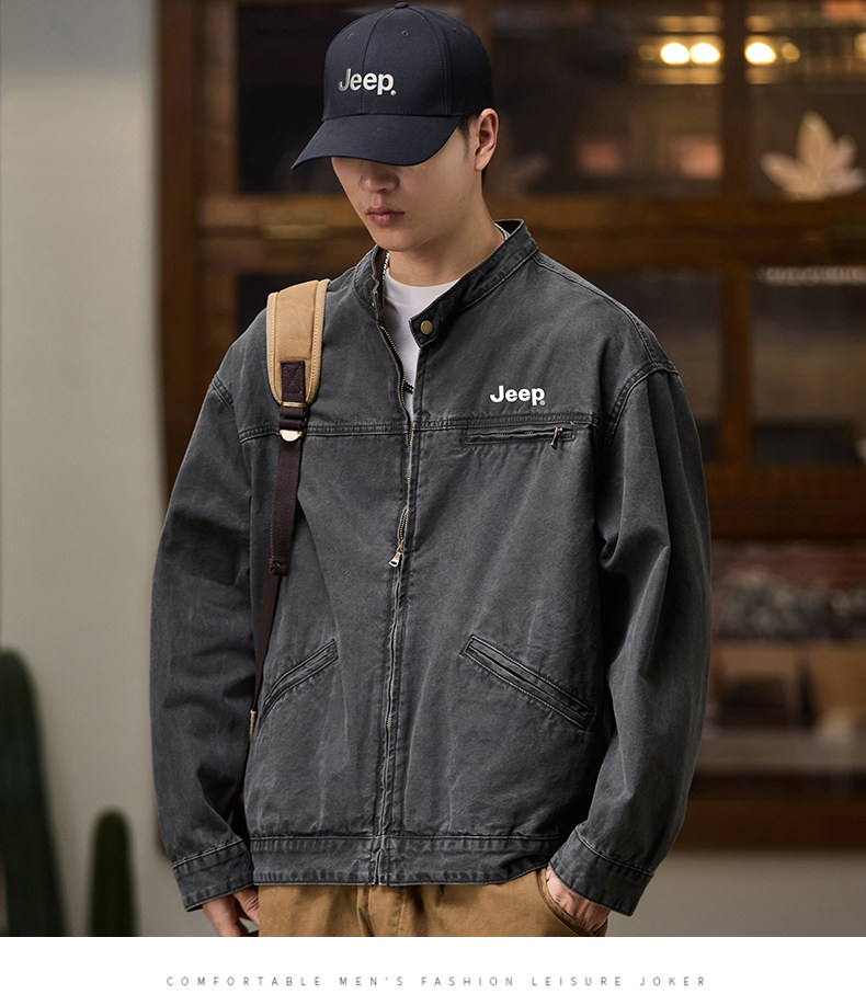 Jeep American-Style Washed Denim Jacket for Men, Spring and Autumn 2025 New Loose Casual Stand-Up Collar Denim Jacket