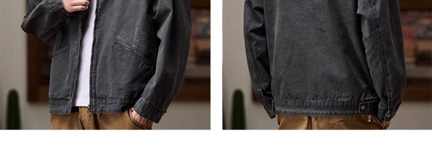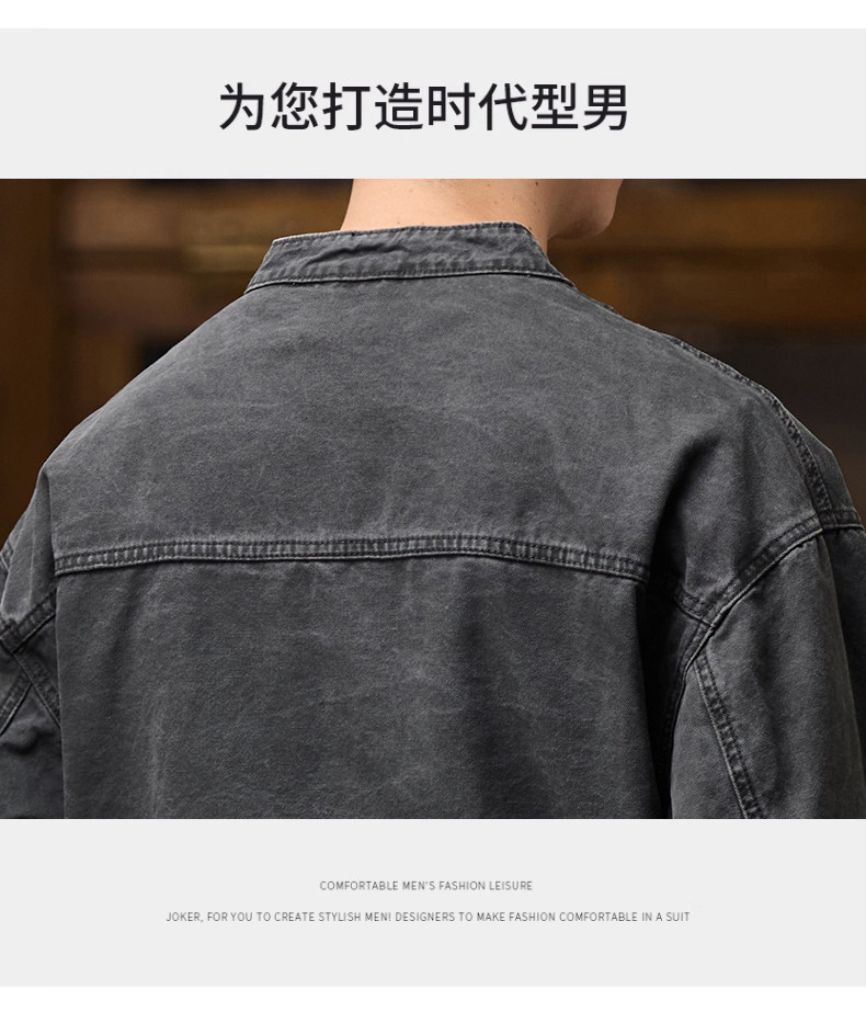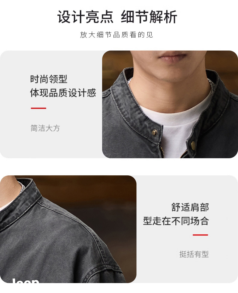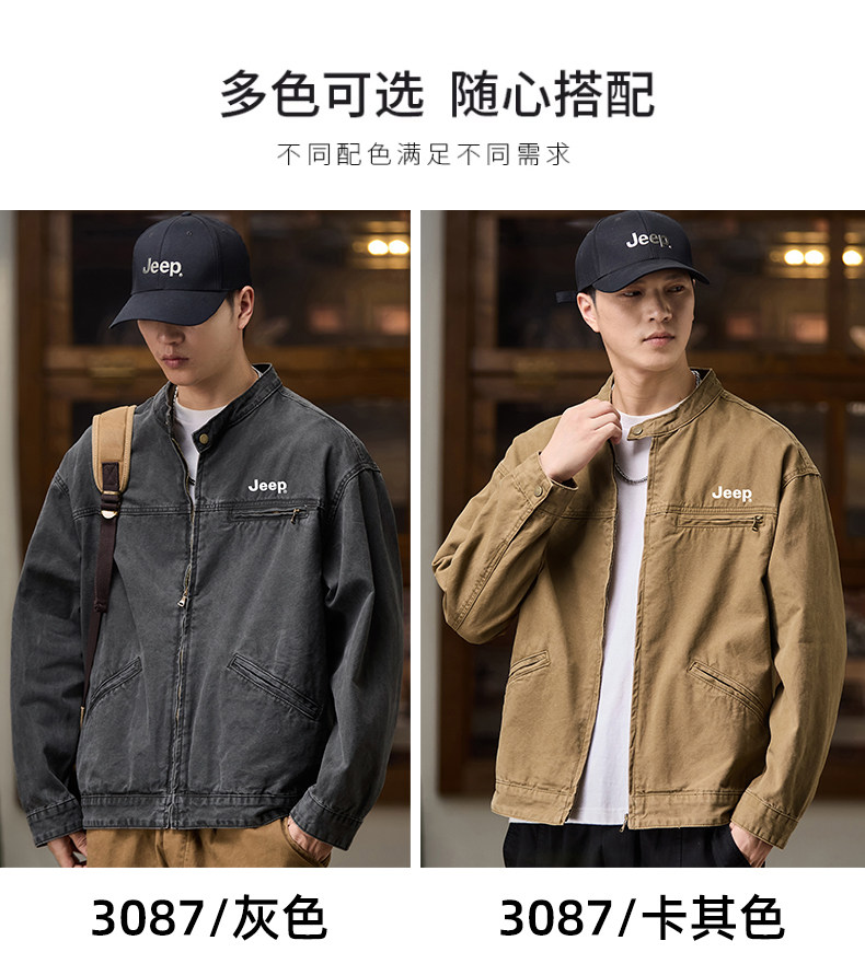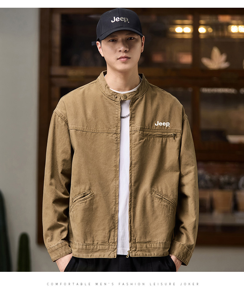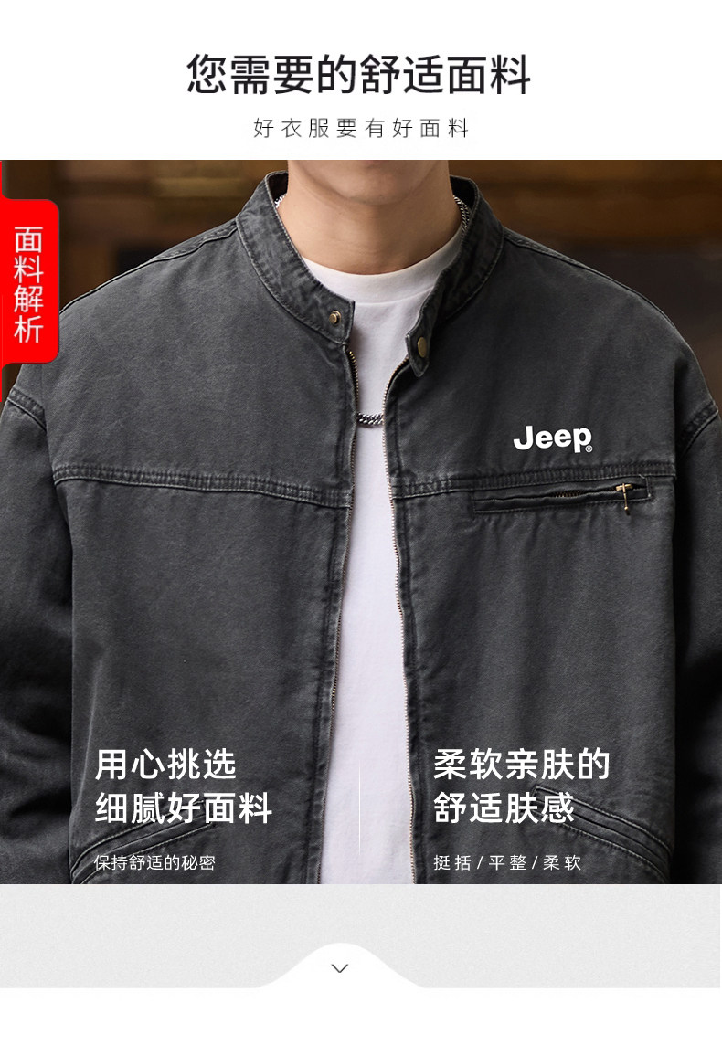Jeep American-Style Washed Denim Jacket for Men, Spring and Autumn 2025 New Loose Casual Stand-Up Collar Denim Jacket