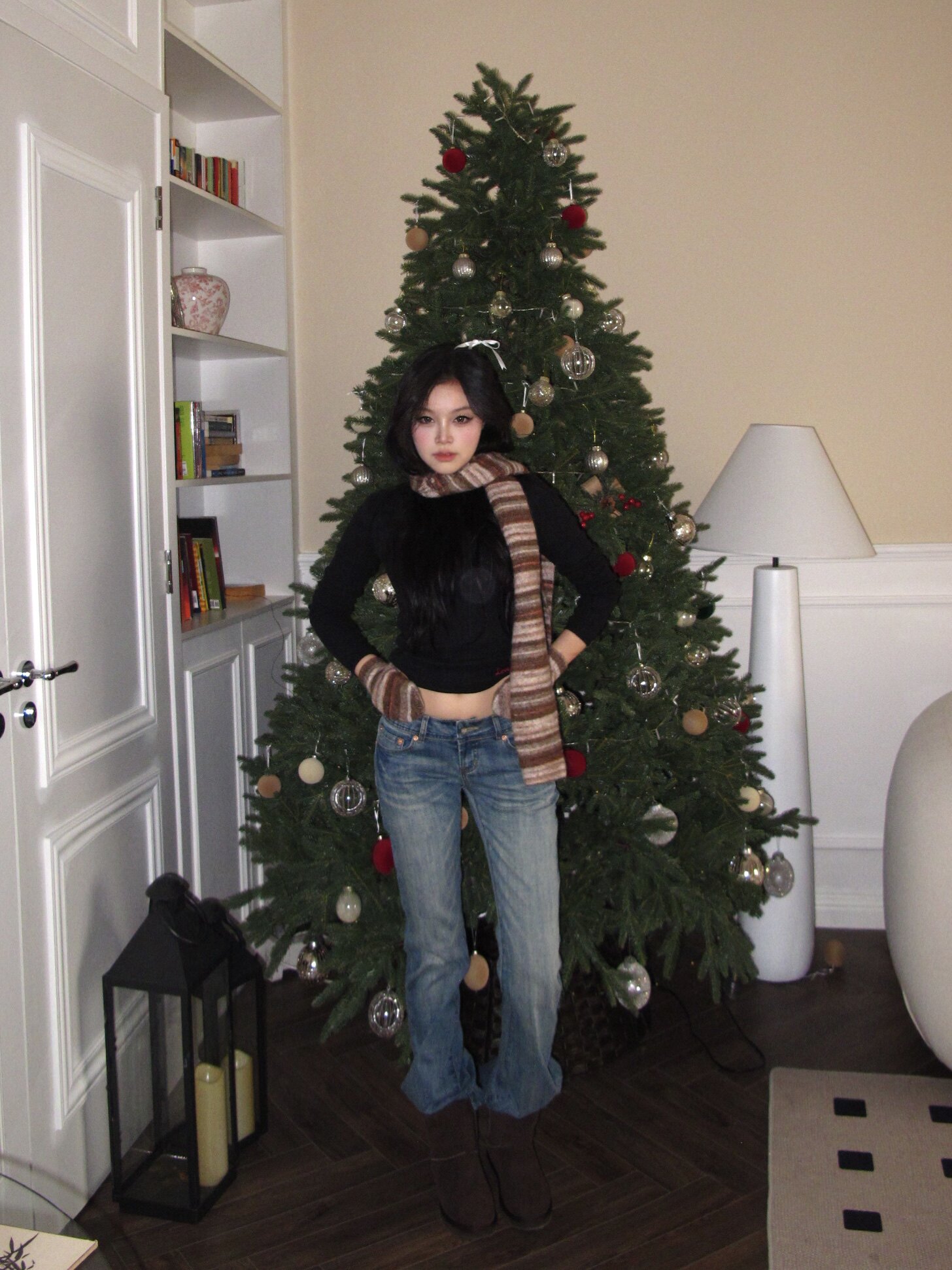 In Stock Popchee|Embroidered Baby Shirt| Two-Color Jacquard Loose Base Shirt, Versatile for Layering