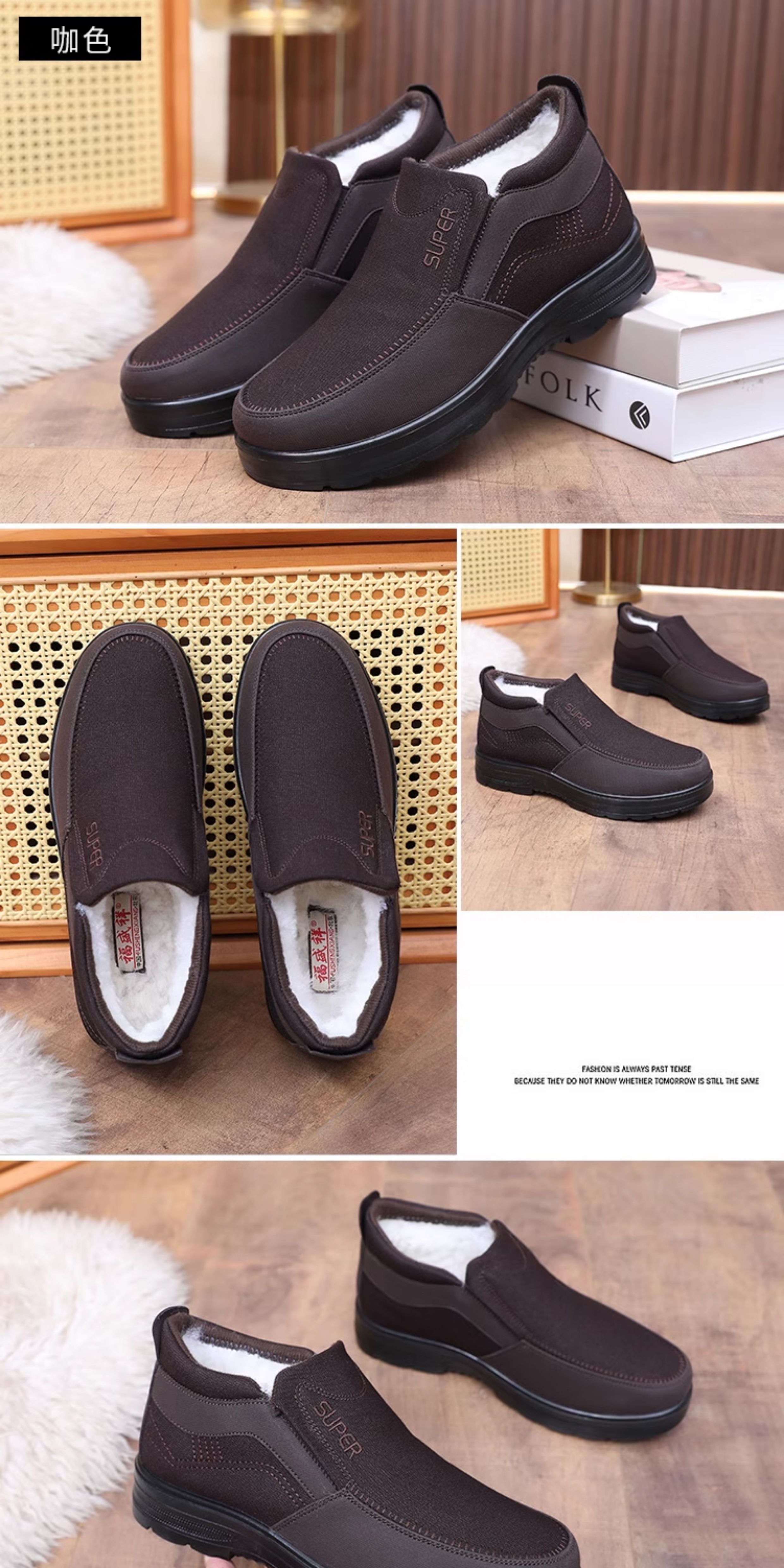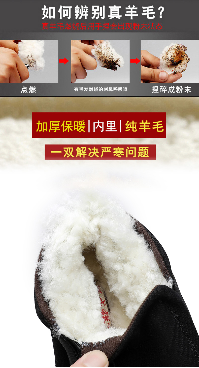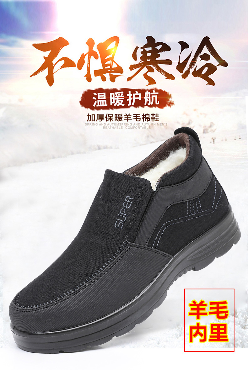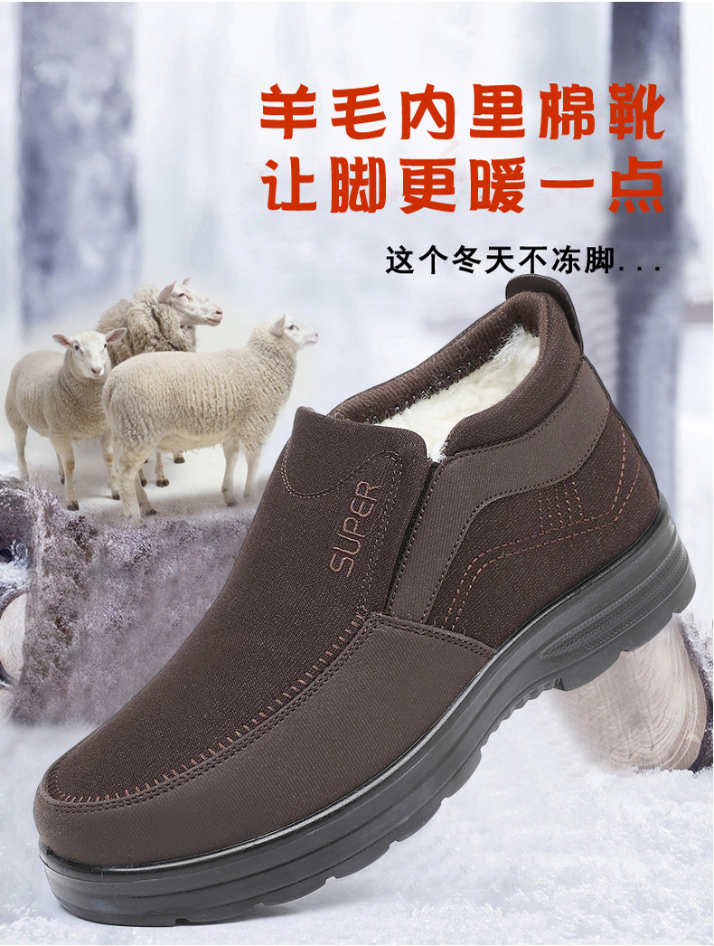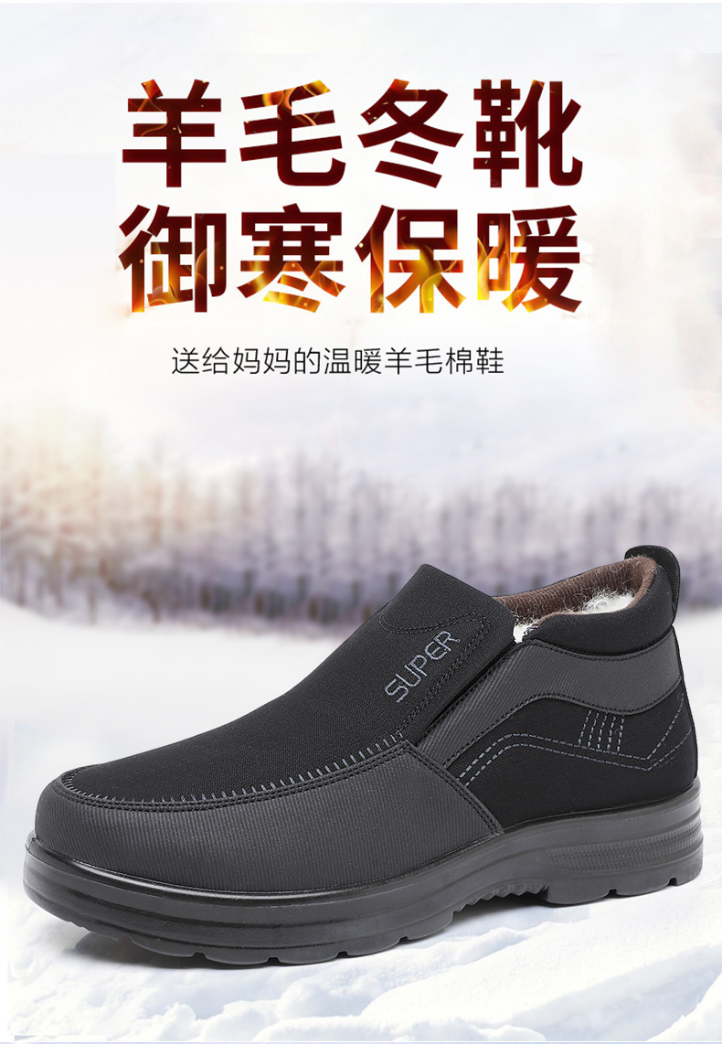 Winter Non-Slip Shoes for the Elderly, Old Beijing Cloth Shoes, Men's Cotton Shoes, Large Size Thickened Warm Pure Wool Dad Boots for Middle-Aged and Elderly People