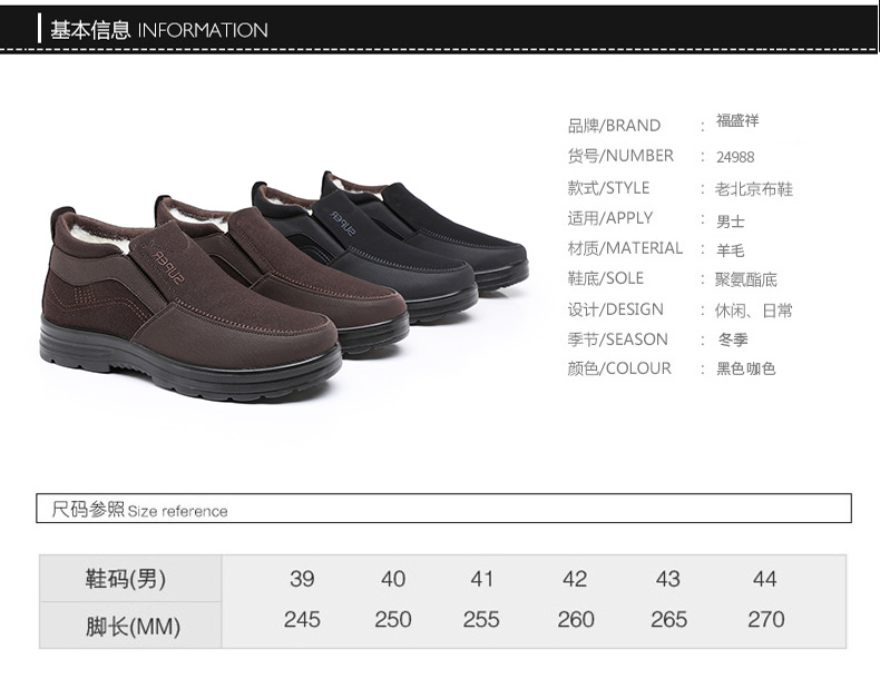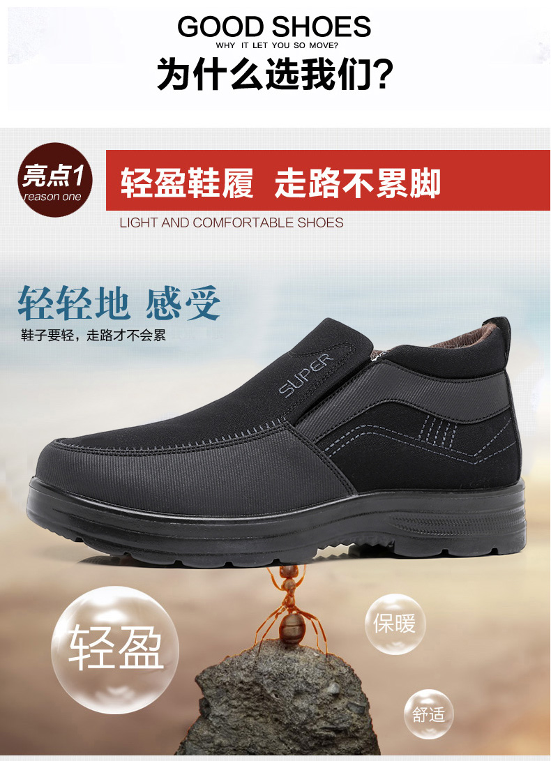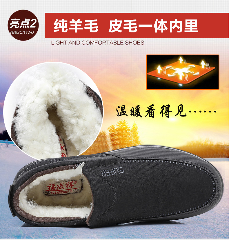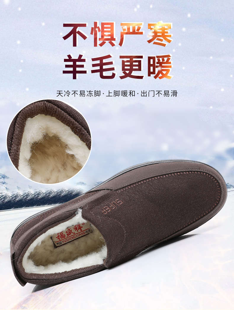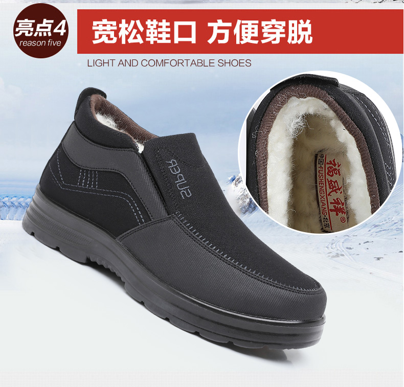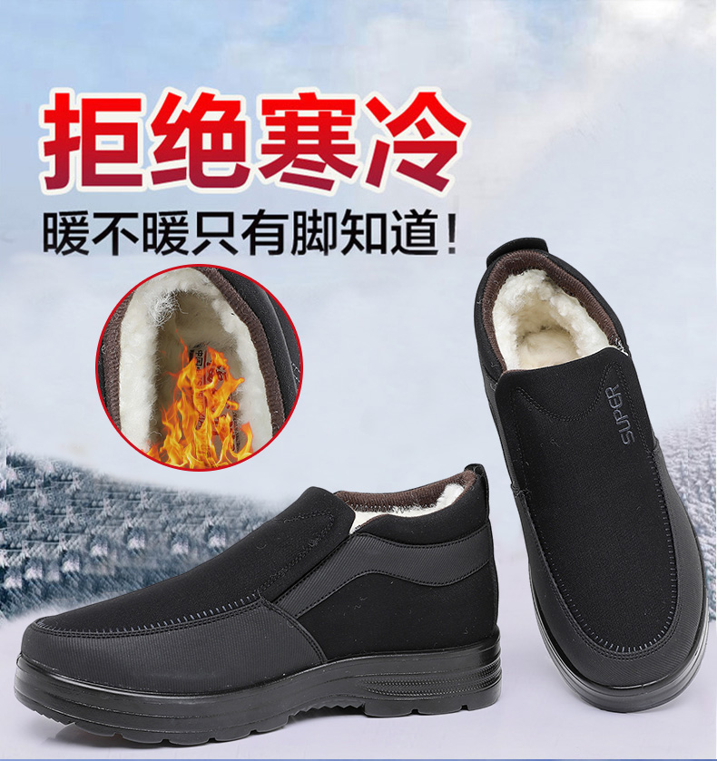 Winter Non-Slip Shoes for the Elderly, Old Beijing Cloth Shoes, Men's Cotton Shoes, Large Size Thickened Warm Pure Wool Dad Boots for Middle-Aged and Elderly People