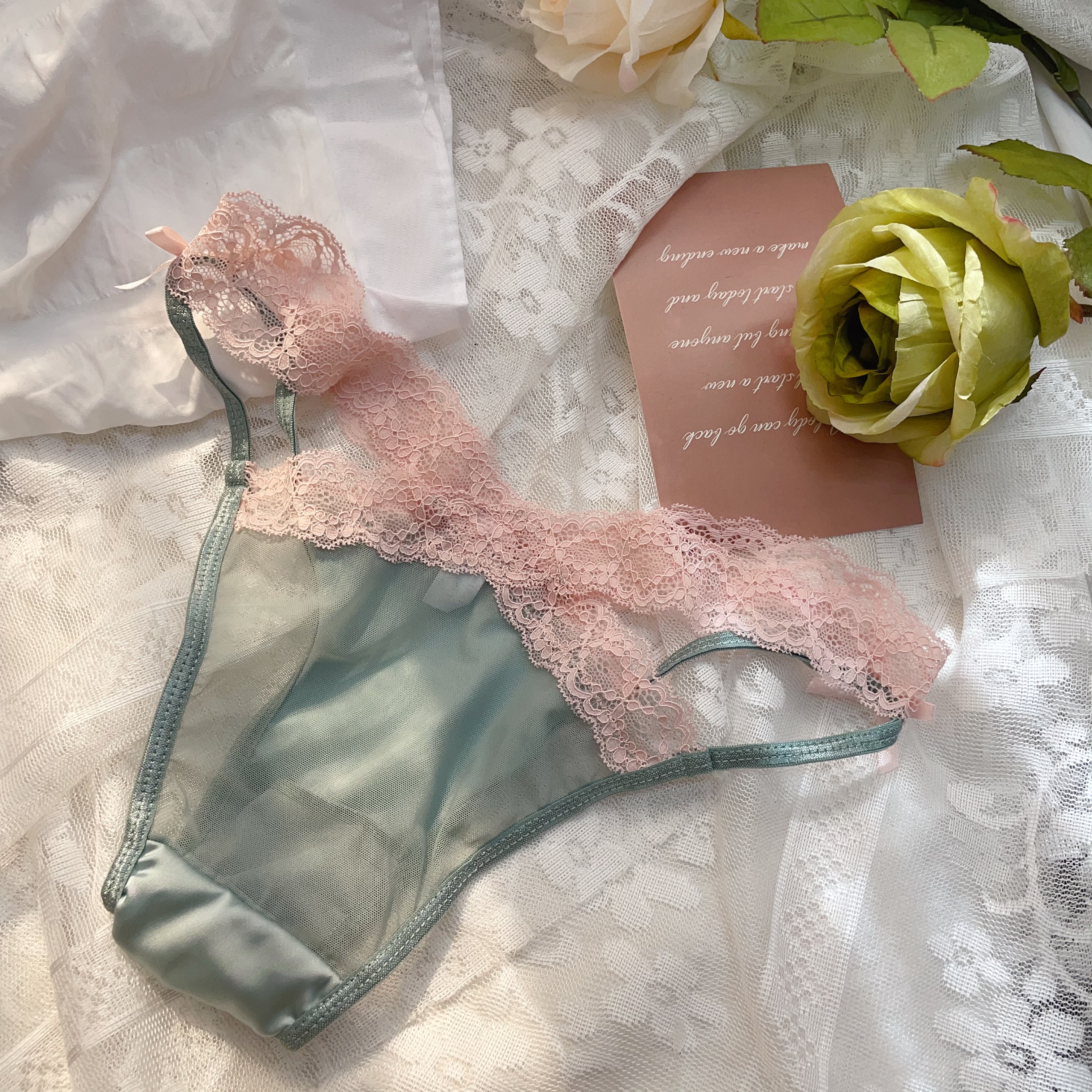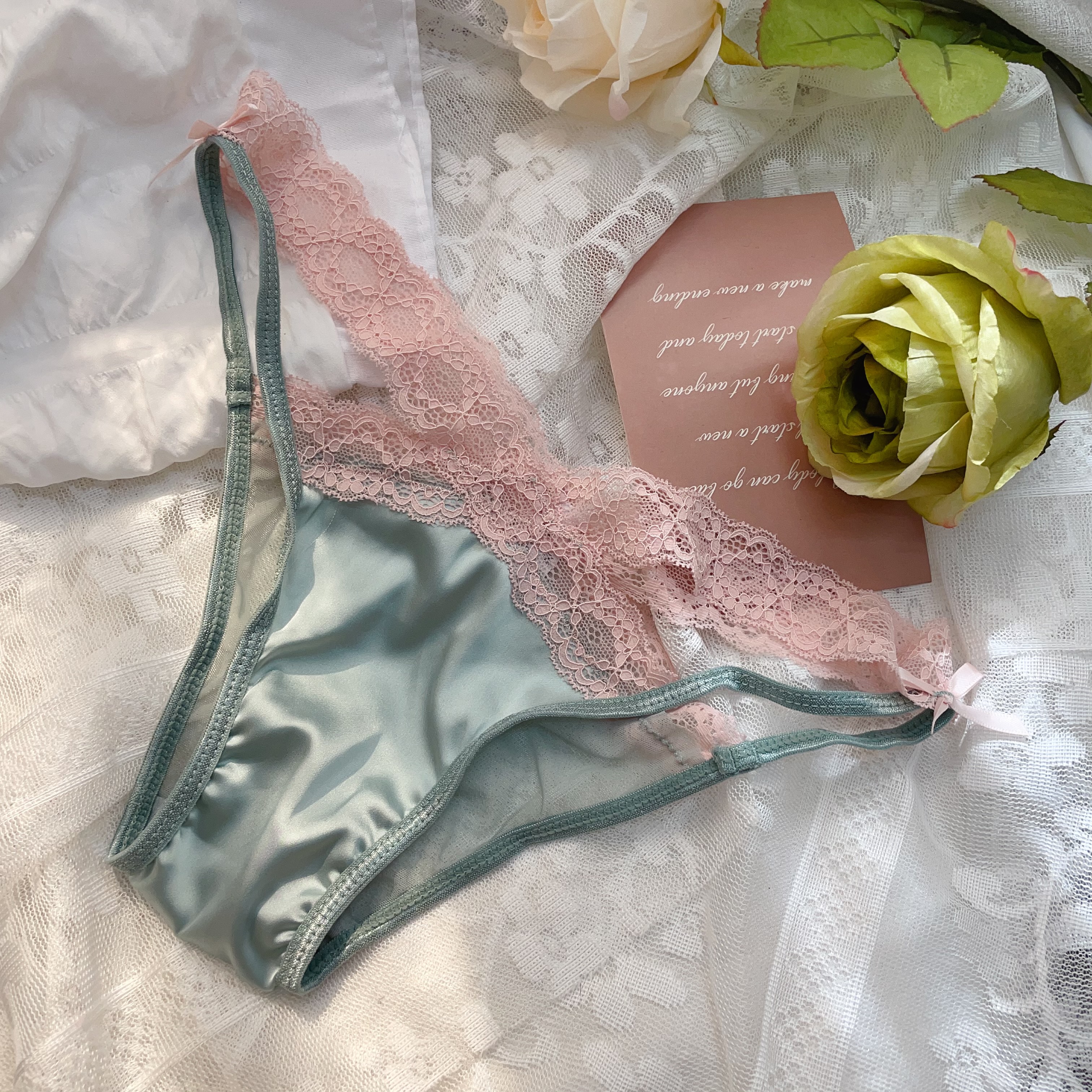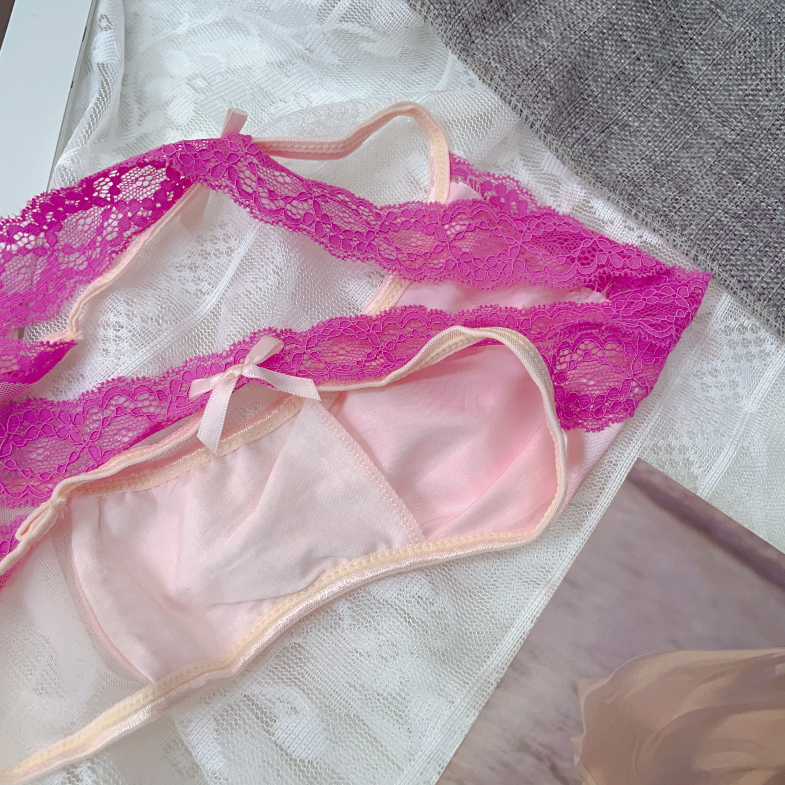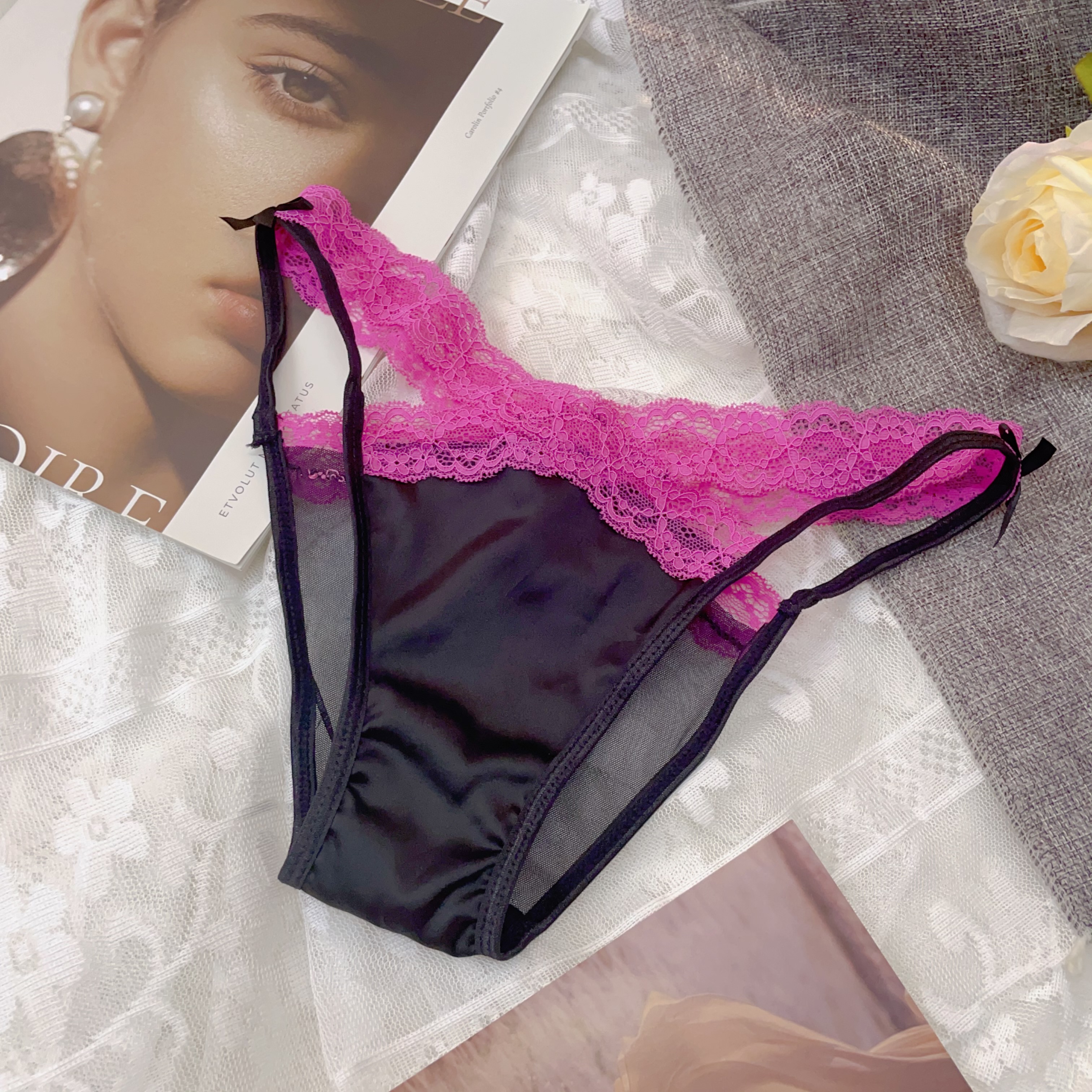 French-Style High-End Pure and Sexy Girl's Briefs with Thin Straps, Hollow Lace Trim, and Bowknot Women's Underwear