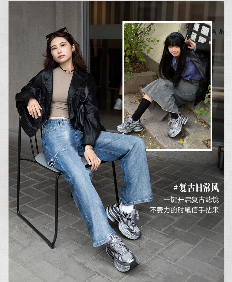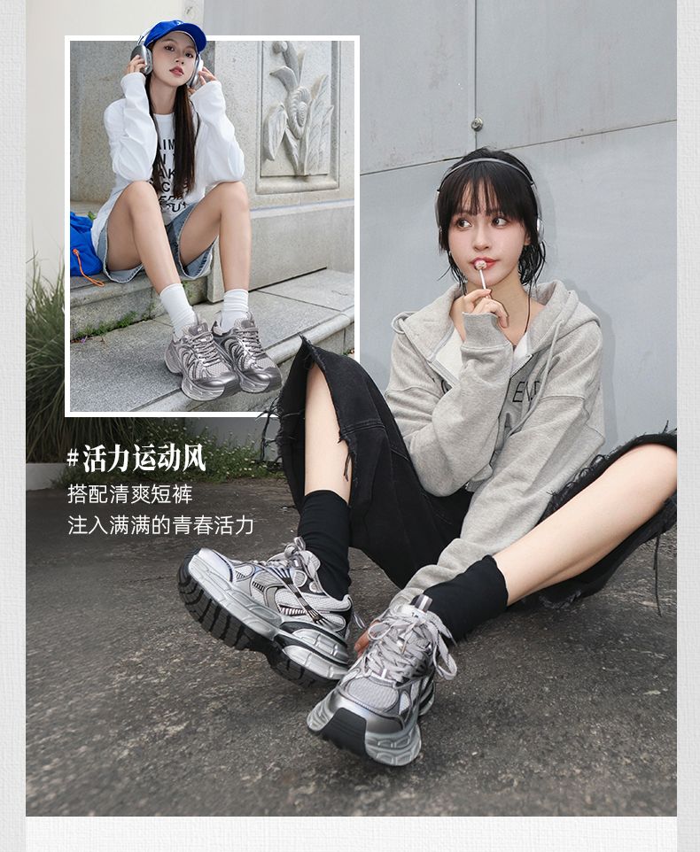 [Same Style as Dilraba] Camel Silver Moon Dad Shoes for Women, Fleece-Lined, Thick-Soled, Height-Increasing, Couple's Casual Sports Shoes