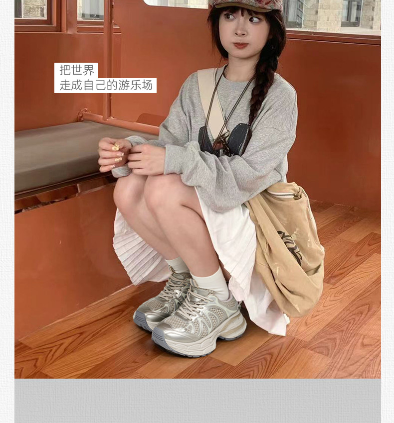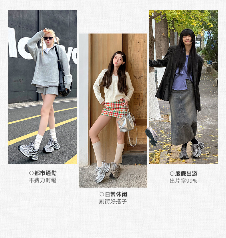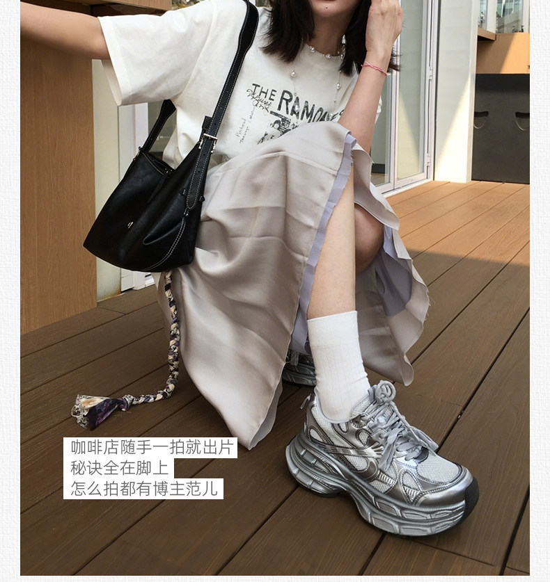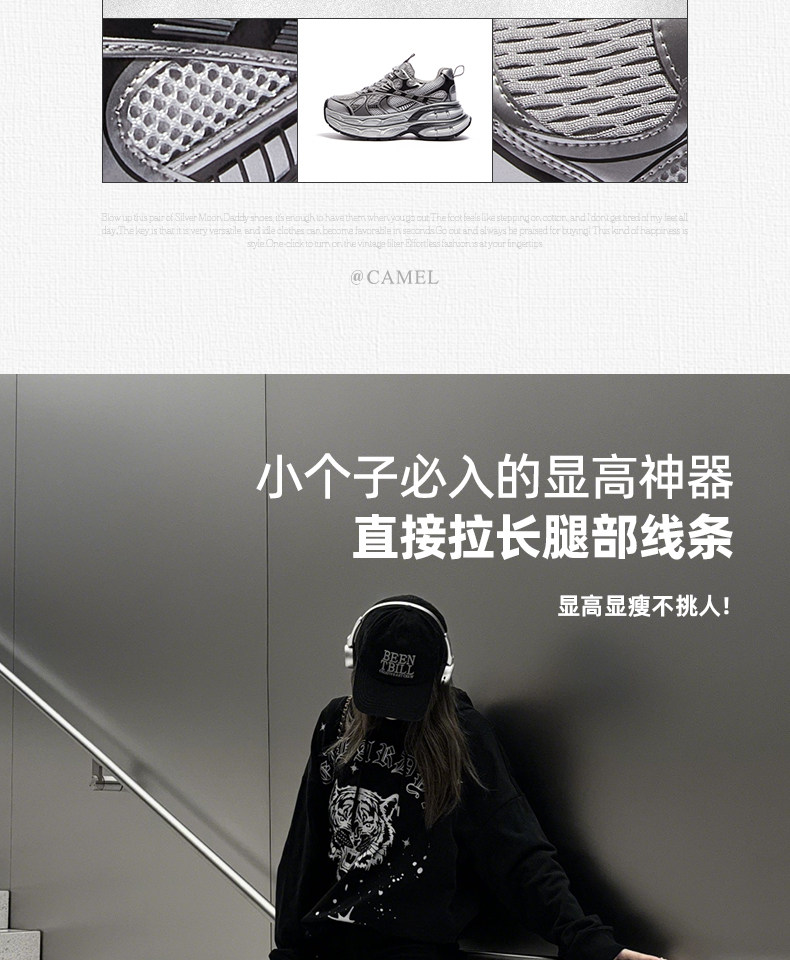 [Same Style as Dilraba Dilmurat] Camel Silver Moon Dad Shoes for Women, Silver Thick-Soled Height-Increasing Casual Sports Shoes for Couples