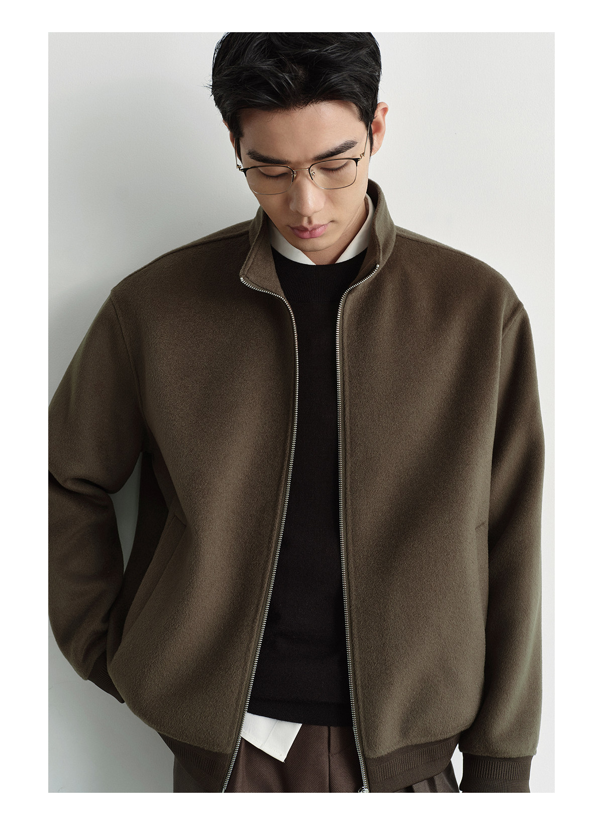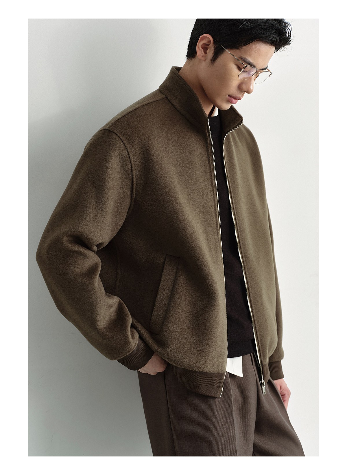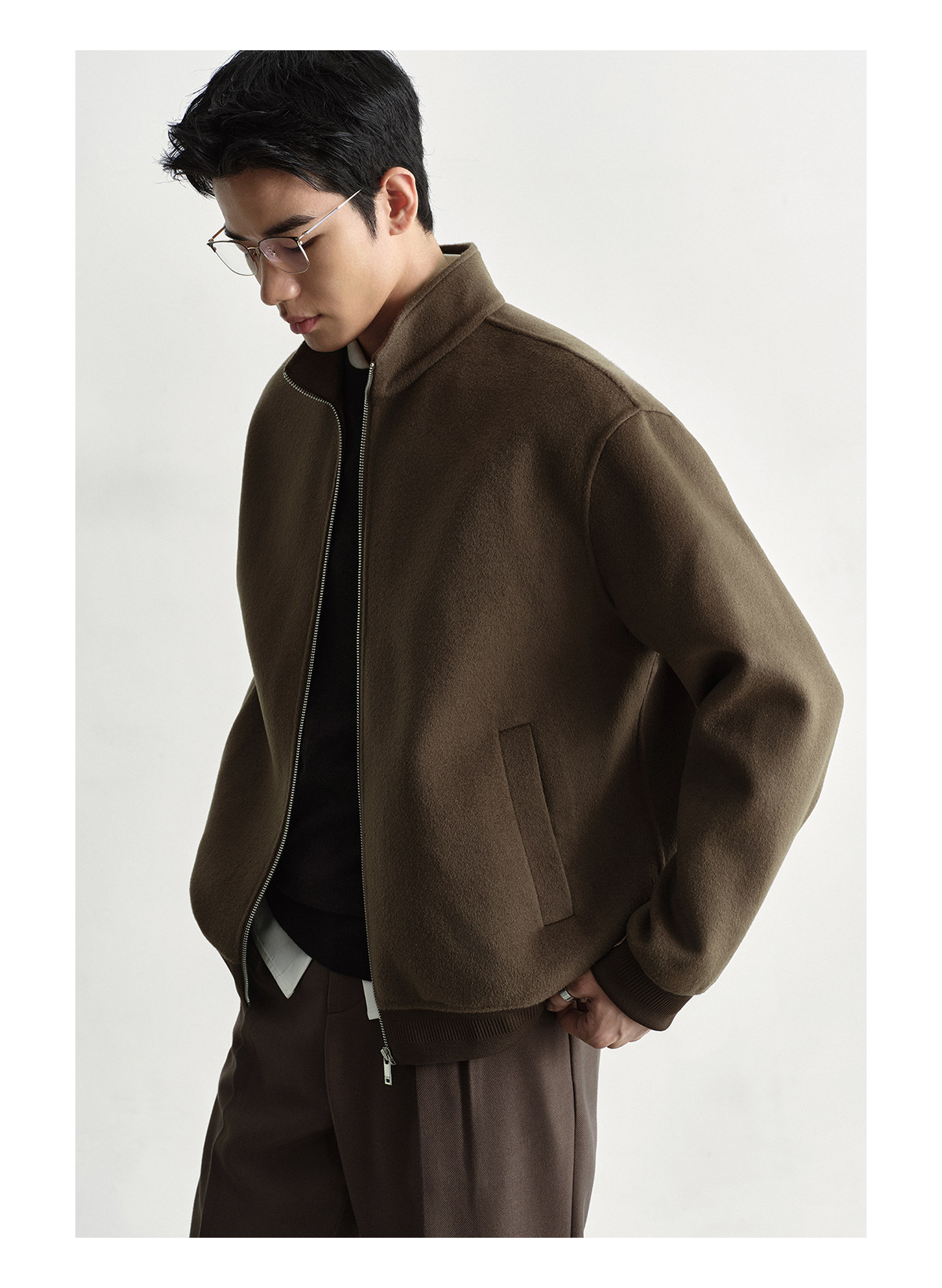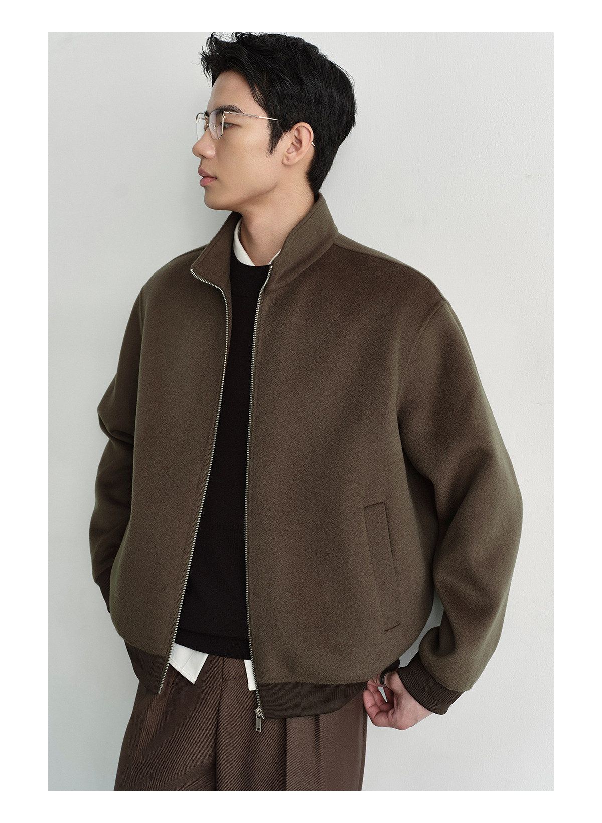 Osens Men's Clothing 100% Wool Short Coat Handmade Double-Sided Woolen Jacket with Regular Shoulders and Stand Collar Men's Woolen Coat