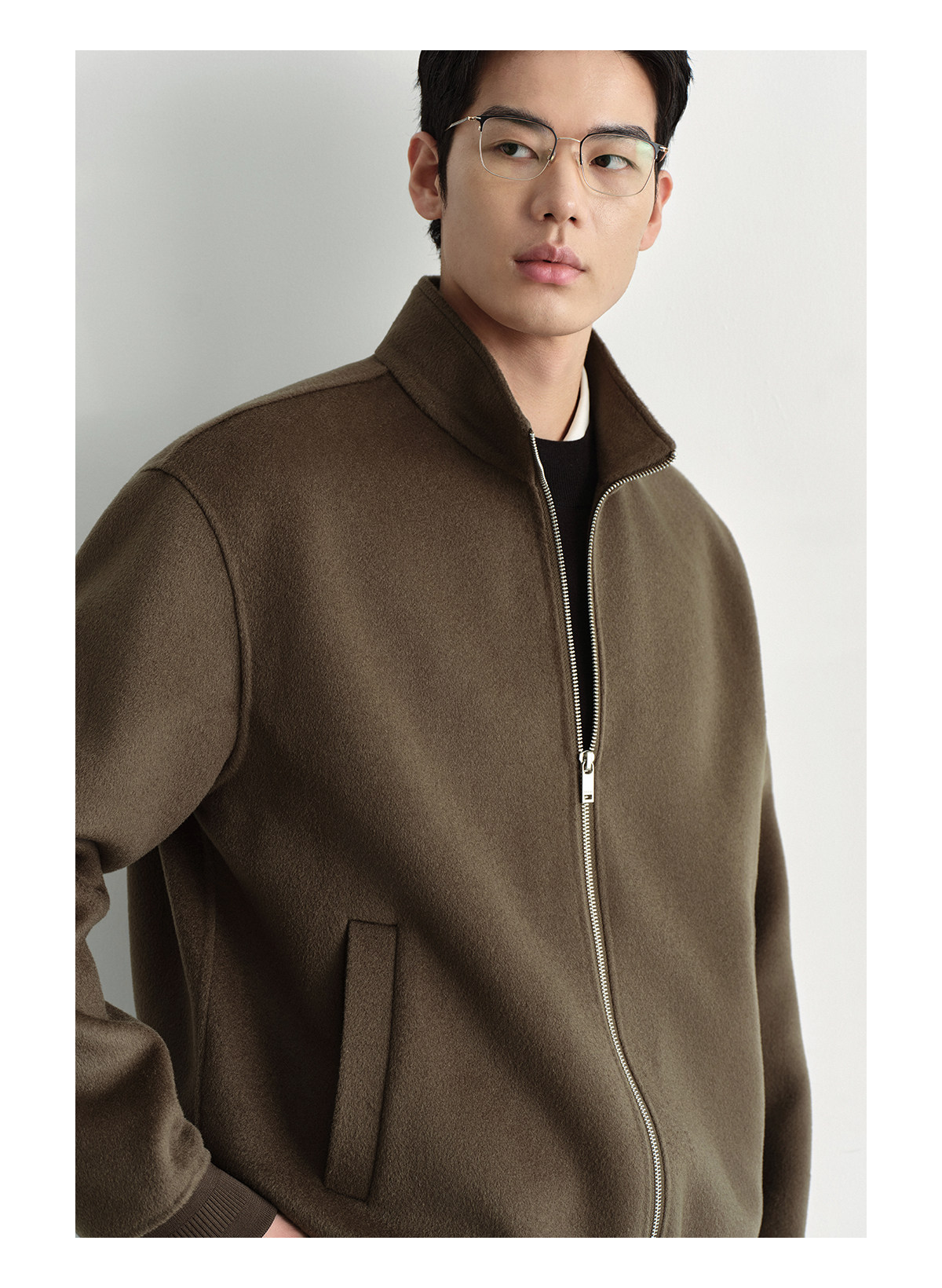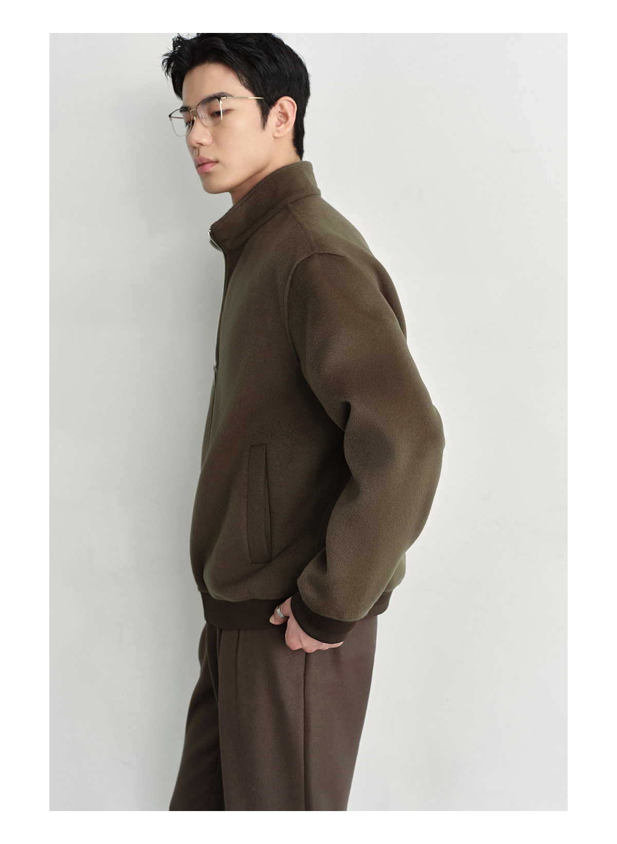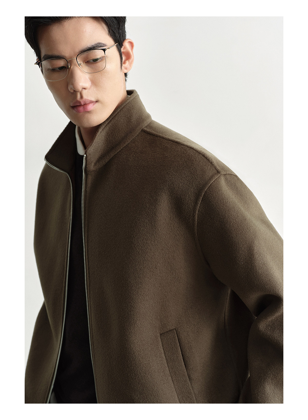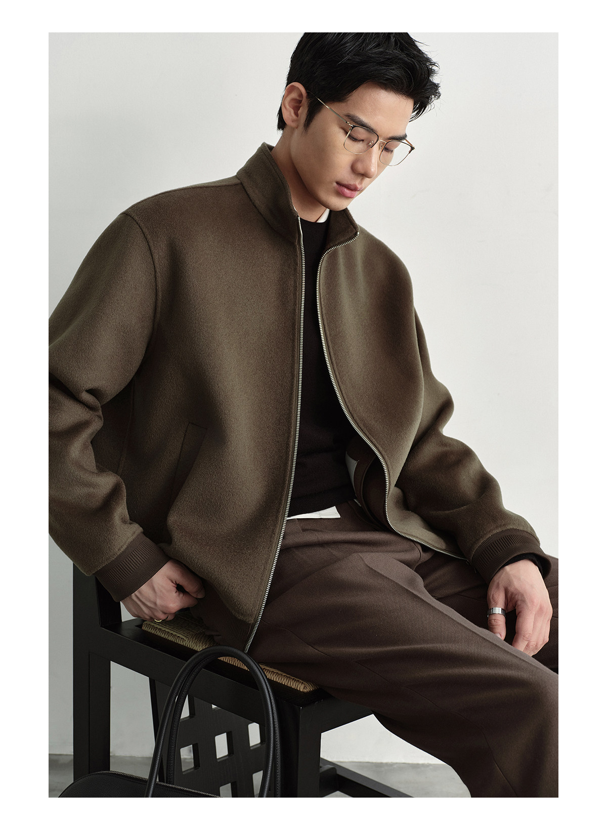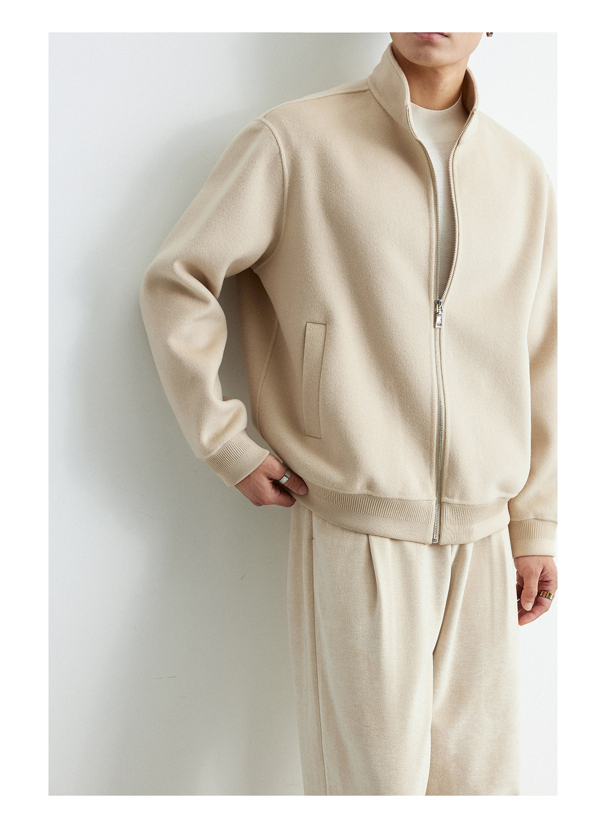 Osens Men's Clothing 100% Wool Short Coat Handmade Double-Sided Woolen Jacket with Regular Shoulders and Stand Collar Men's Woolen Coat