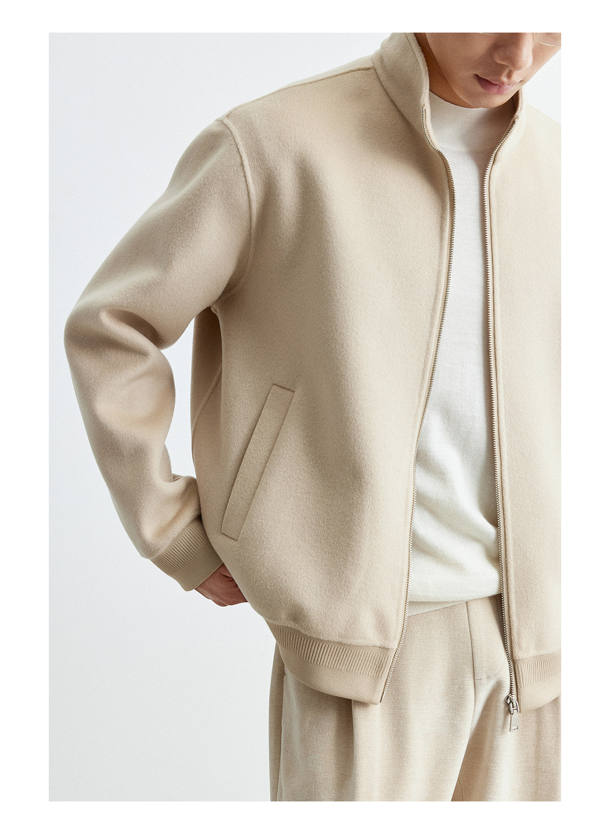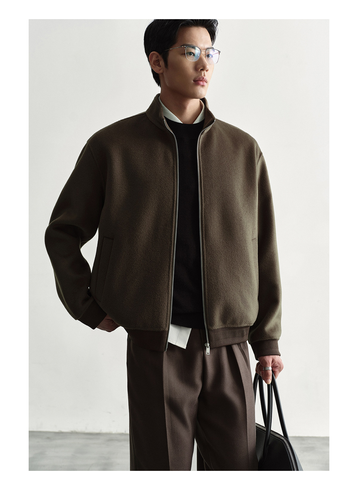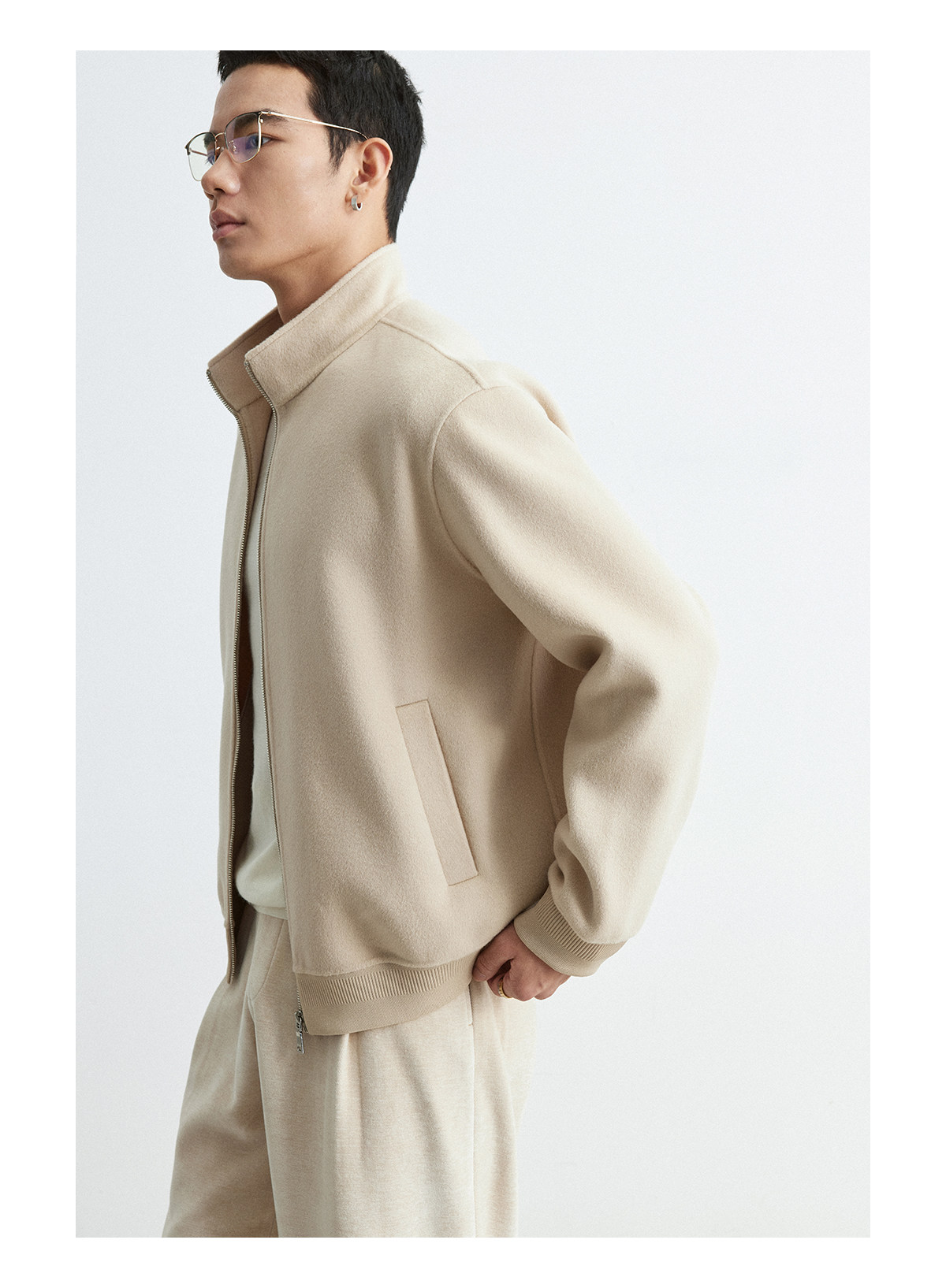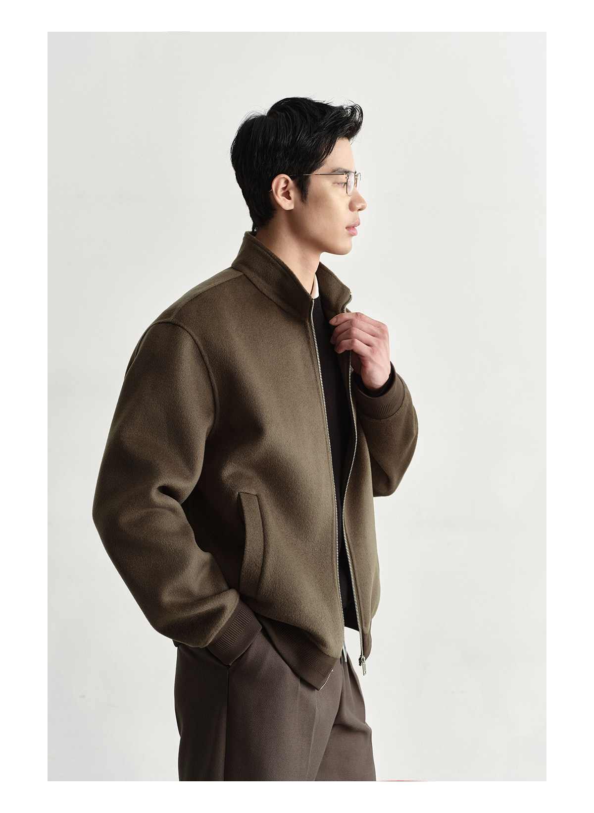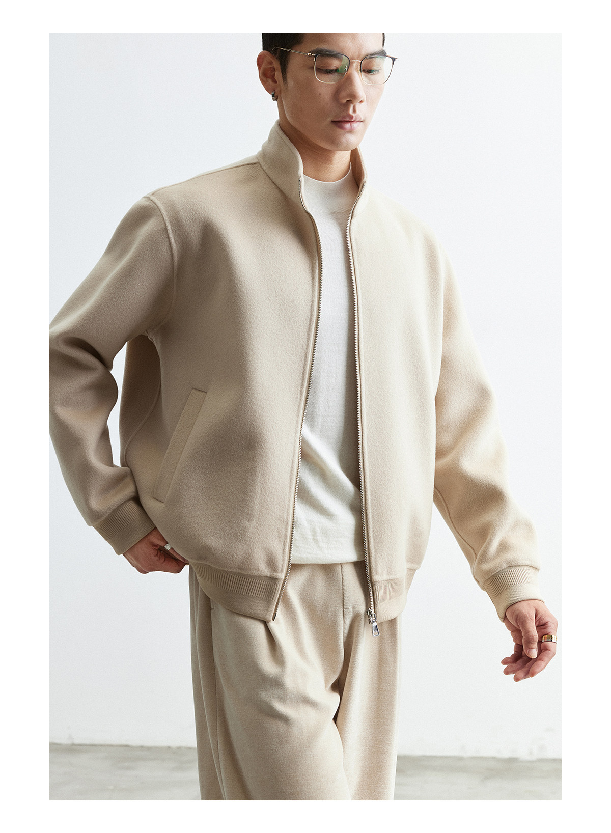 Osens Men's Clothing 100% Wool Short Coat Handmade Double-Sided Woolen Jacket with Regular Shoulders and Stand Collar Men's Woolen Coat