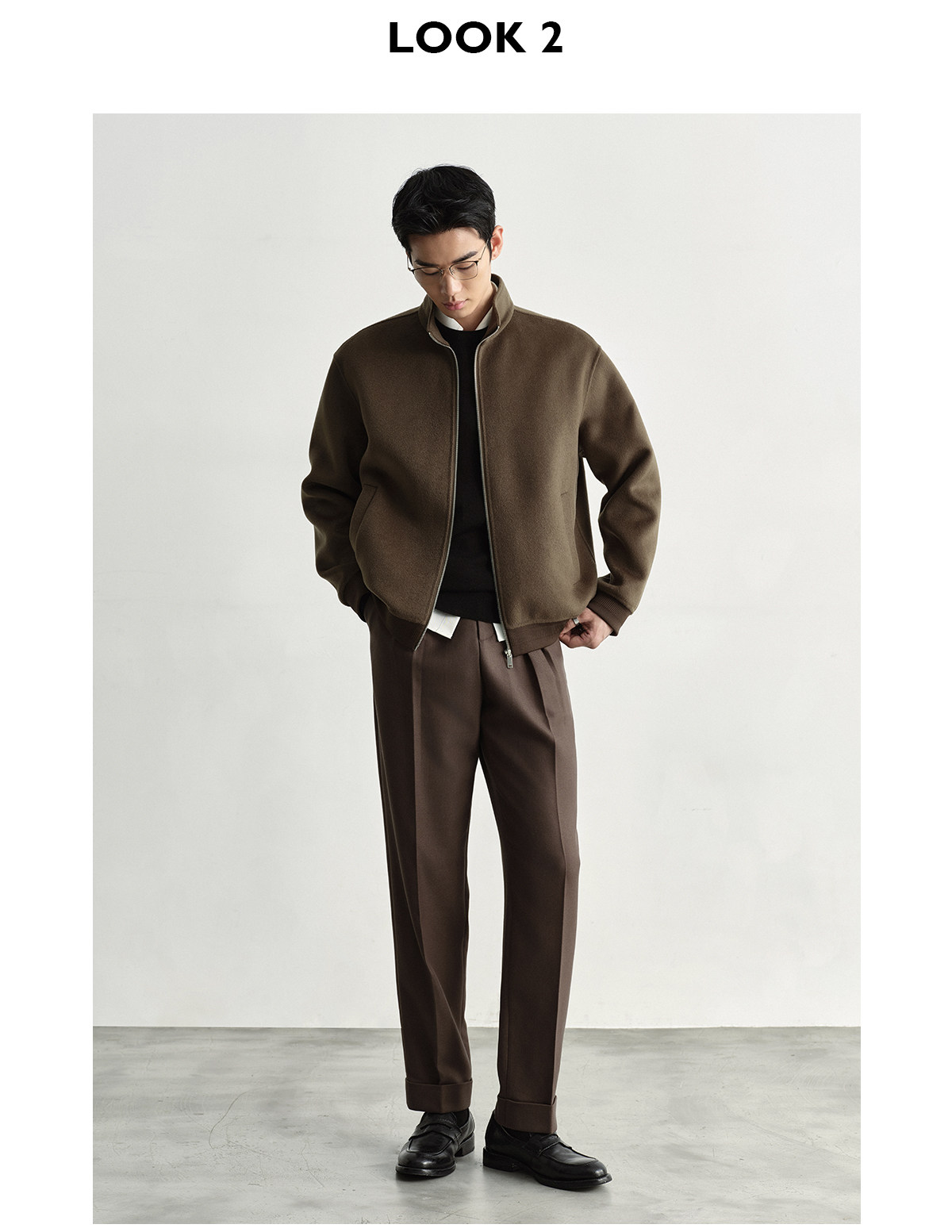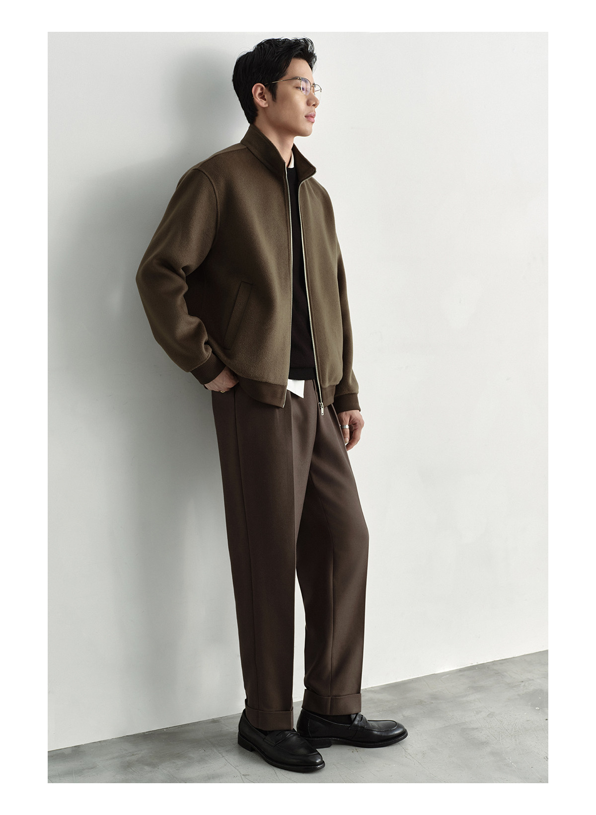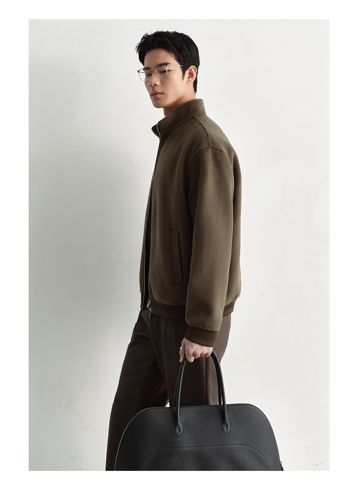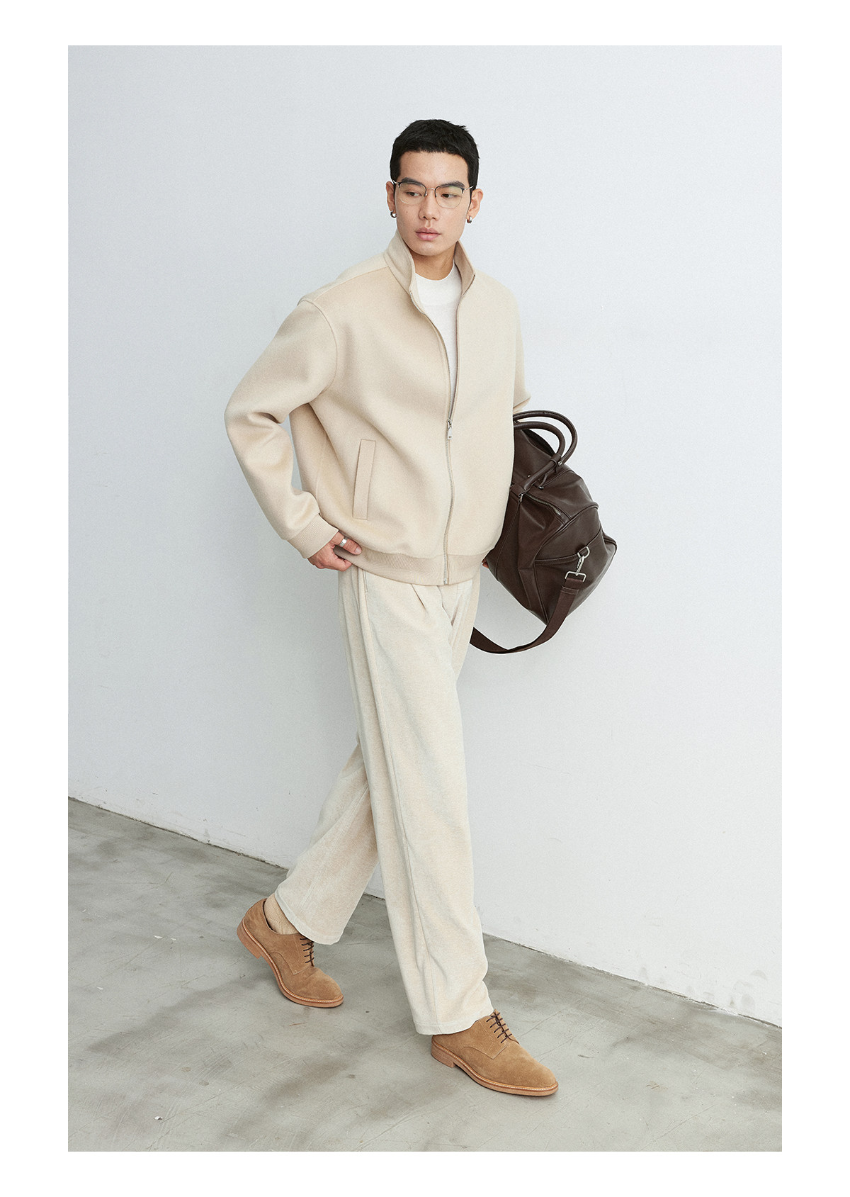 Osens Men's Clothing 100% Wool Short Coat Handmade Double-Sided Woolen Jacket with Regular Shoulders and Stand Collar Men's Woolen Coat