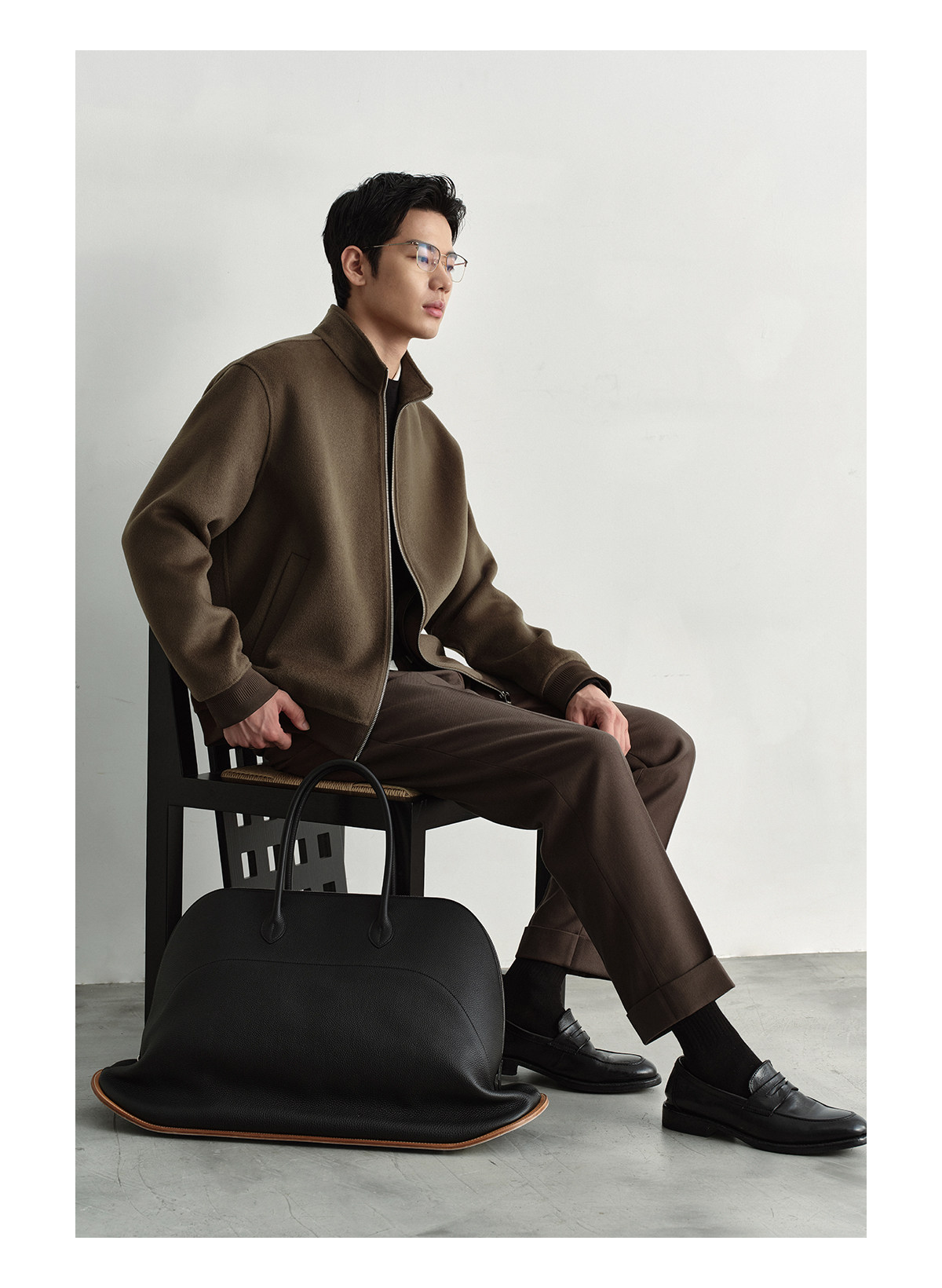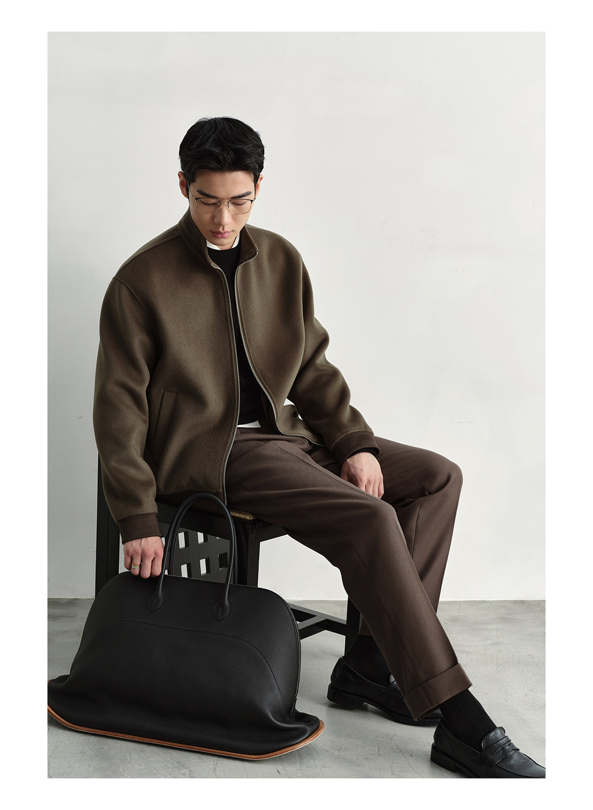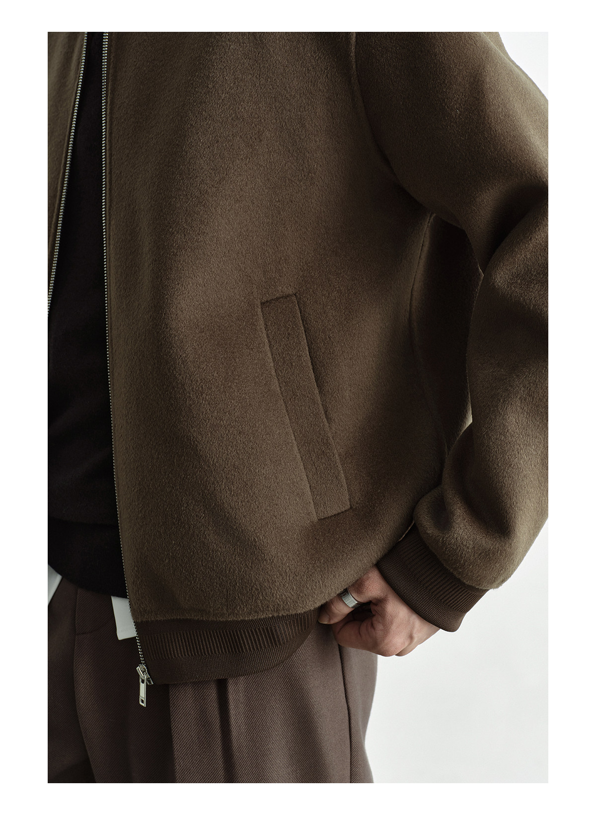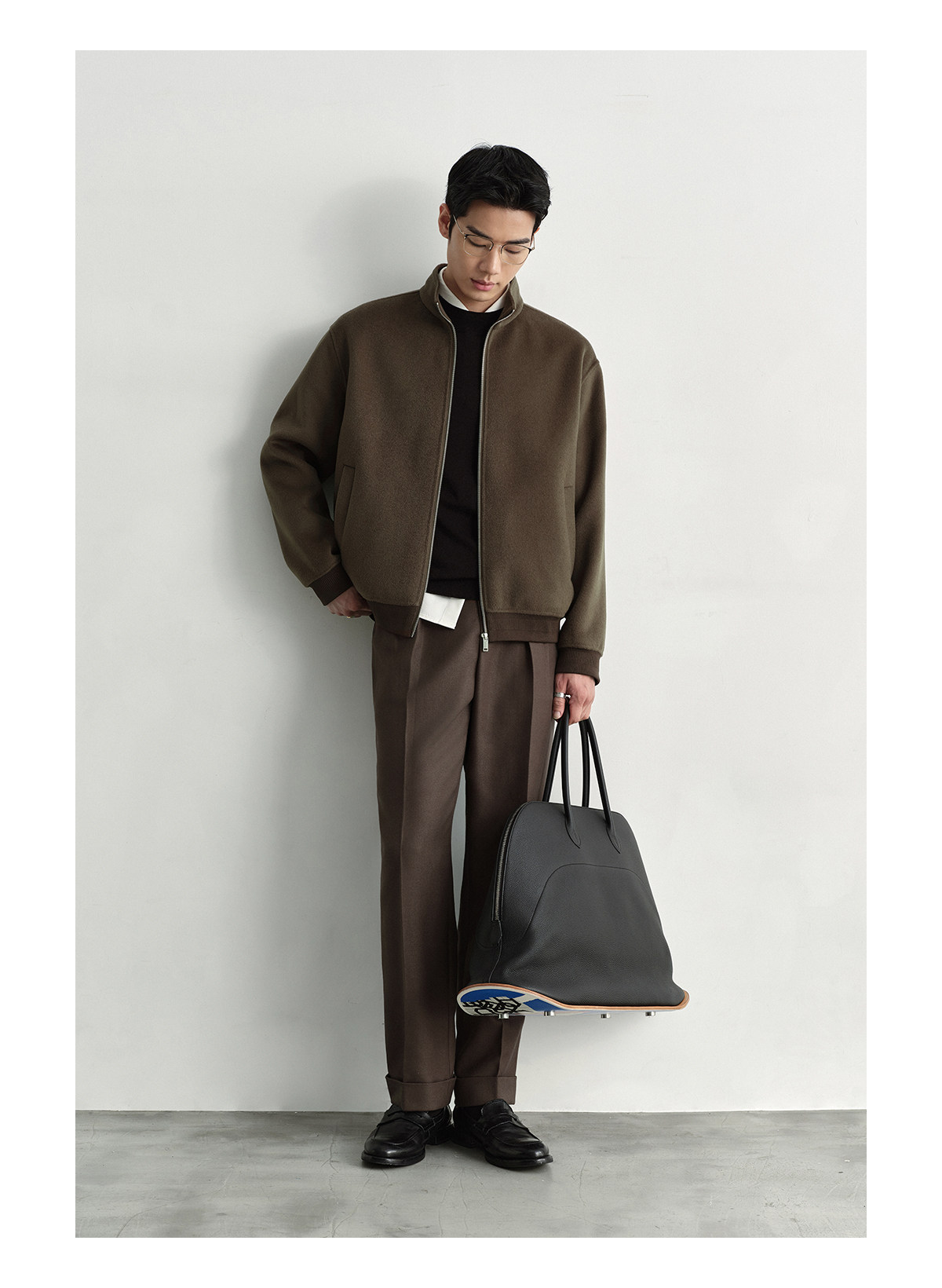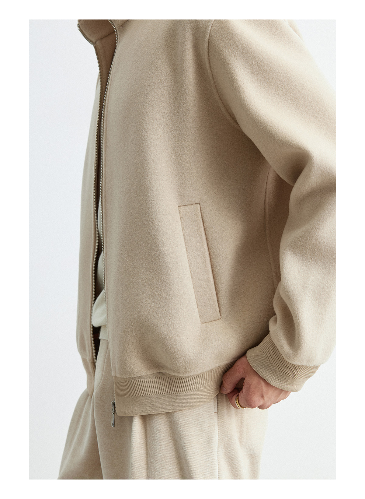 Osens Men's Clothing 100% Wool Short Coat Handmade Double-Sided Woolen Jacket with Regular Shoulders and Stand Collar Men's Woolen Coat