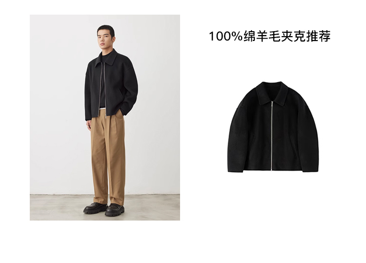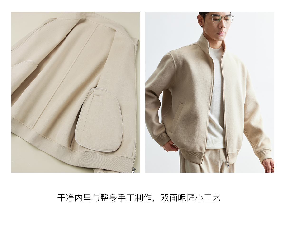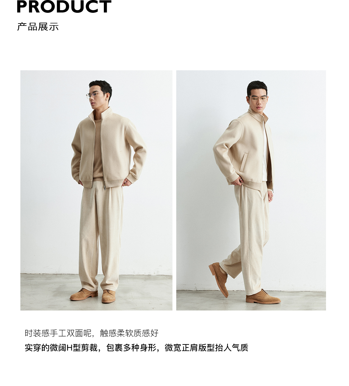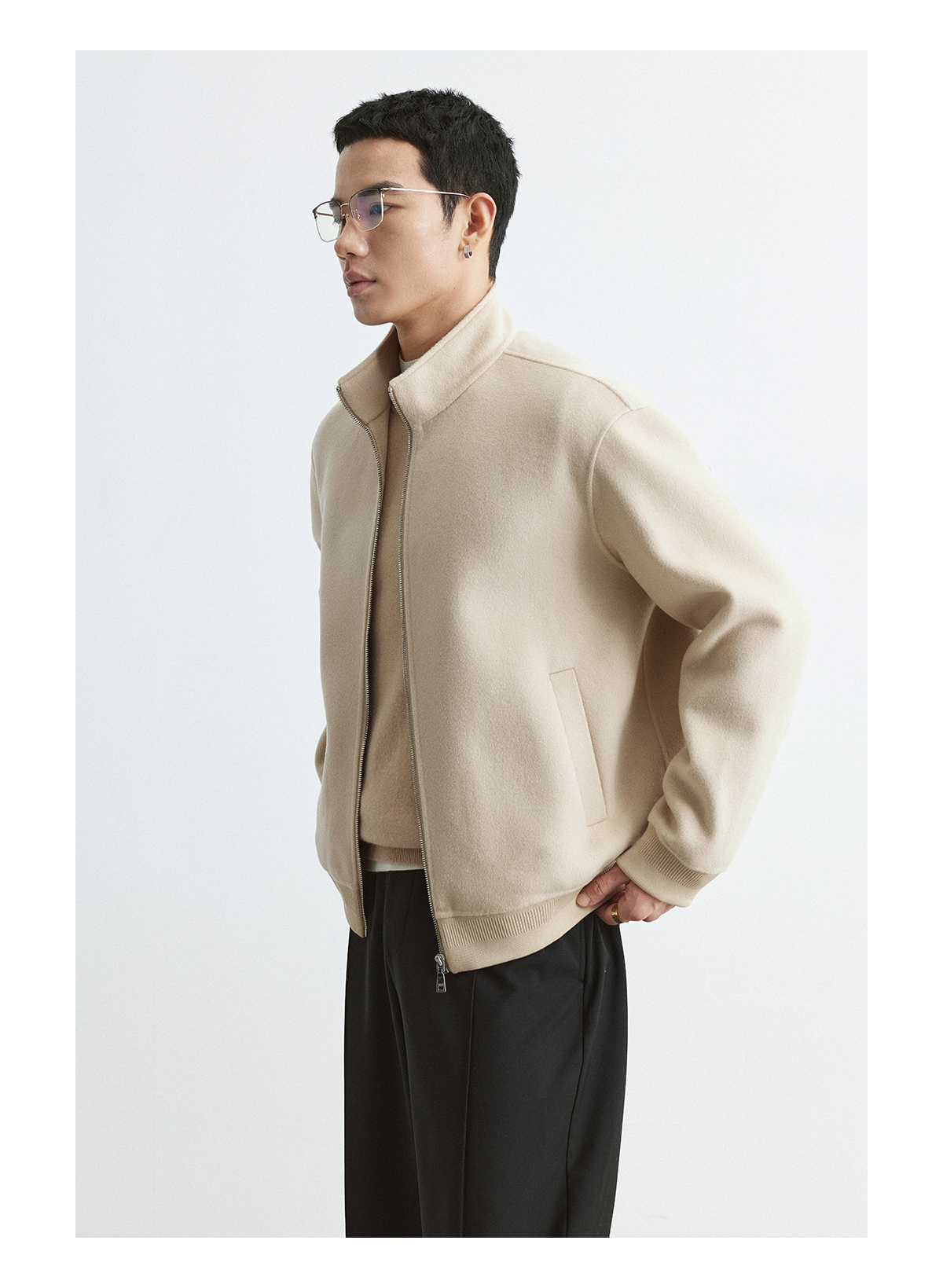 OSENS men's 100% wool short coat handmade double-sided tweed jacket shoulder collar Men woolen Outwear