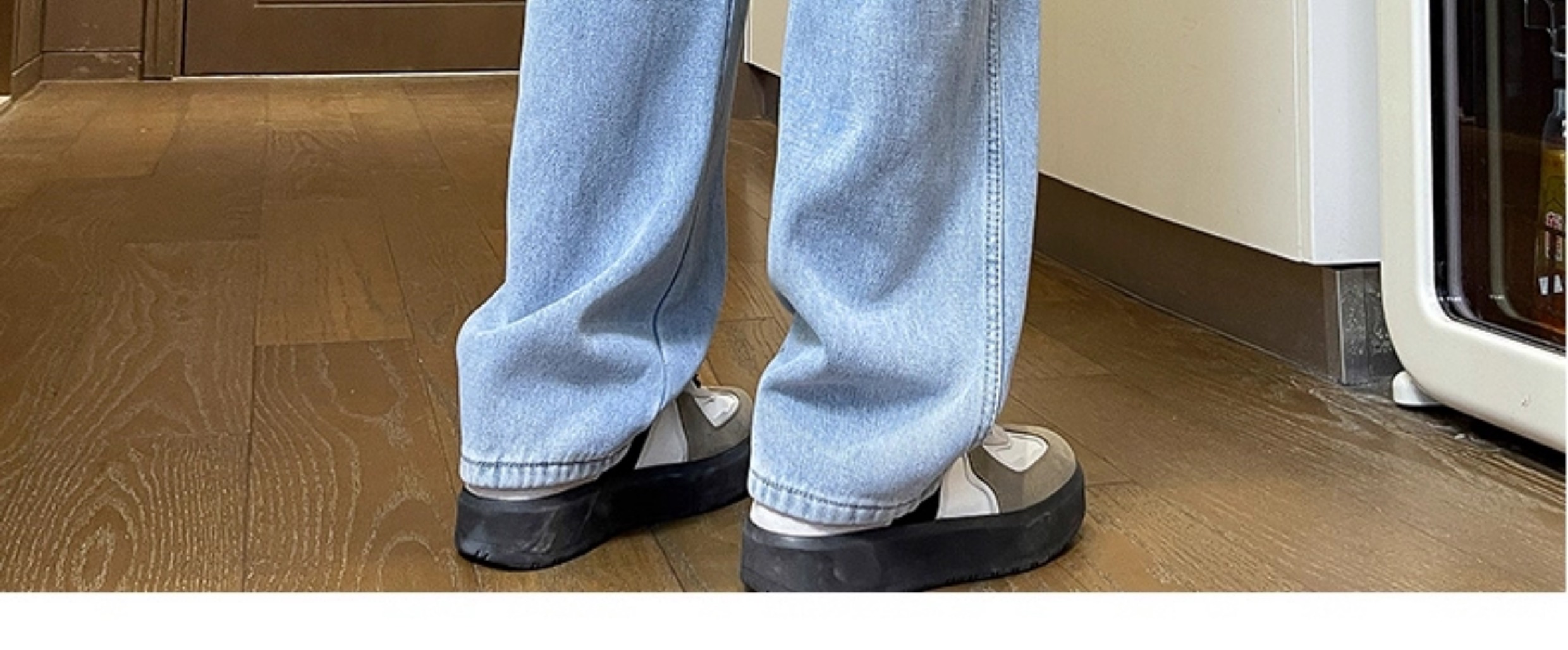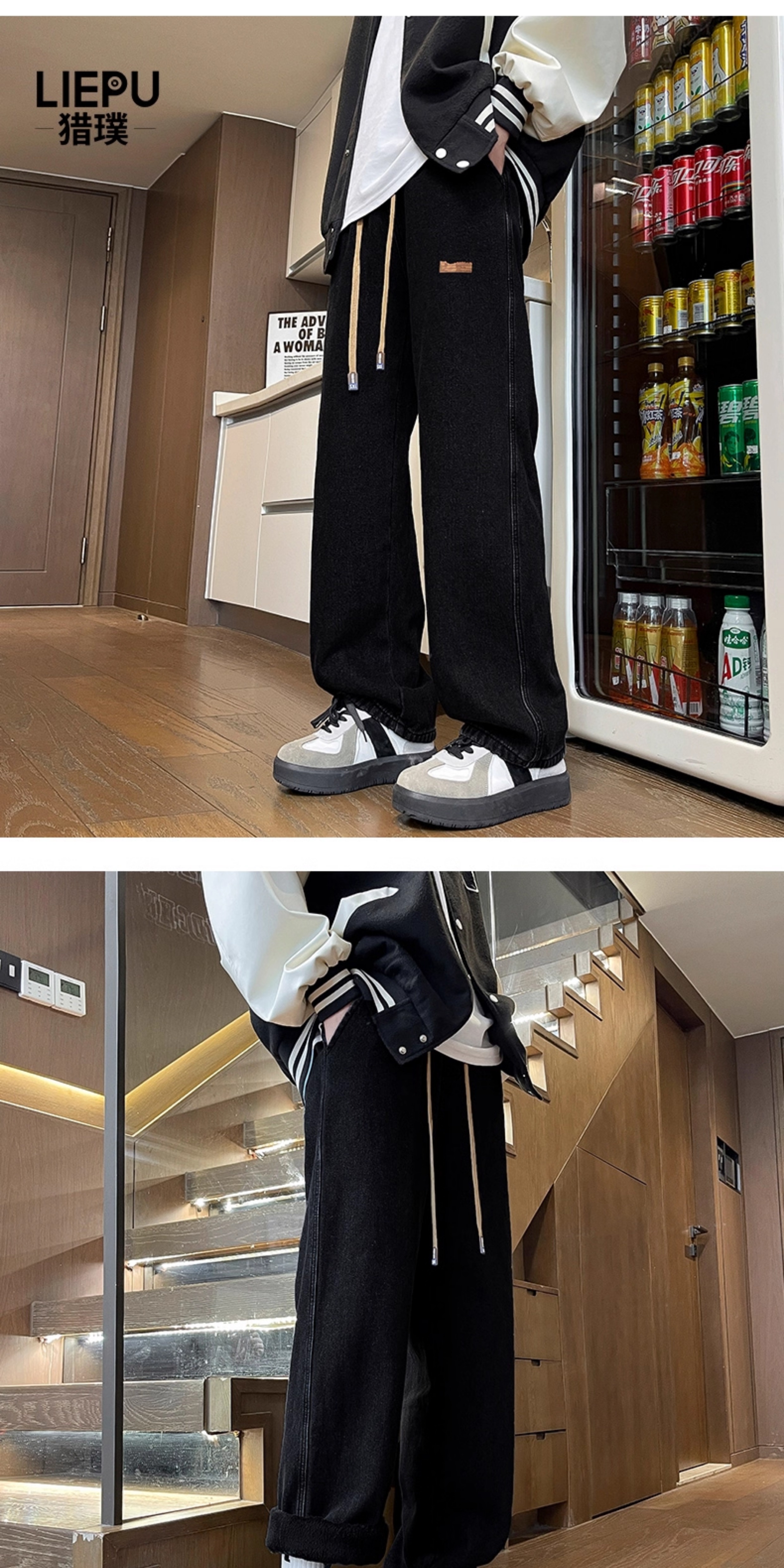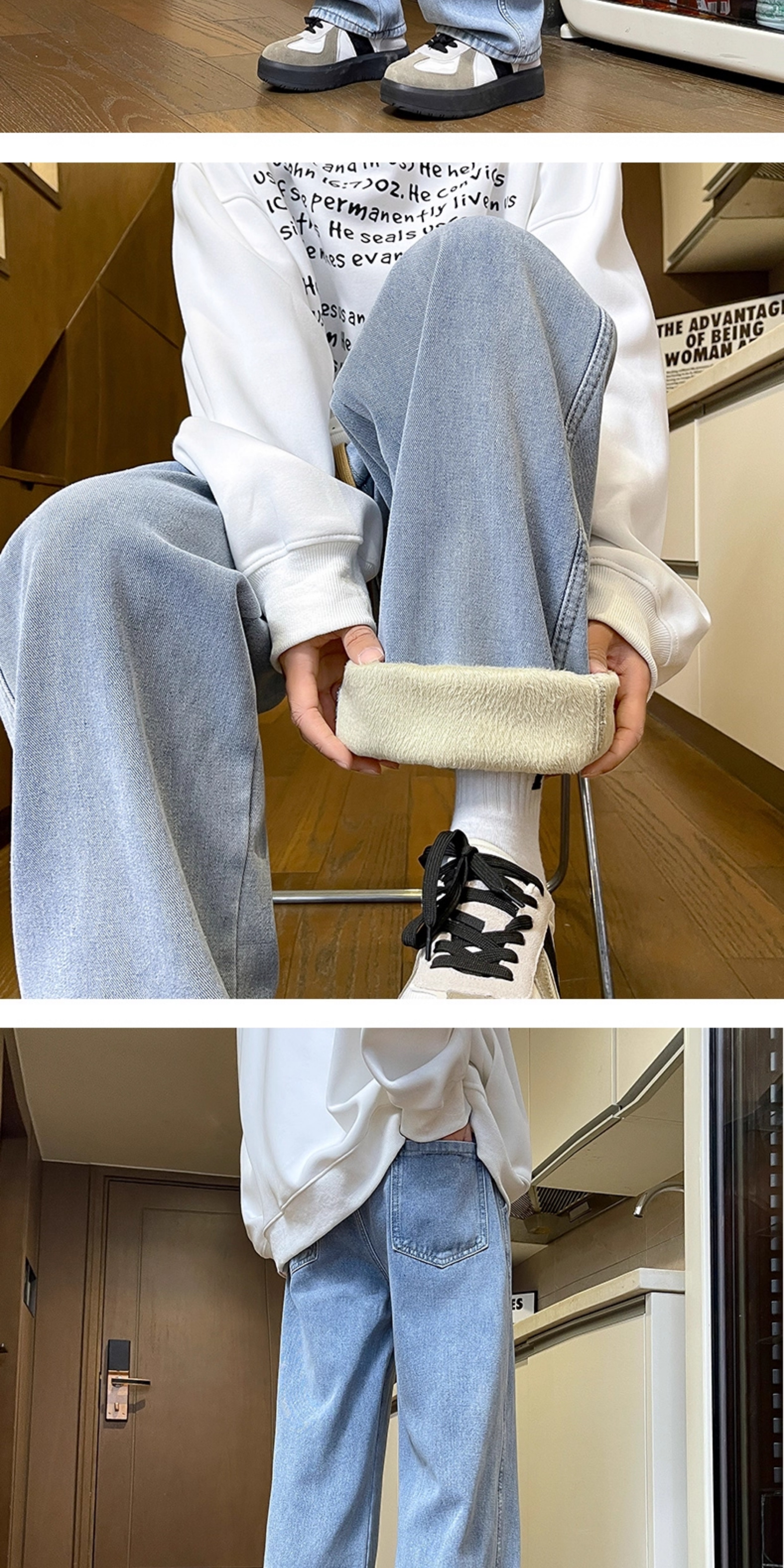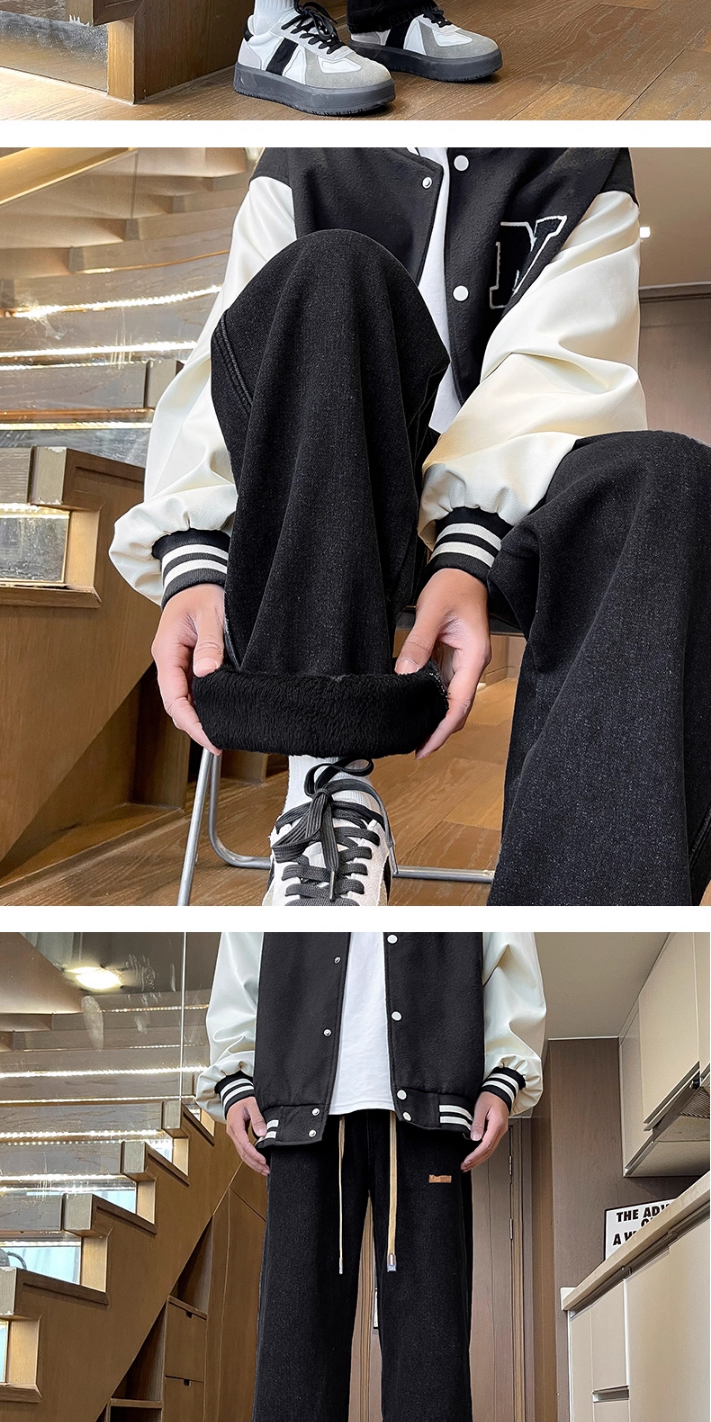 Men's Fleece-Lined Jeans, American Style, New Winter Casual Loose Fit, Straight-Leg Thickened Pants