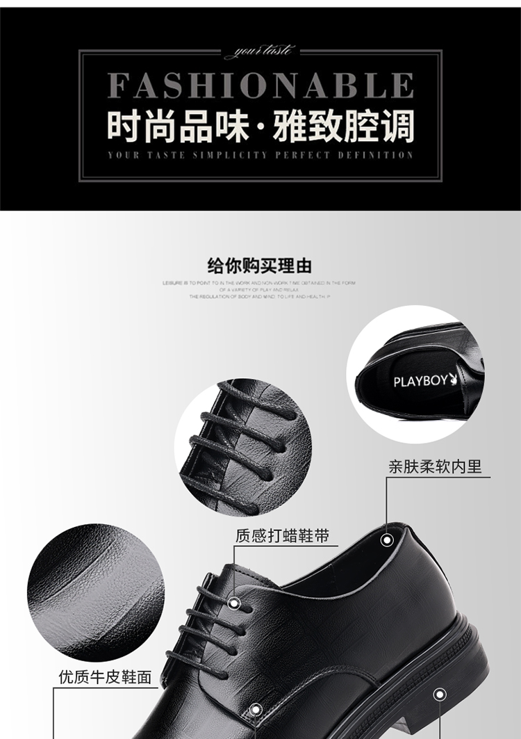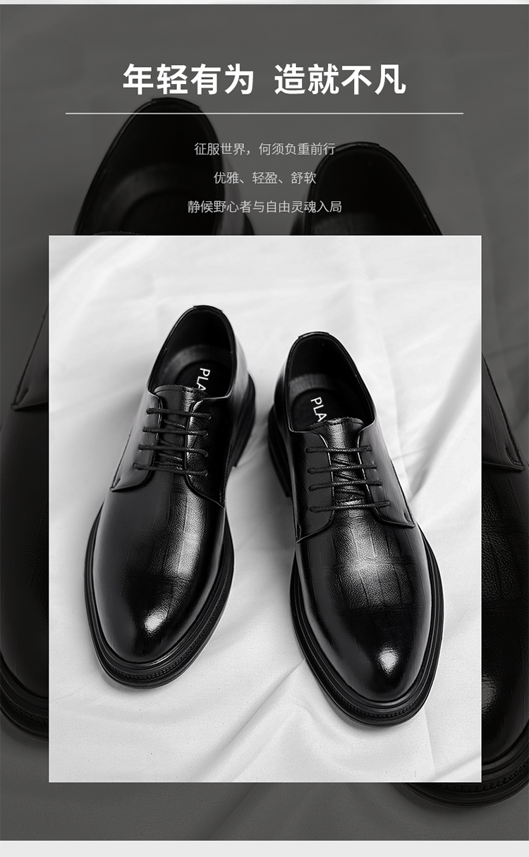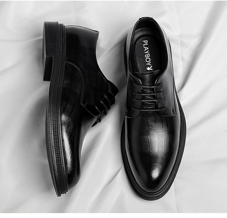 Playboy Men's Shoes 2025 New Autumn and Winter Business Formal Leather Shoes Men's Genuine Leather Height-Increasing Wedding Groom Shoes