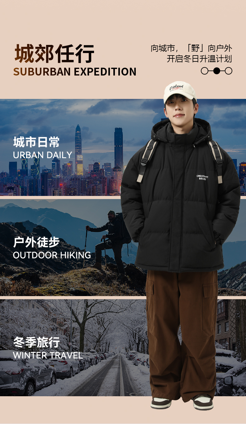 Pull-Back Cotton Coat for Men, New Winter Style, Hooded Puffer Jacket, Thickened for Warmth and Cold Protection, Winter Clothing, down Cotton Jacket