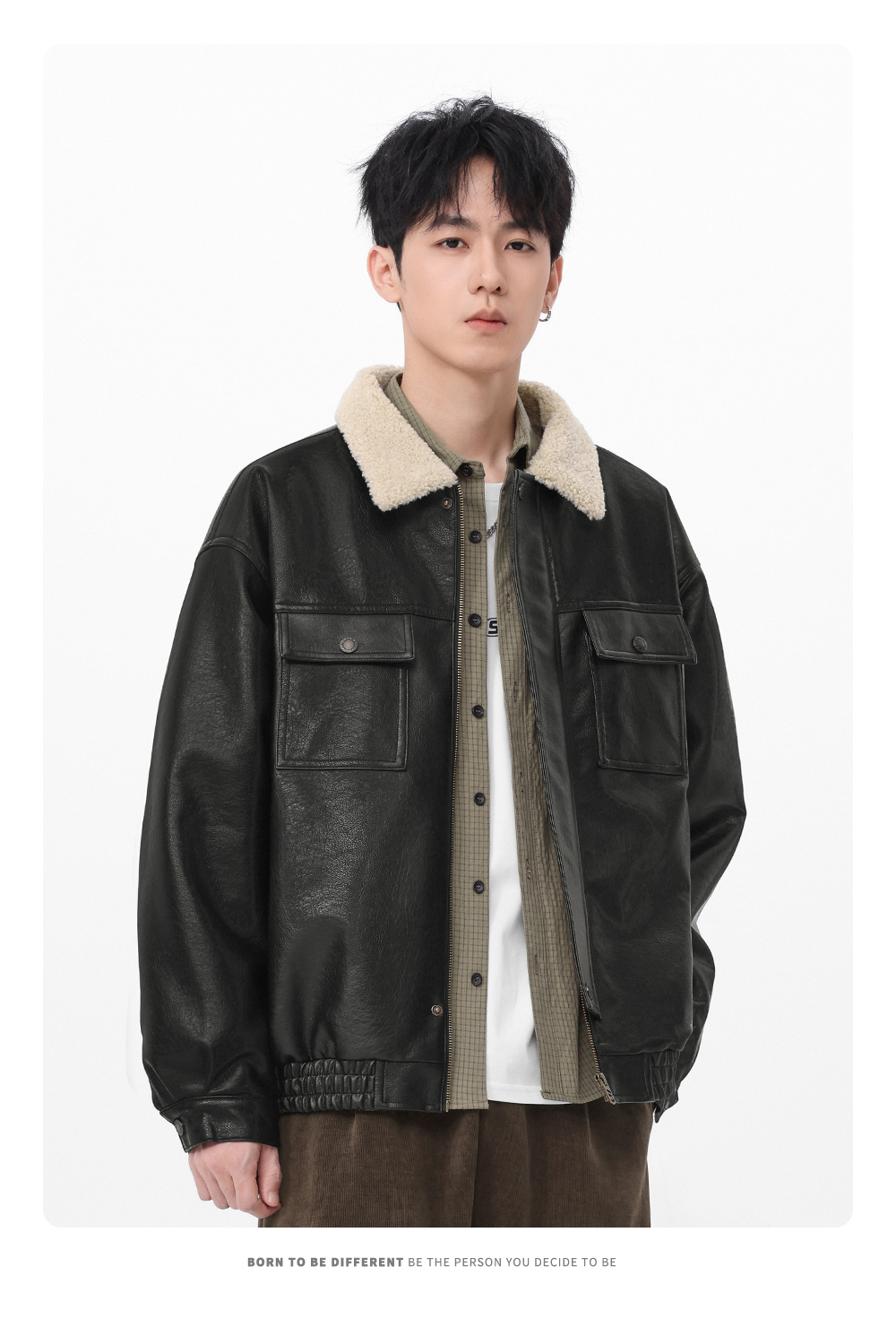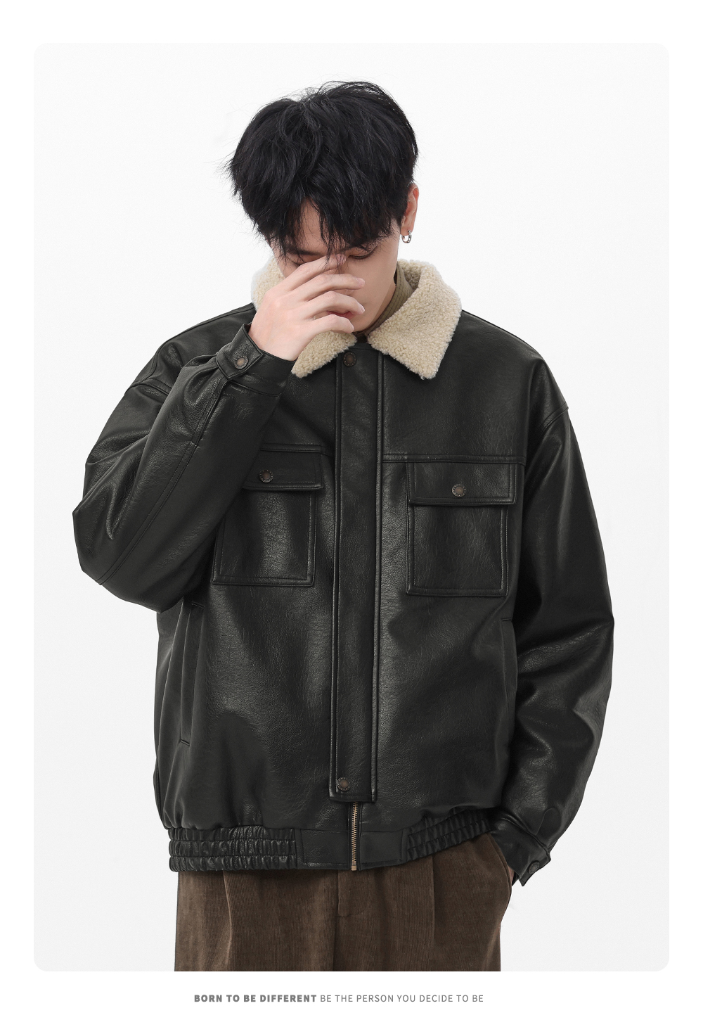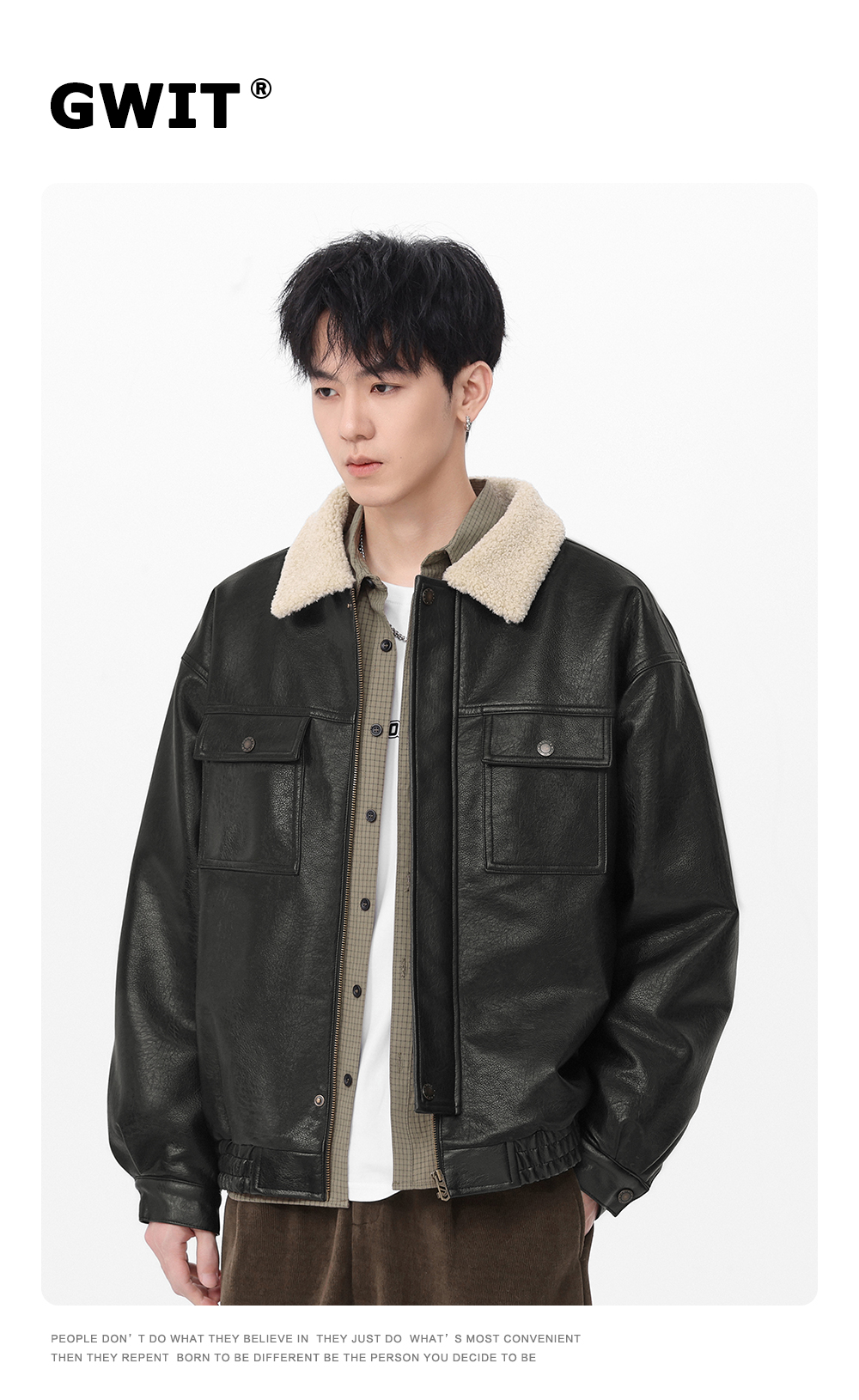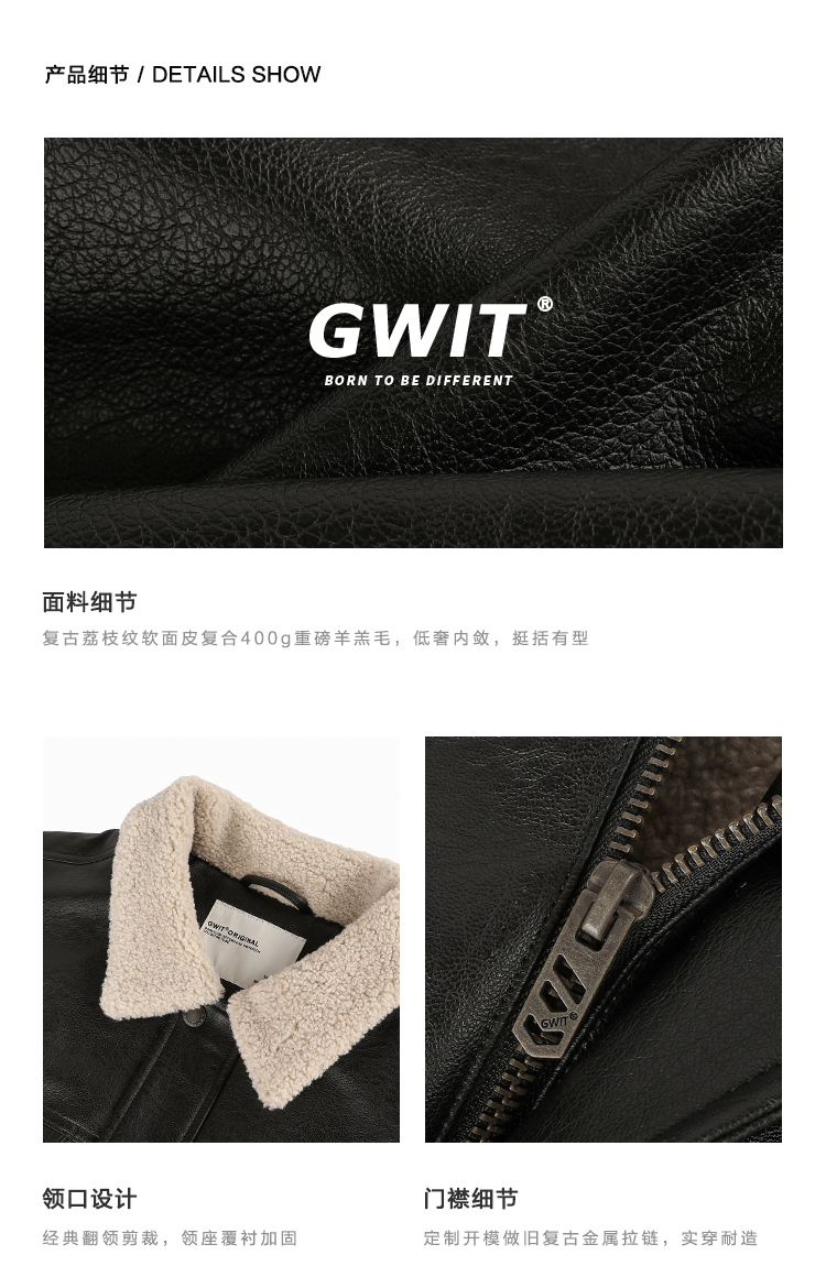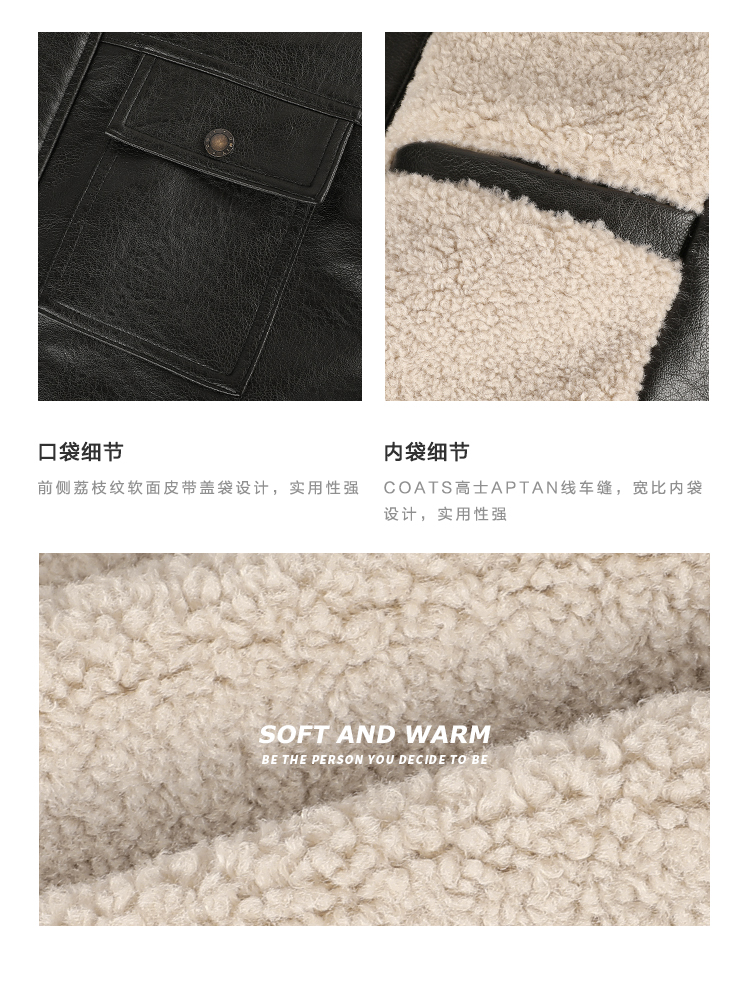 Gwit American Retro Heavy-Duty Pu Leather Winter Warm Melard Jacket Thickened Lamb Fur Coat for Men