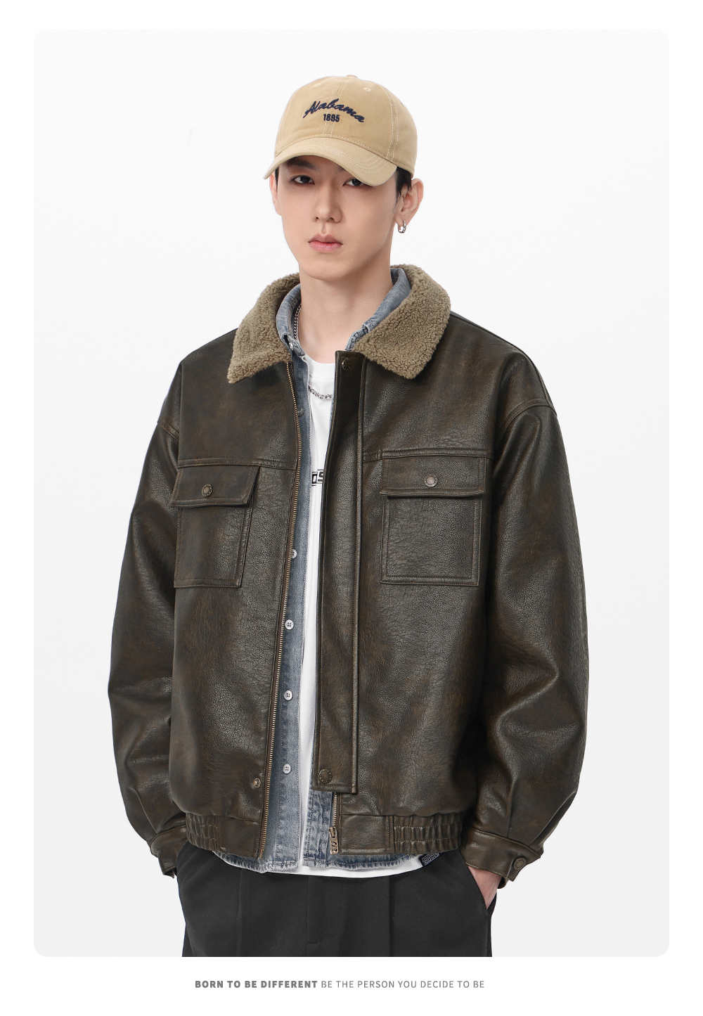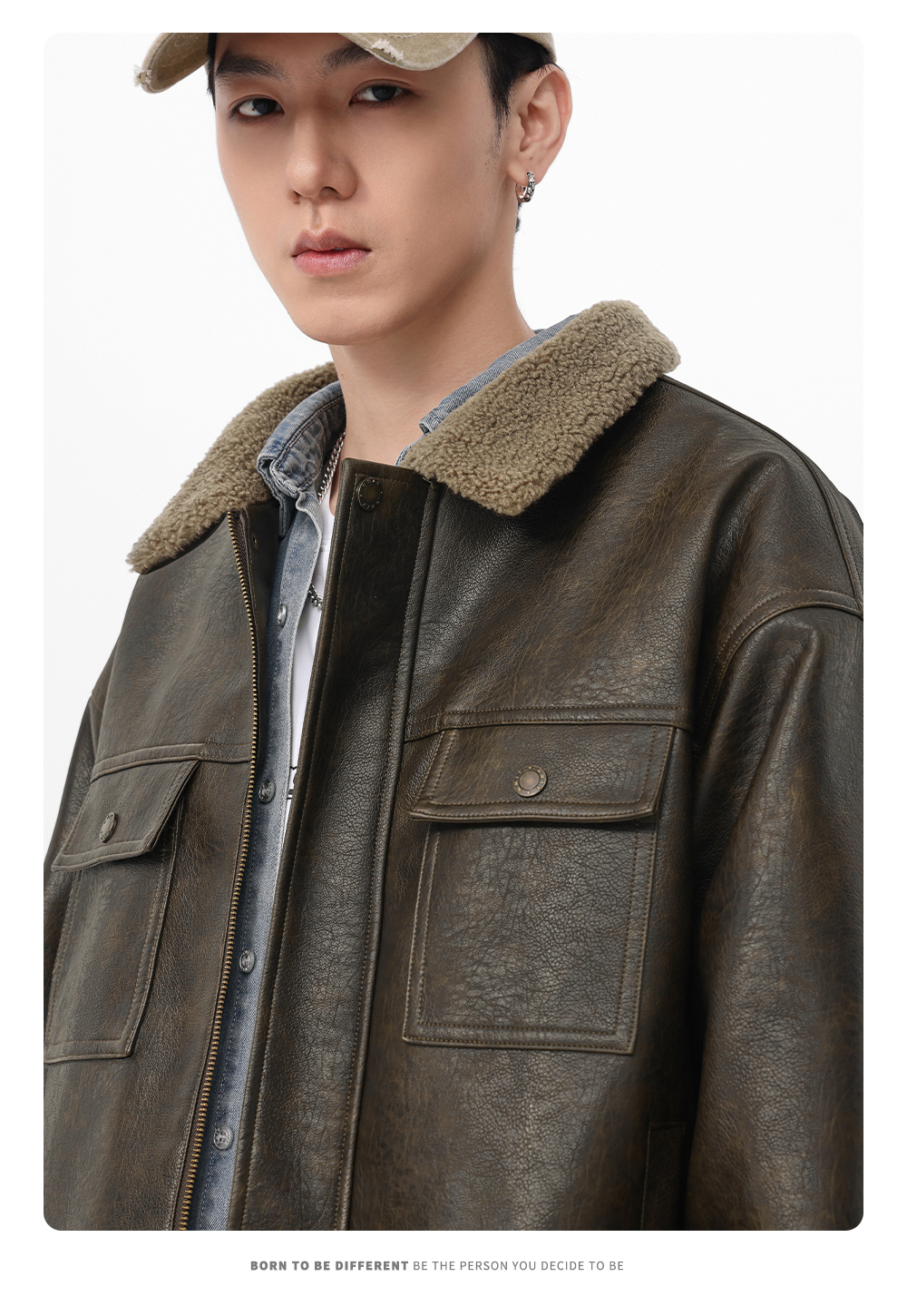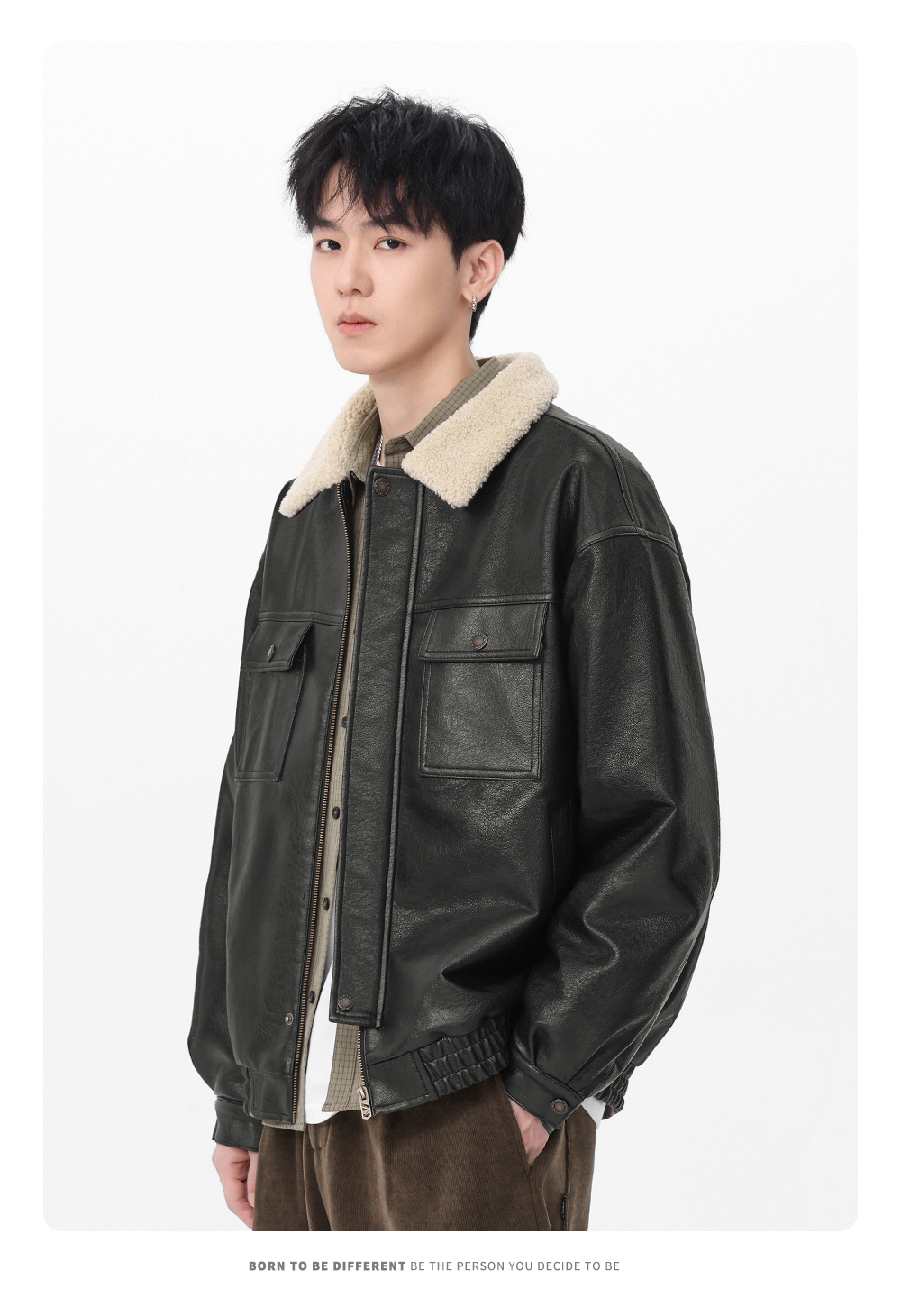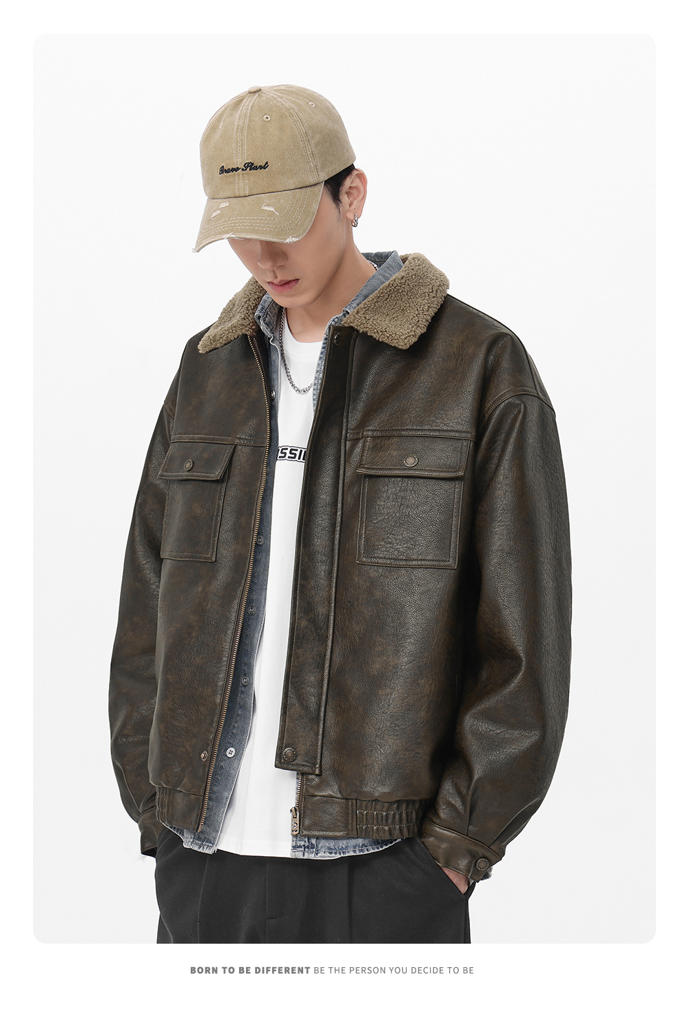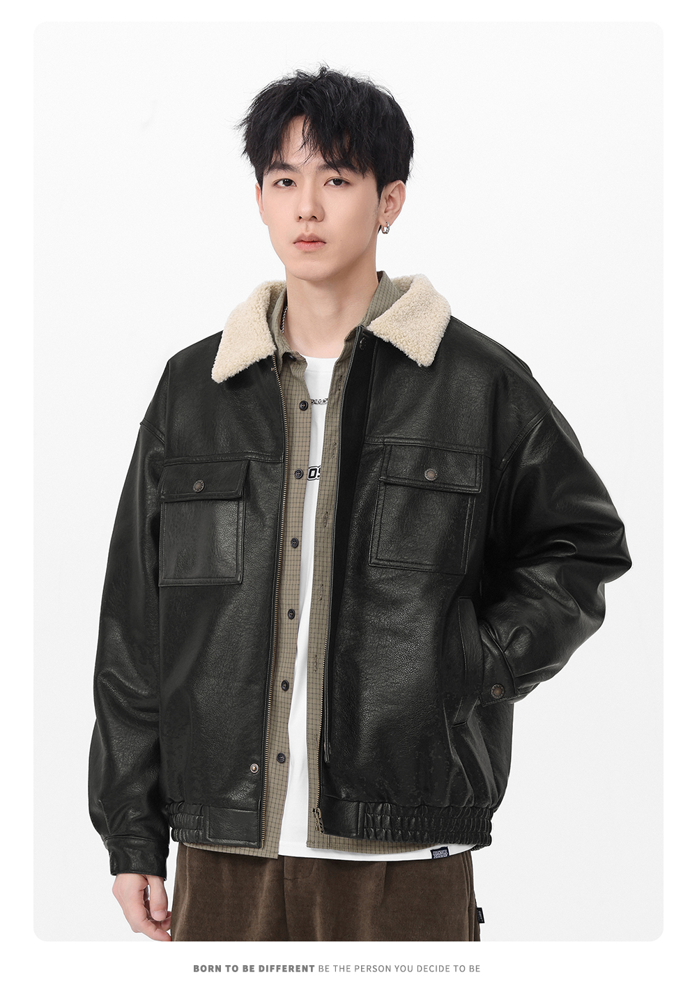 Gwit American Retro Heavy-Duty Pu Leather Winter Warm Melard Jacket Thickened Lamb Fur Coat for Men