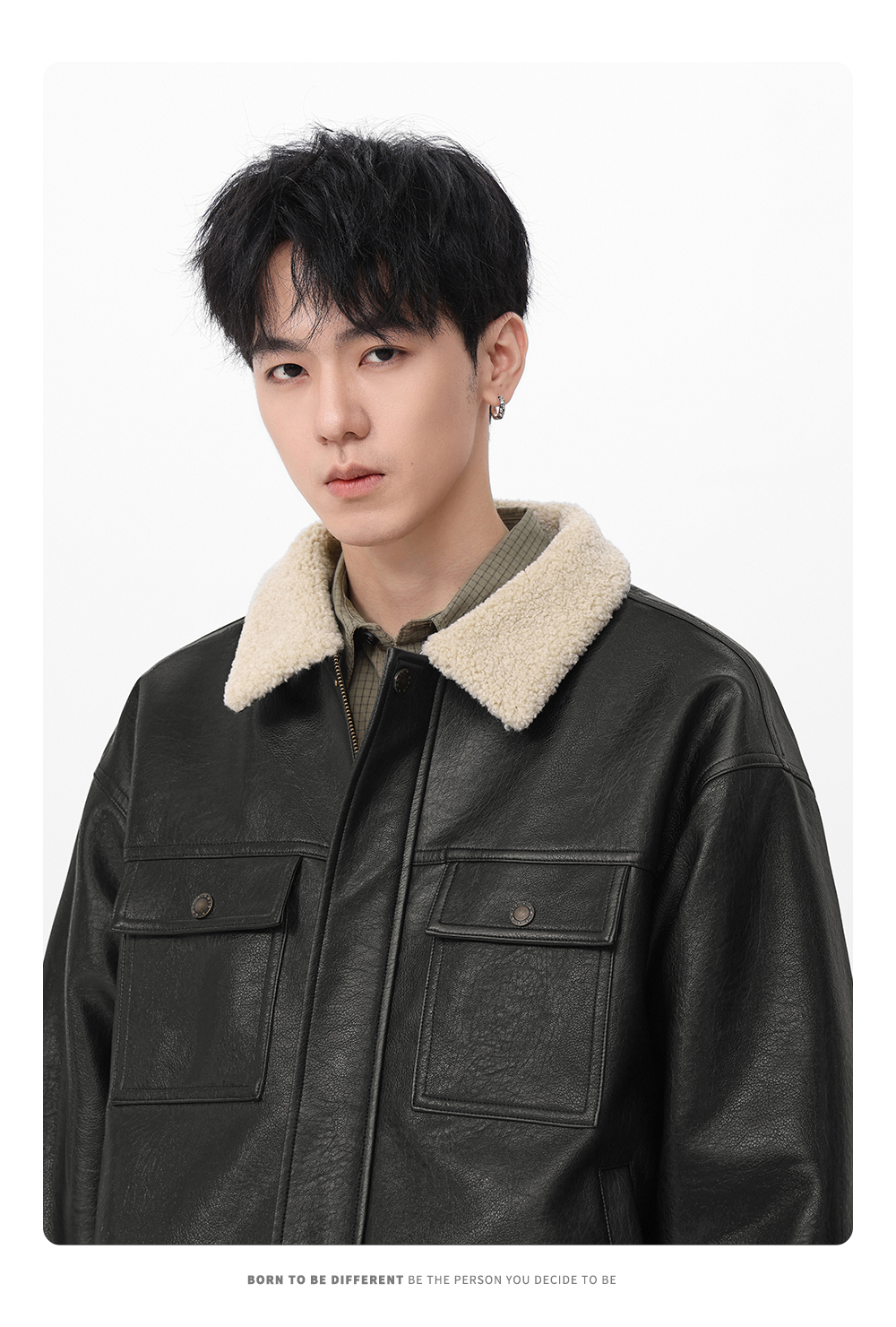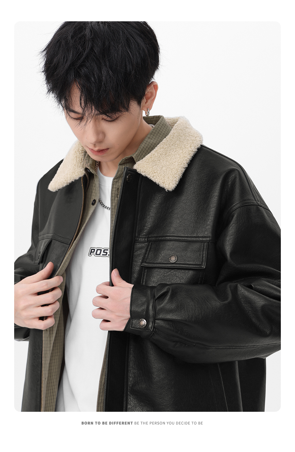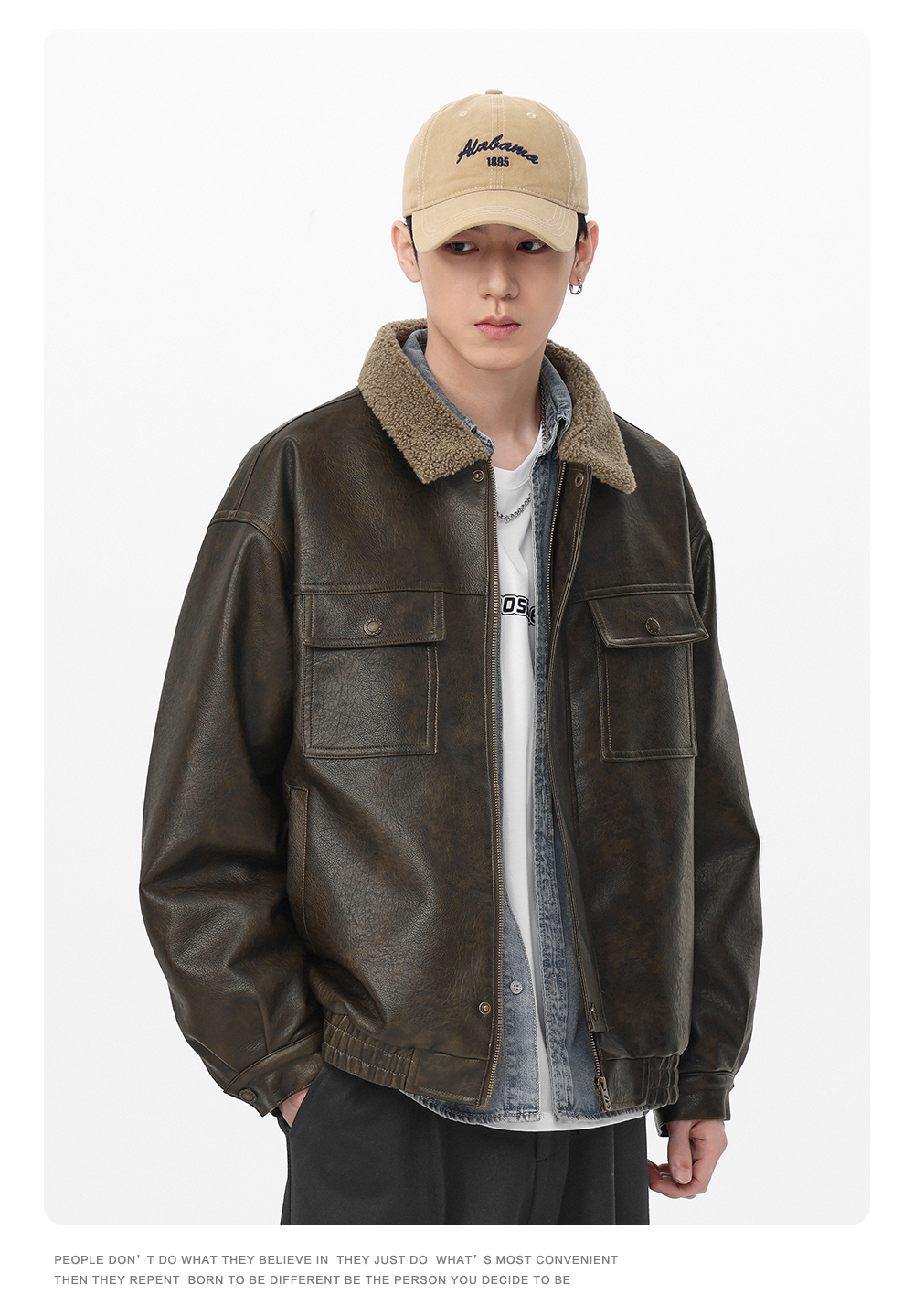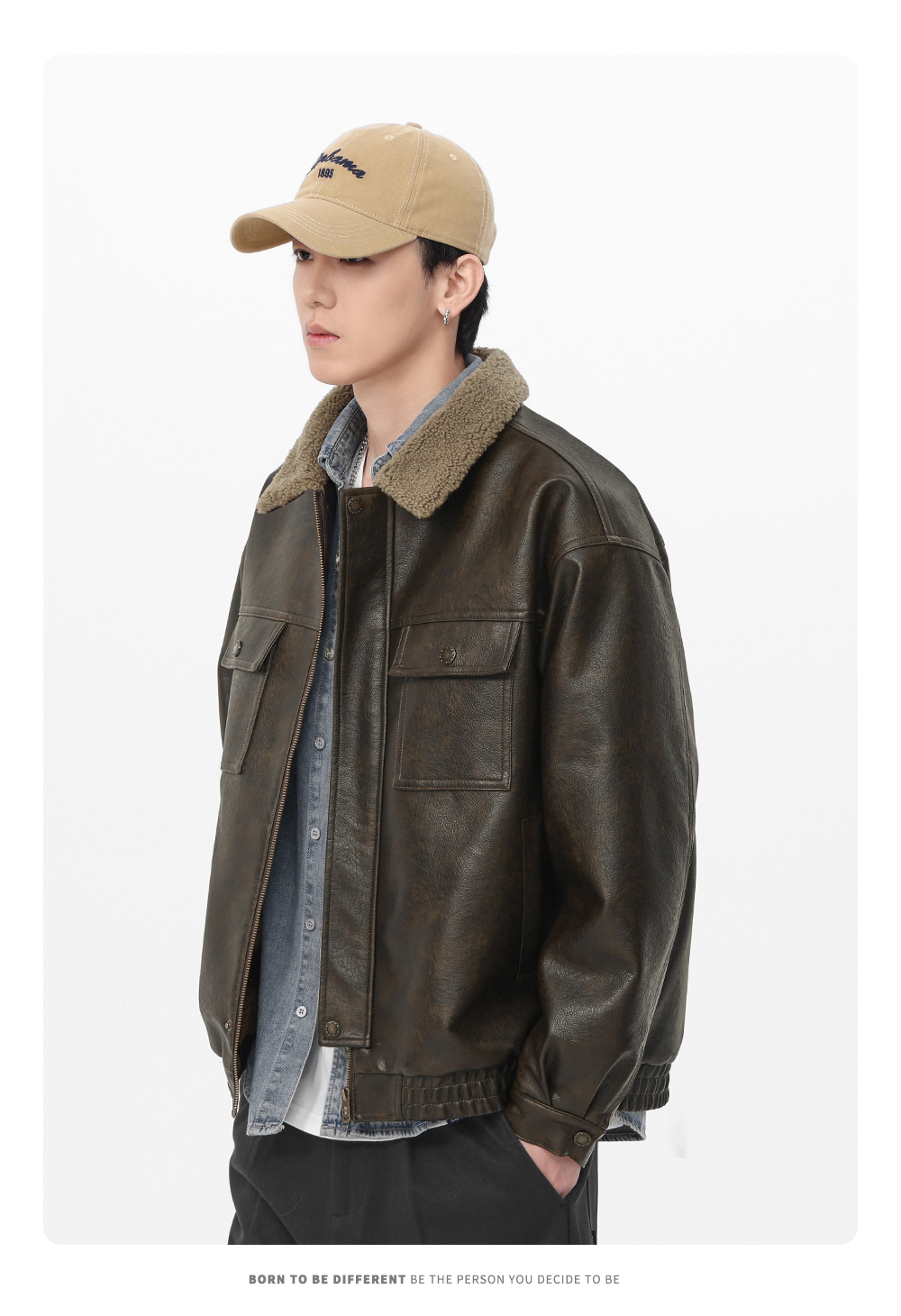 Gwit American Retro Heavy-Duty Pu Leather Winter Warm Melard Jacket Thickened Lamb Fur Coat for Men