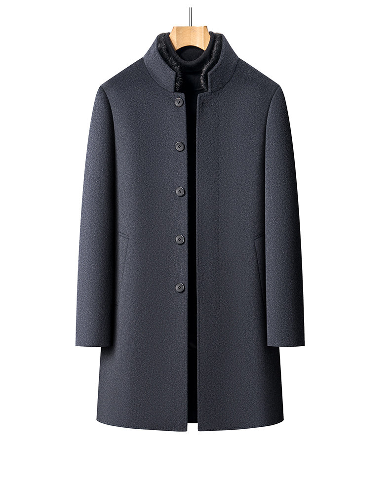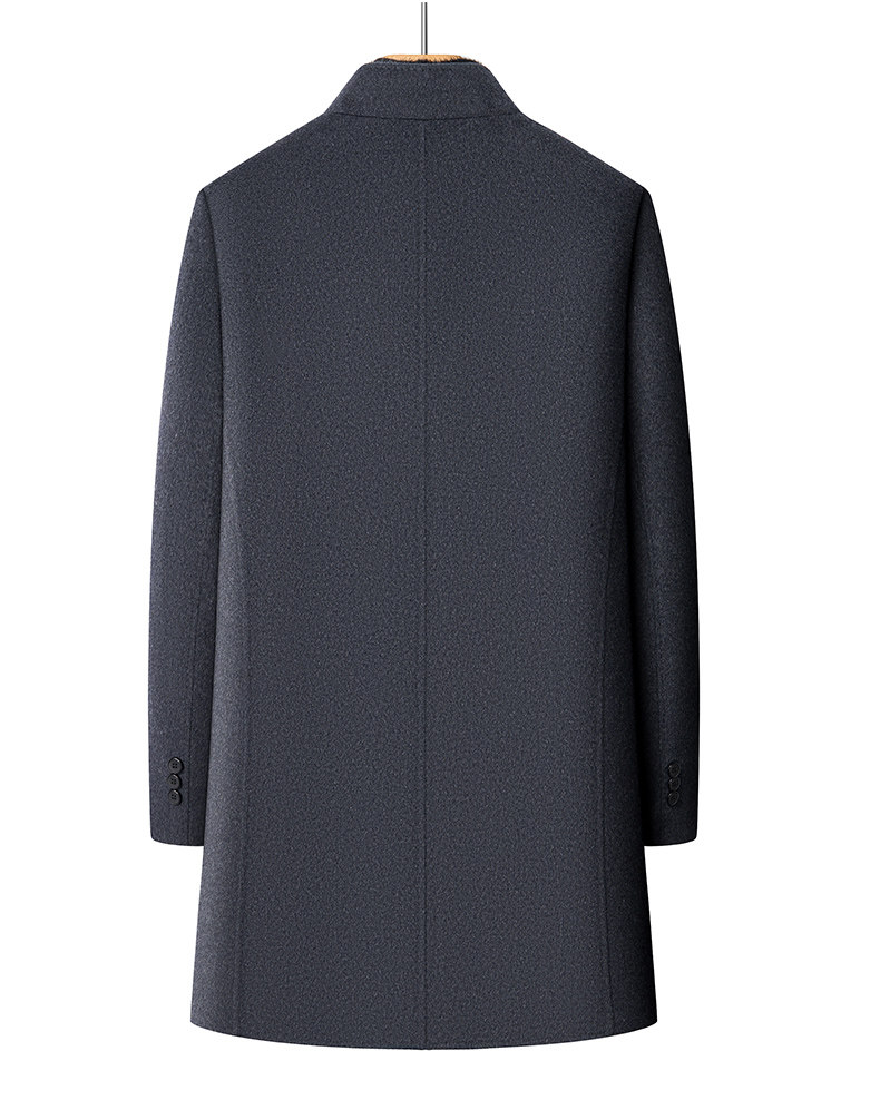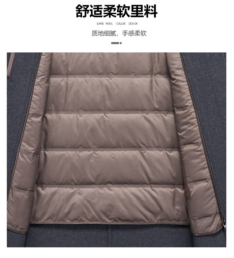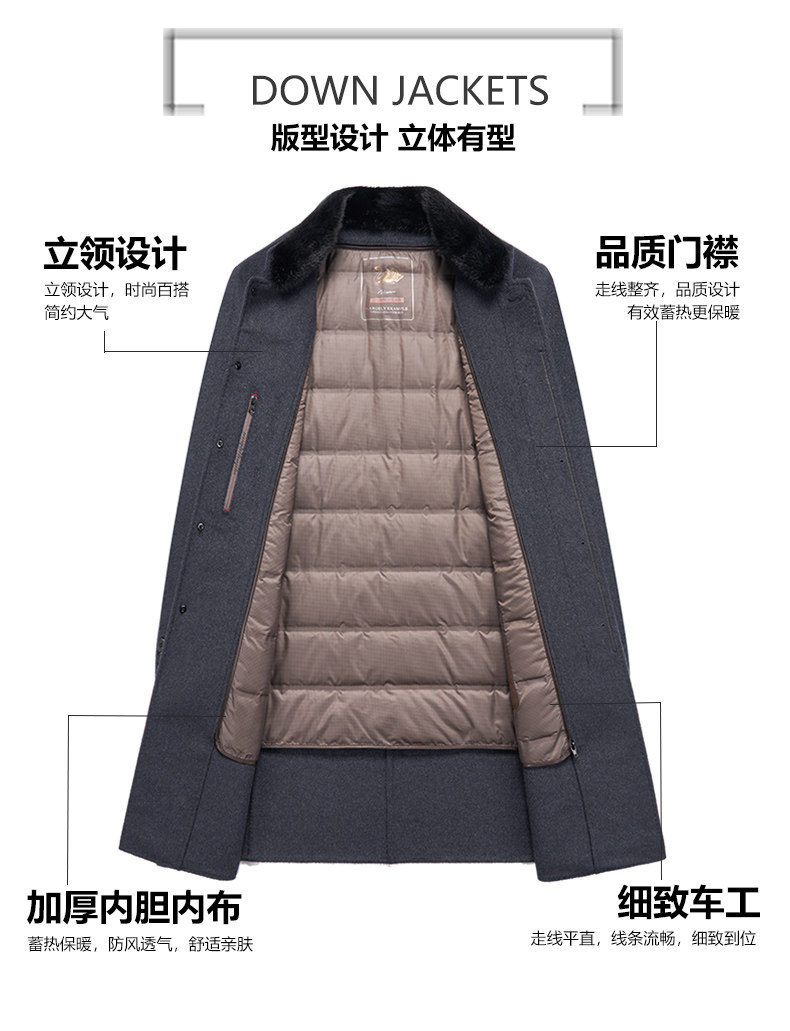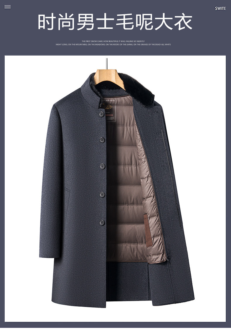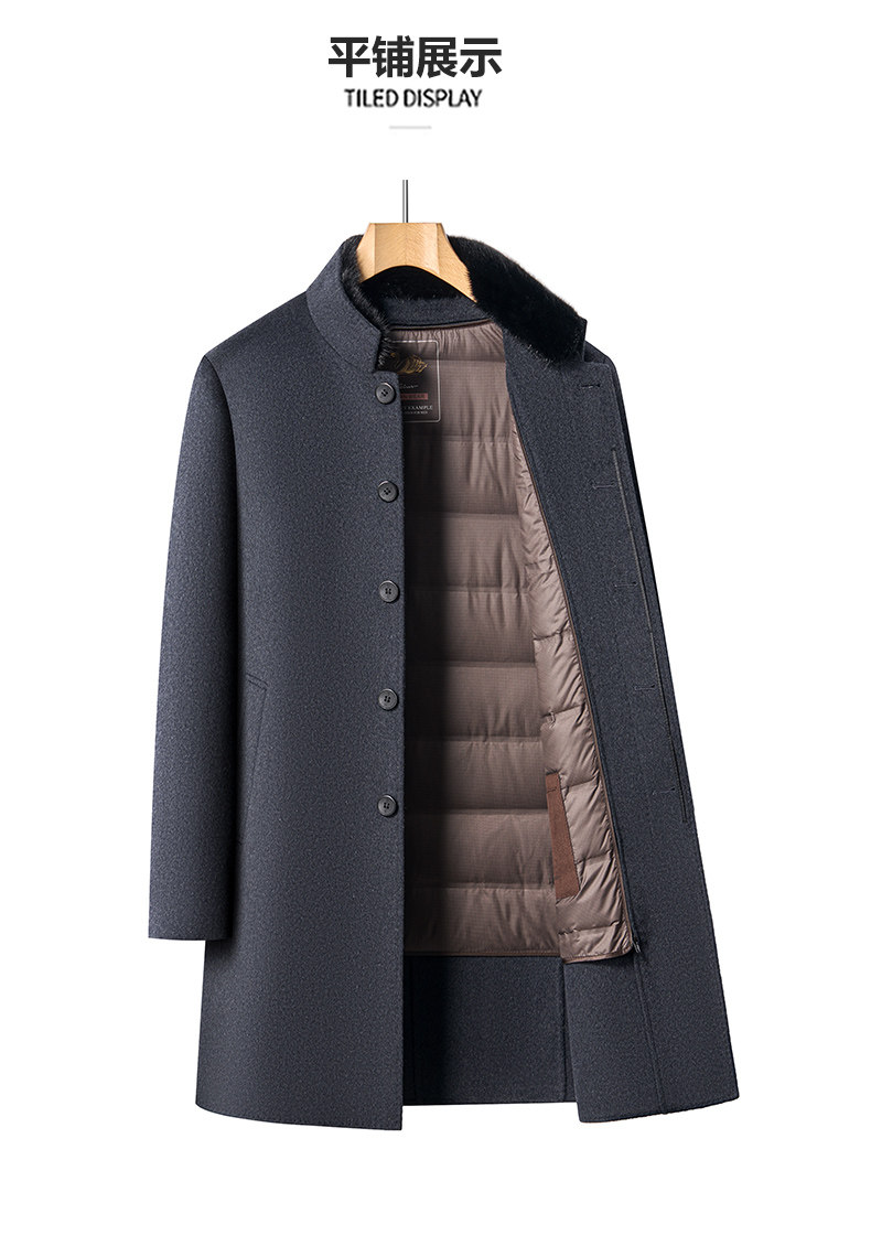 Hengyuanxiang Winter Woolen Coat for Middle-Aged Men, Down-Lined, Thickened, Mid-Length Trench Coat for Men