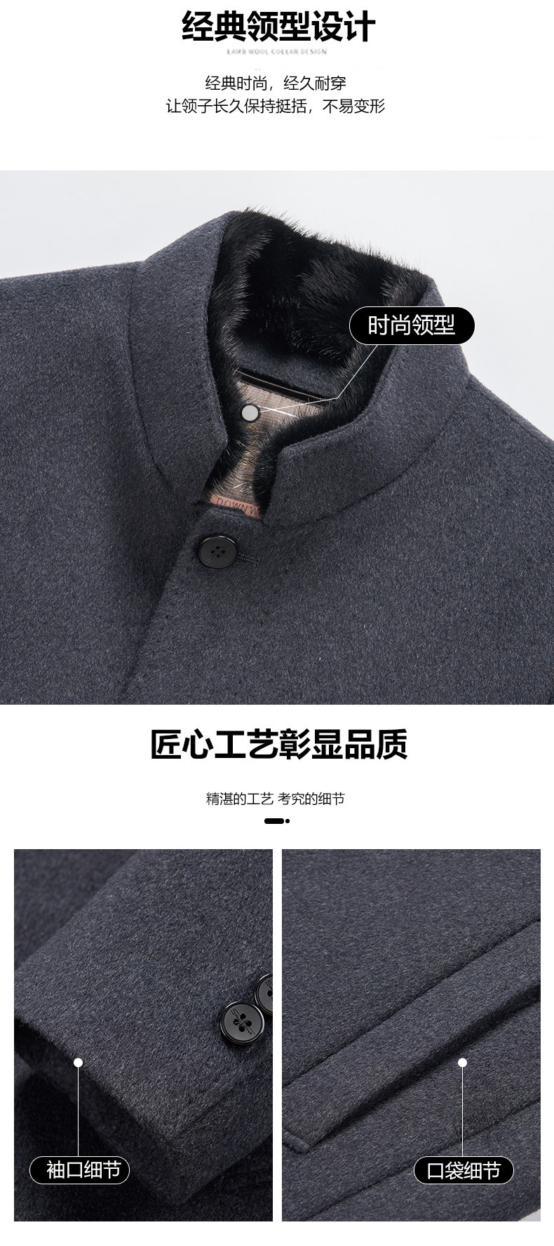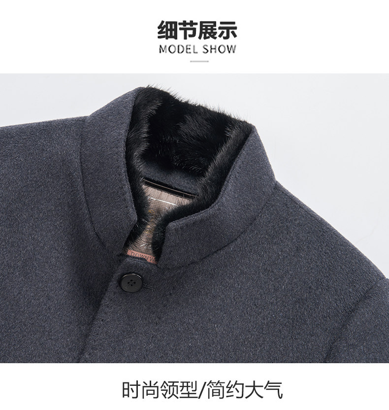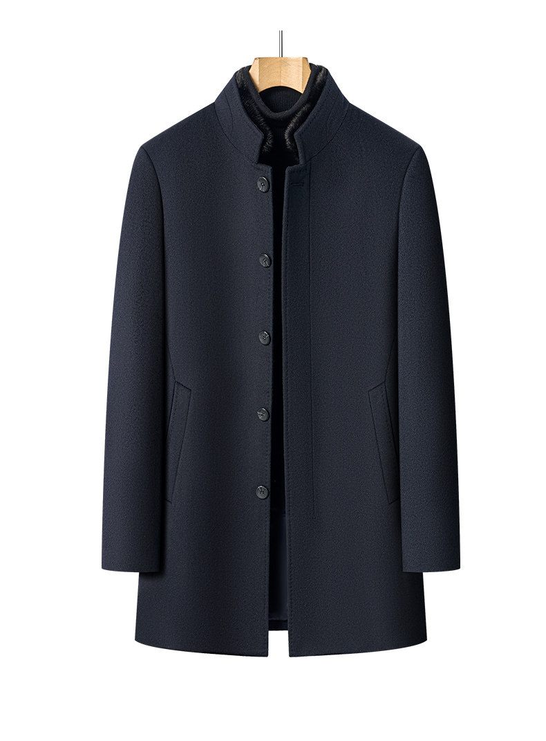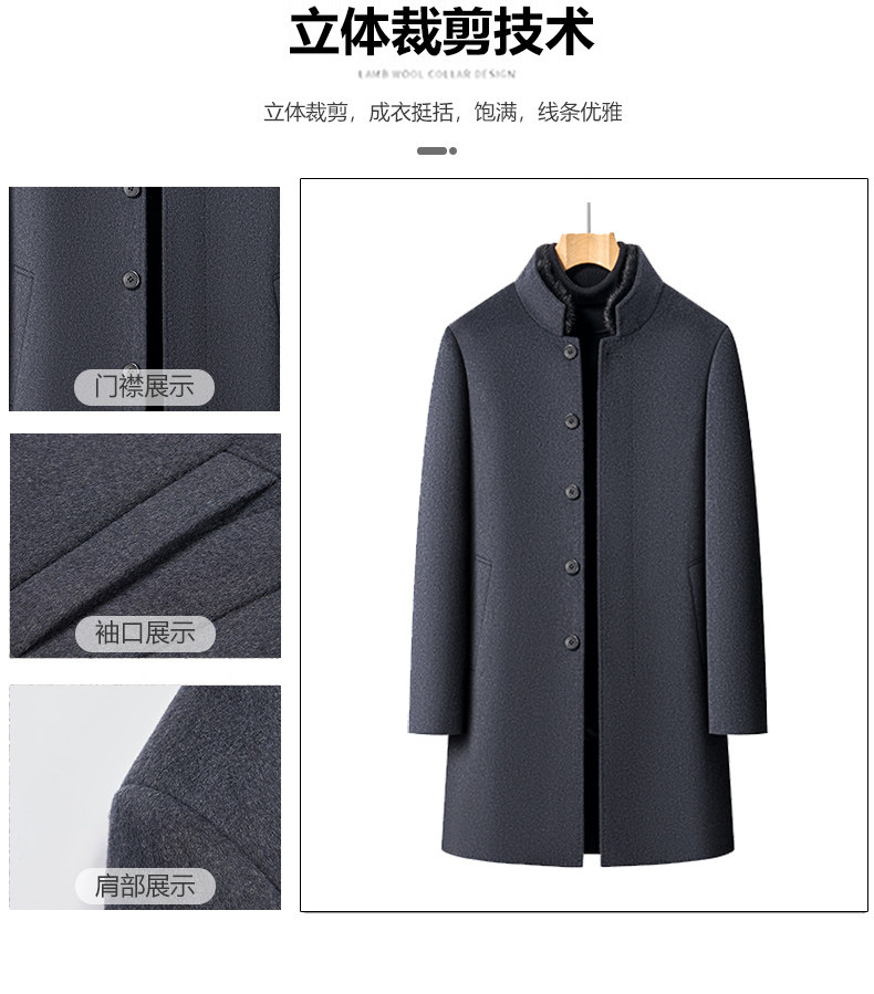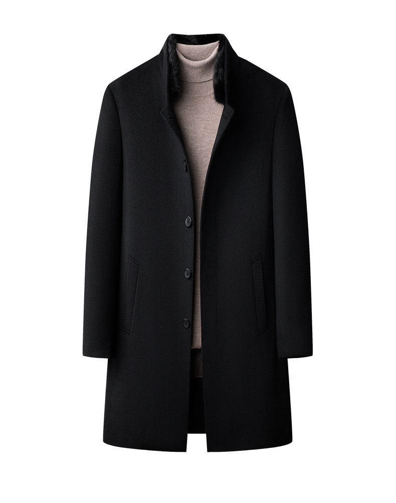 Hengyuanxiang Winter Woolen Coat for Middle-Aged Men, Down-Lined, Thickened, Mid-Length Trench Coat for Men