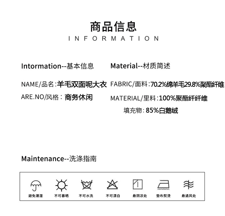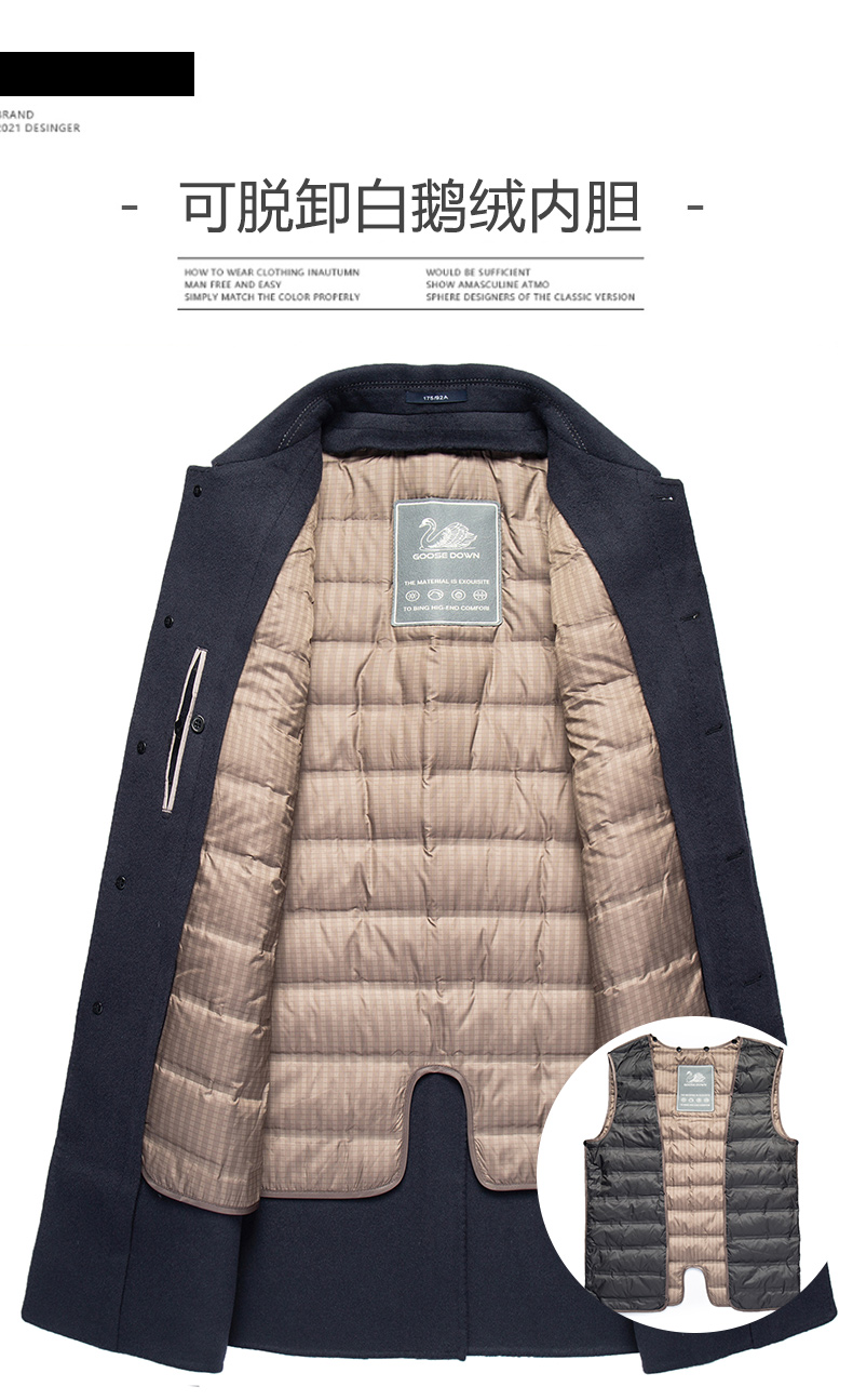 Double-Sided Wool Coat with Goose down Lining, Winter High-End Lapel Goose down Lining Jacket, Goose down Lining Jacket