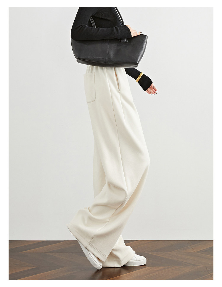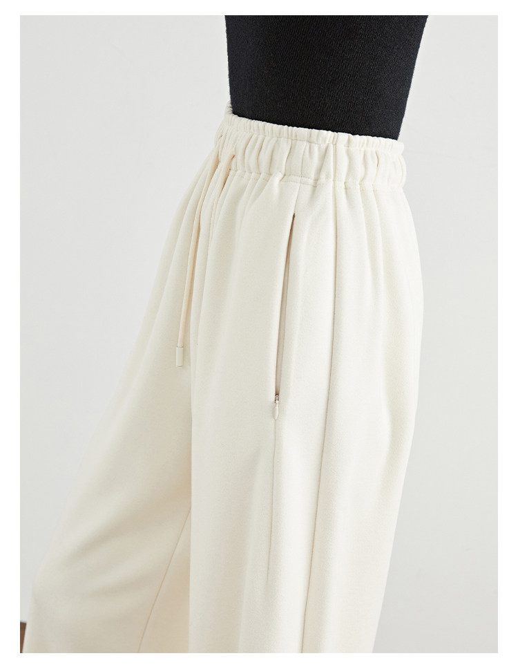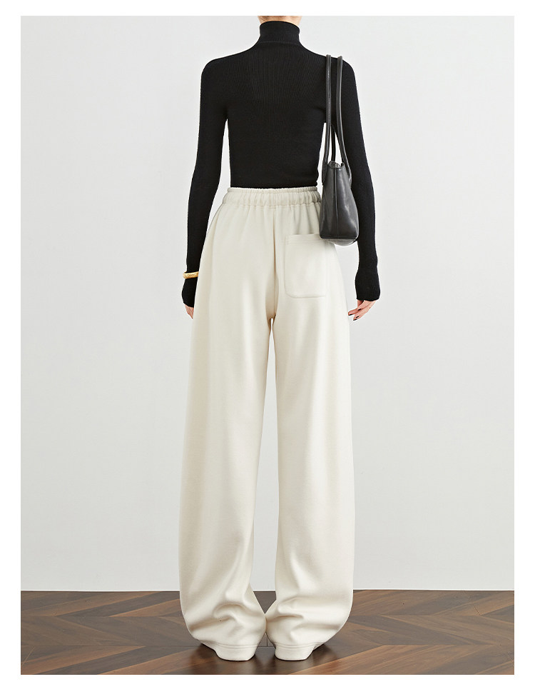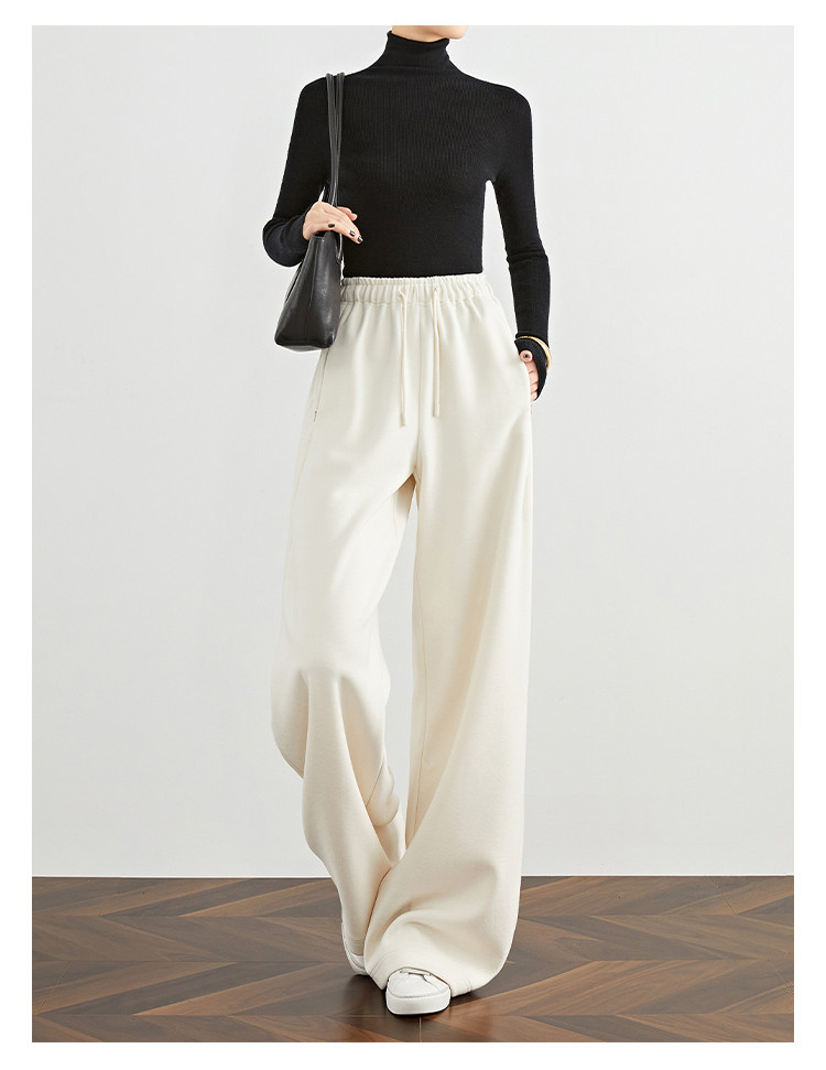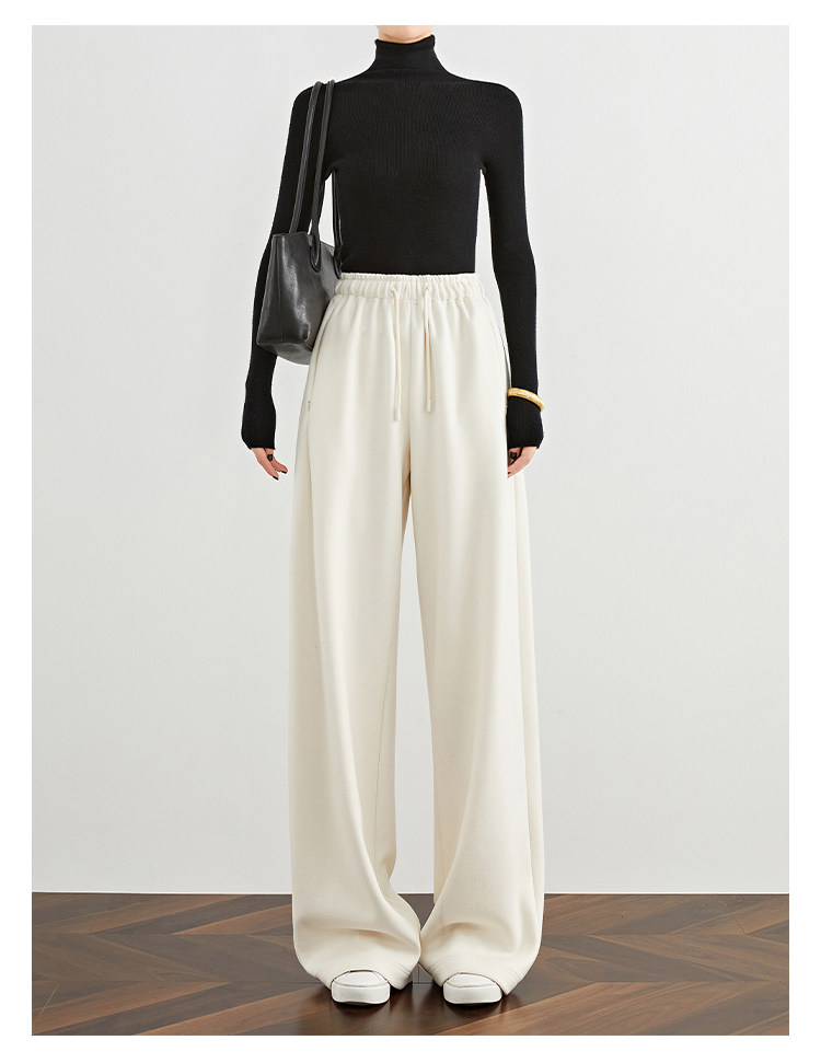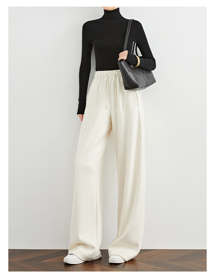 Faesslin【Soft Wool】Off-White Wide-Leg Pants Straight-Leg Drape Long Woolen Thickened Casual Pants Winter