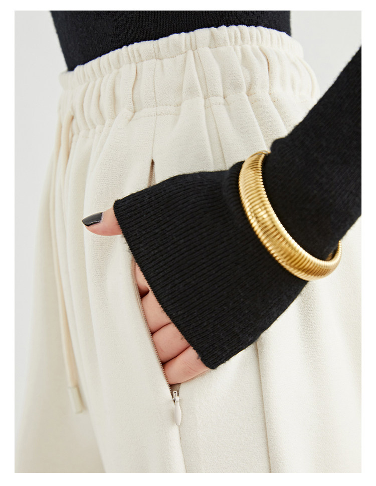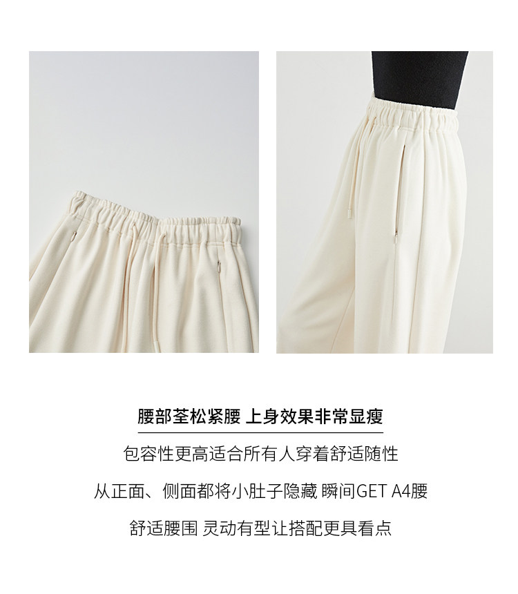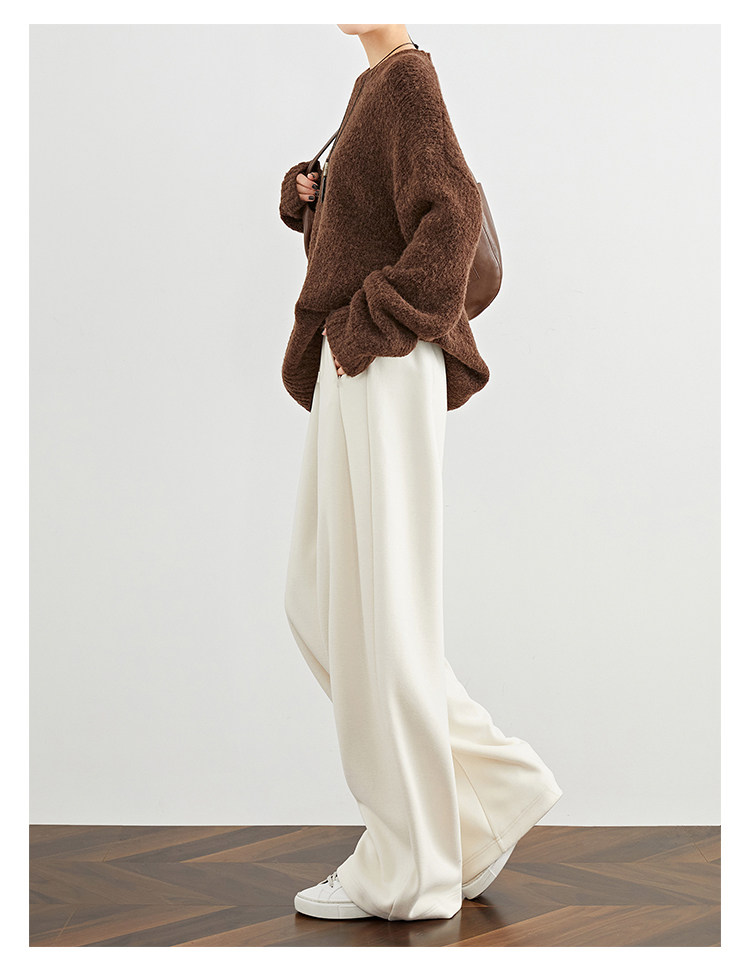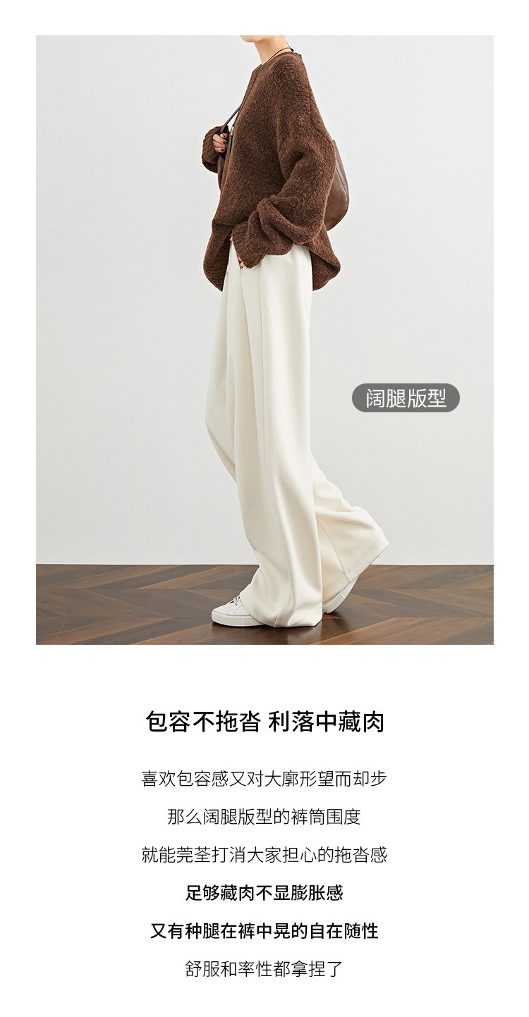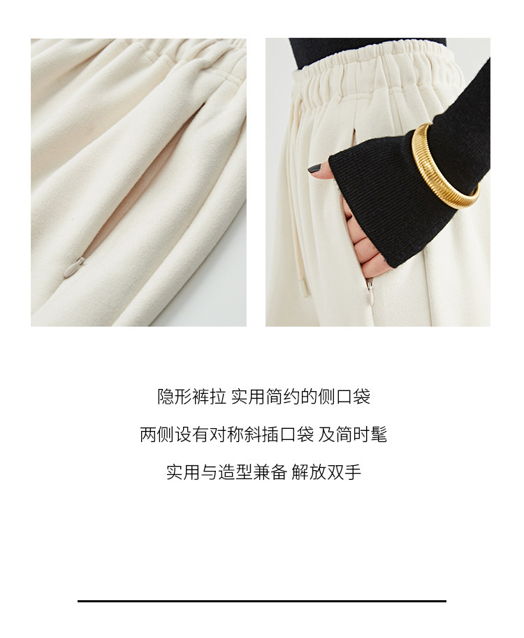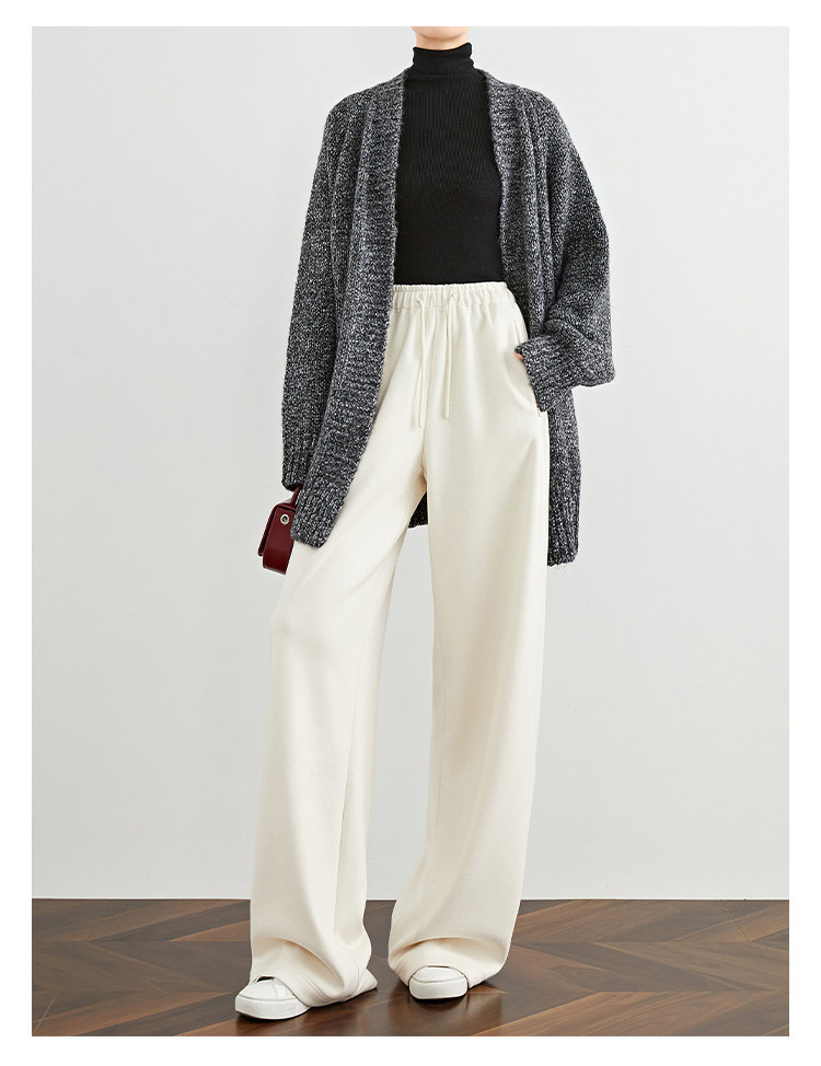 Faesslin【Soft Wool】Off-White Wide-Leg Pants Straight-Leg Drape Long Woolen Thickened Casual Pants Winter