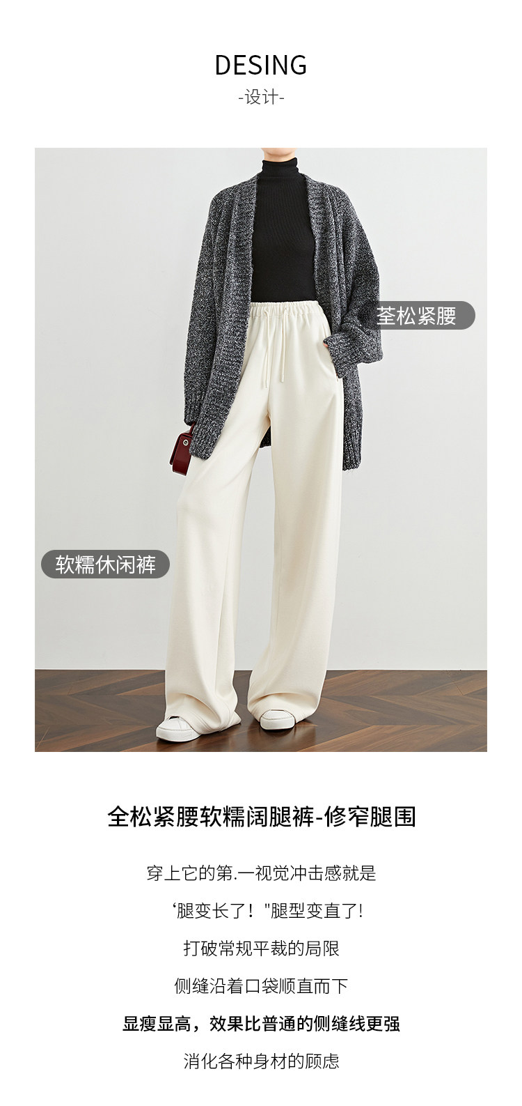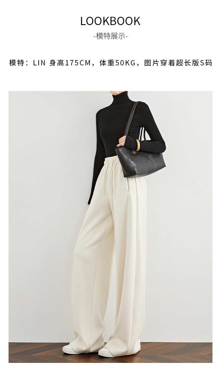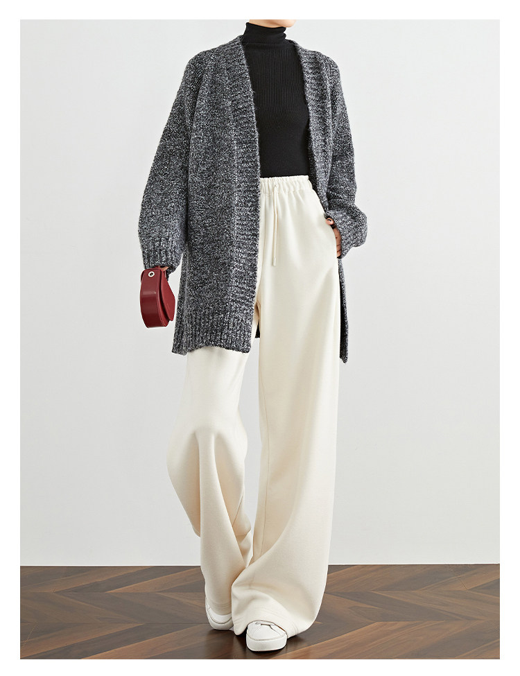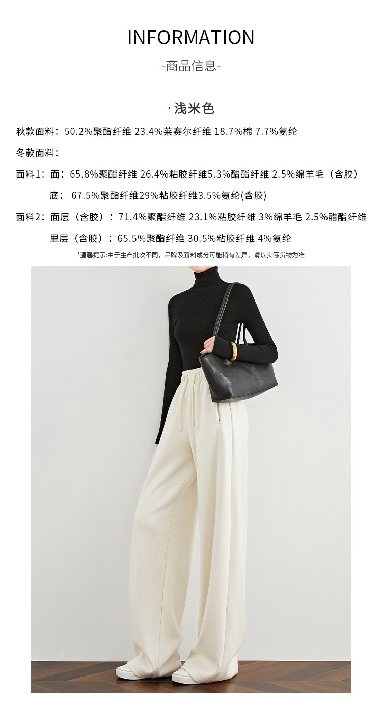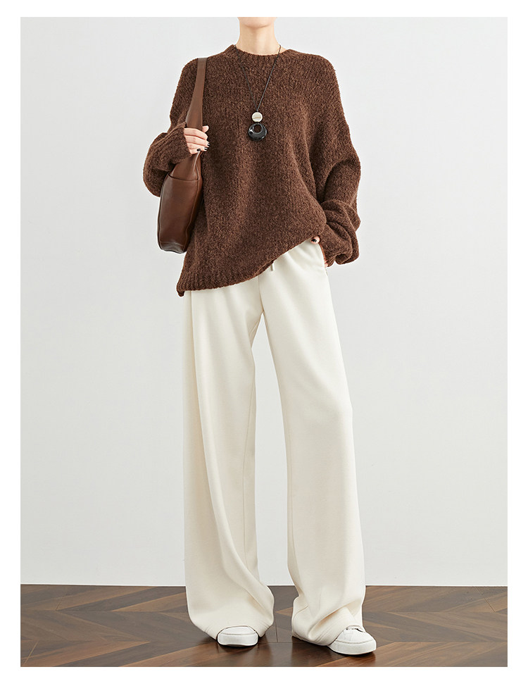 Faesslin【Soft Wool】Off-White Wide-Leg Pants Straight-Leg Drape Long Woolen Thickened Casual Pants Winter
