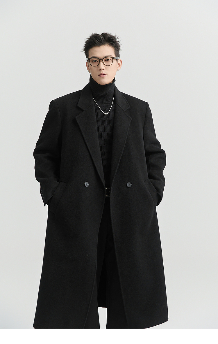 Camel Wool/100% Wool/Goose down Lining Long Woolen down Coat Over-The-Knee Men's Double-Sided Woolen Coat