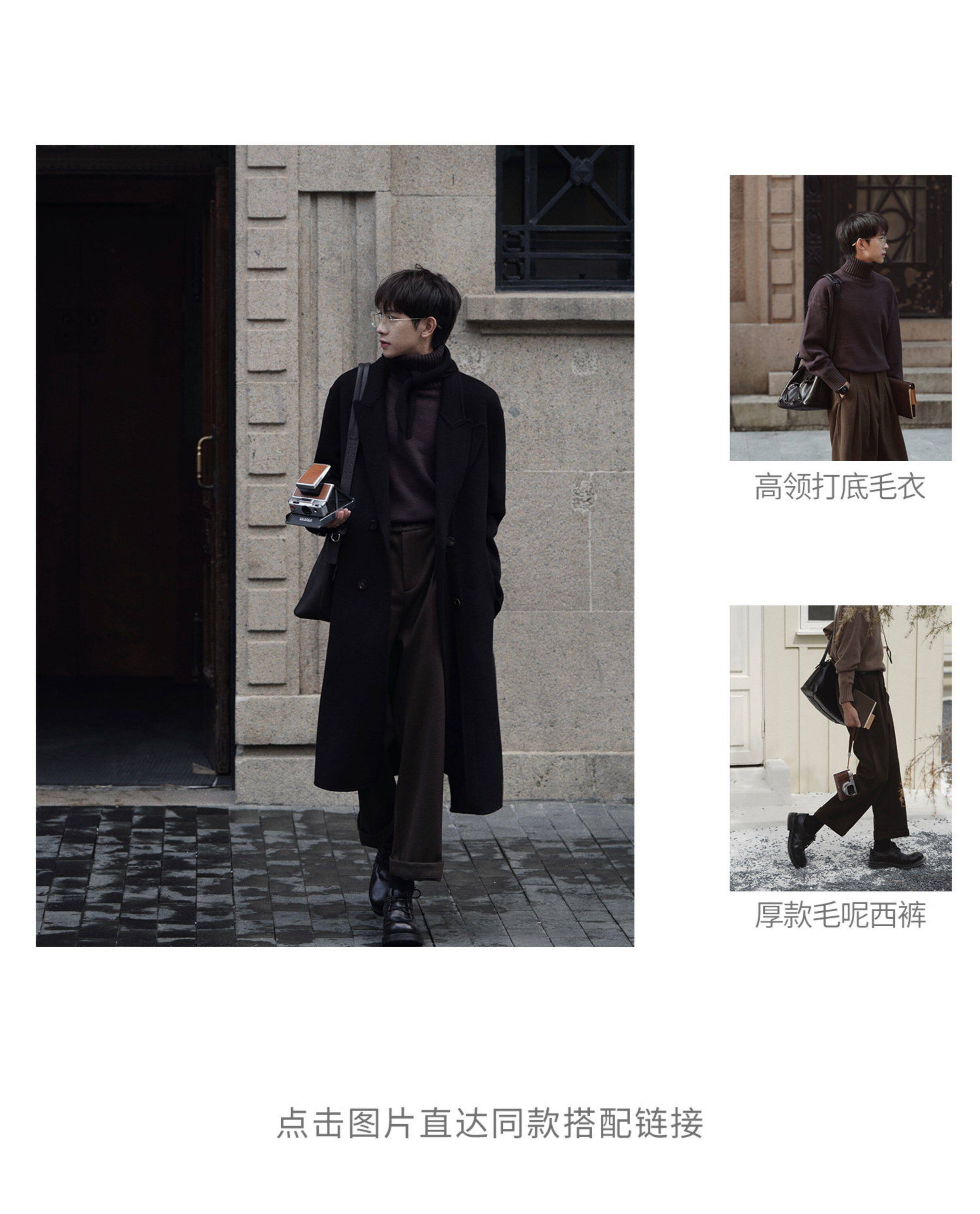 Eli【Norwegian Cedar】Double-Collar Design Australian Merino Wool Double-Sided Woolen Long Coat