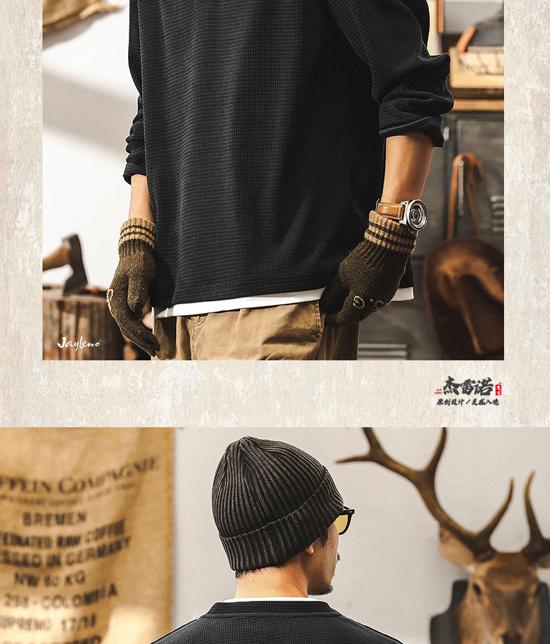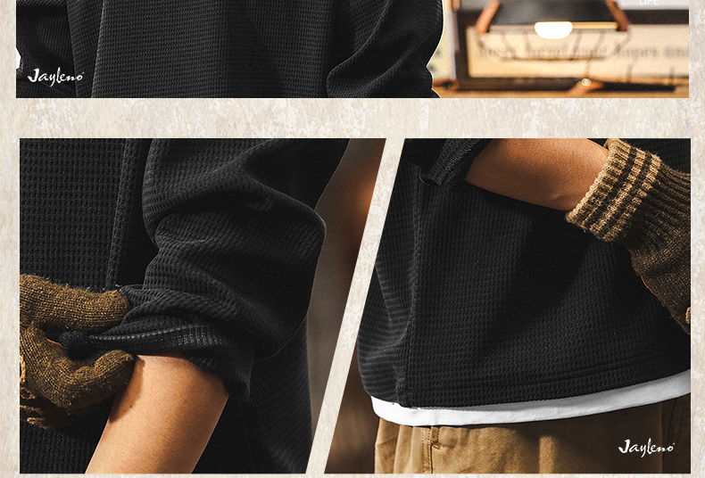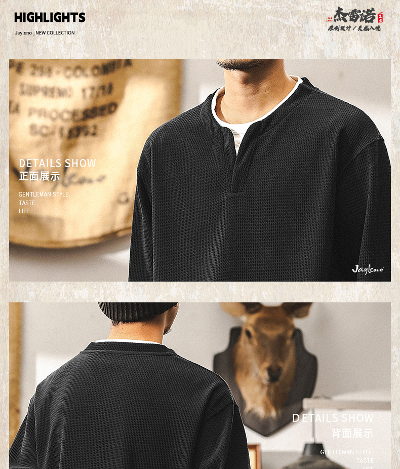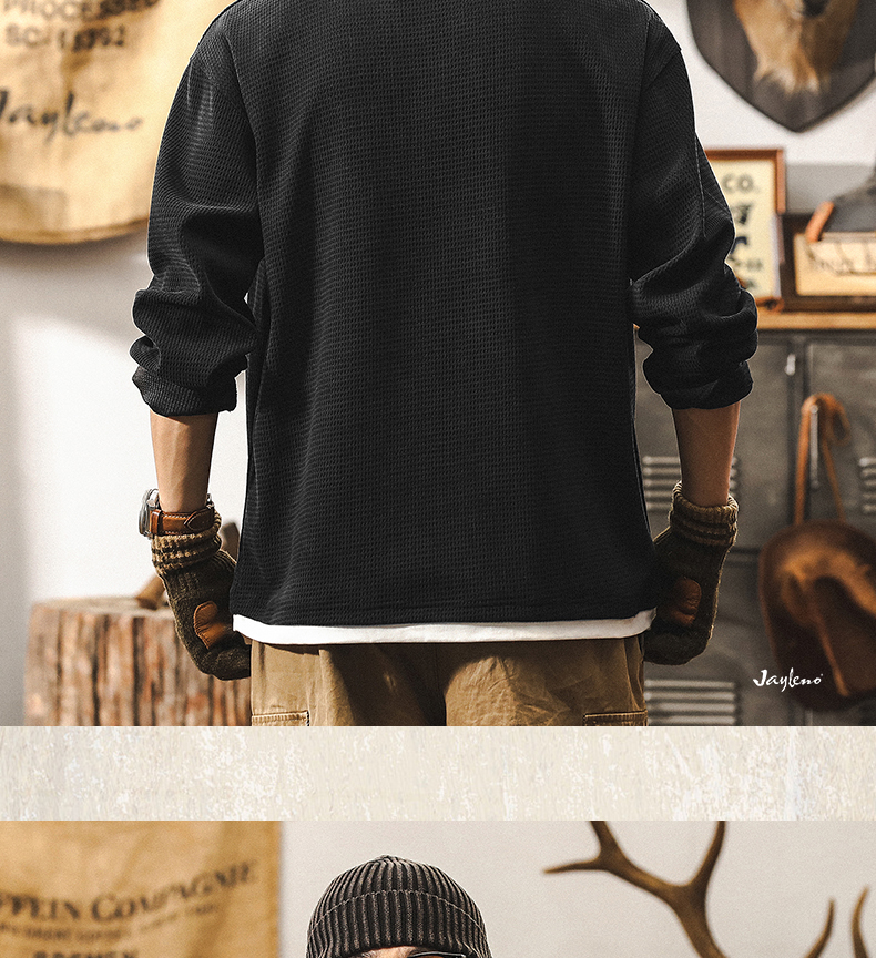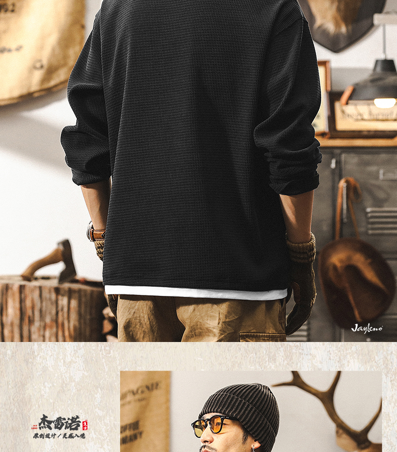 【Fake Two-Piece】American Retro Heavyweight European Cotton Fleece Long-Sleeve T-Shirt for Men, Autumn 2025 New Model, Tough Guy Henley Shirt