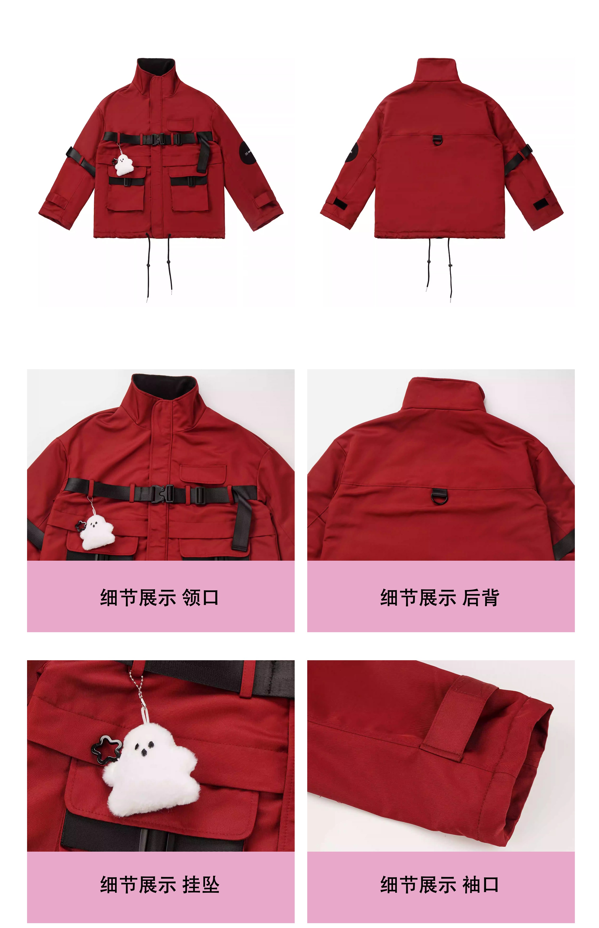 Pinksavior/Winter Whispers/Red and Black Workwear Fleece-Lined Jacket, Special Design for Winter, Christmas and New Year