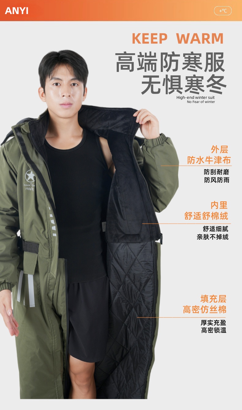 Motorcycle Riding One-Piece Windproof Cold Storage Ski Cold-Proof Clothing Russian Minus 60 Degree Military Coat Fishing Winter