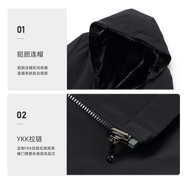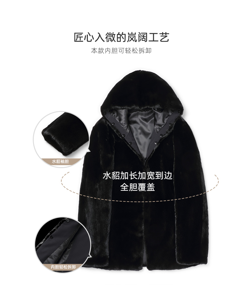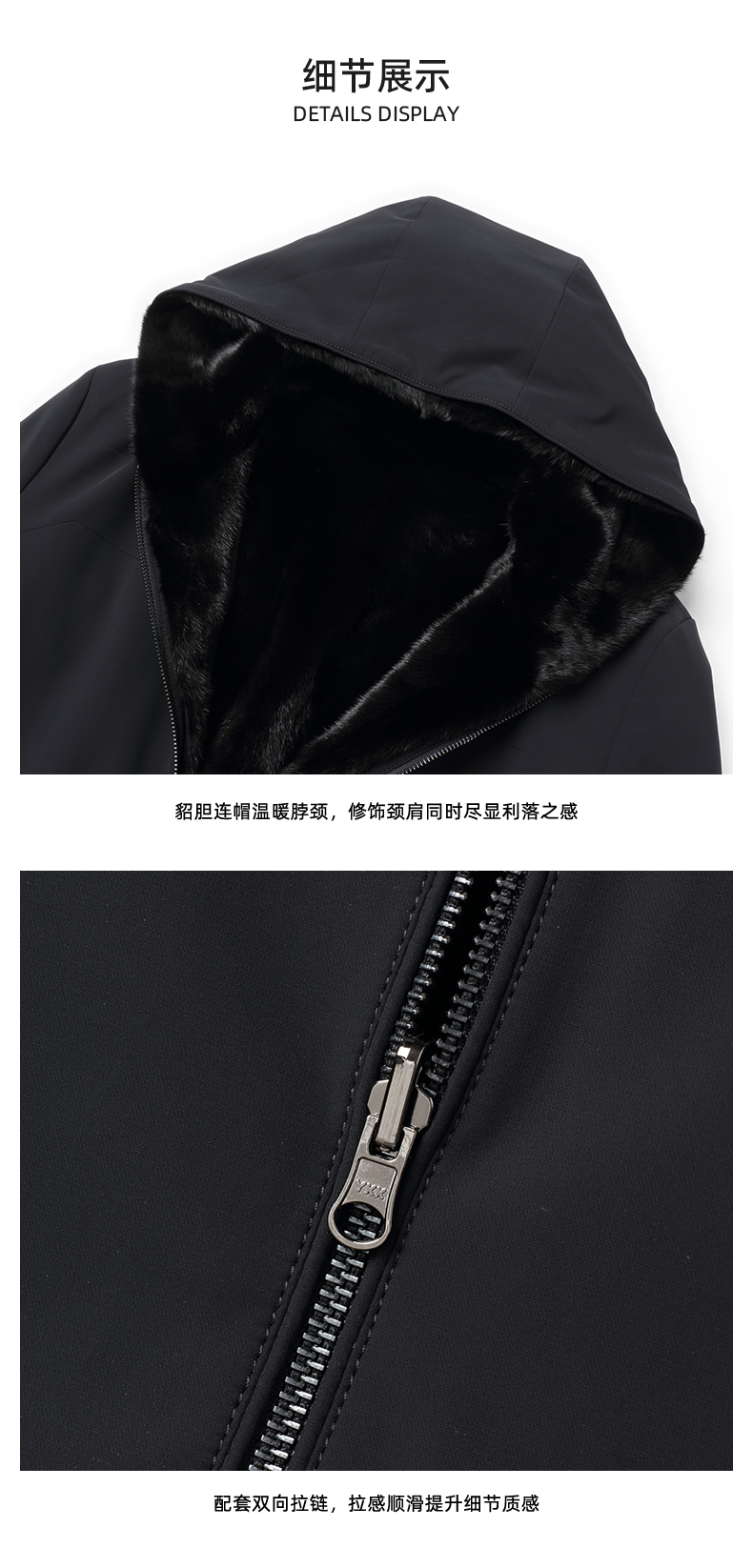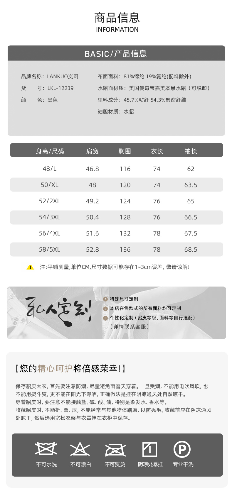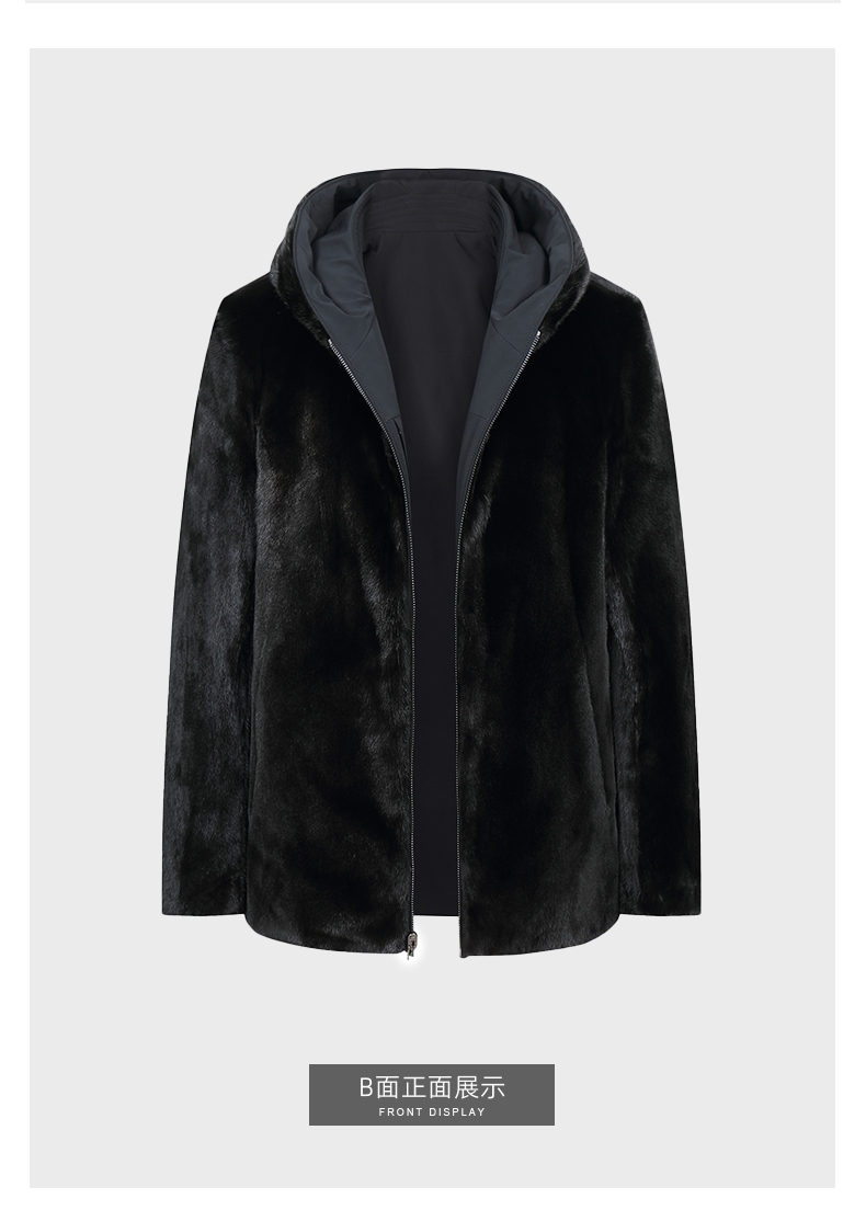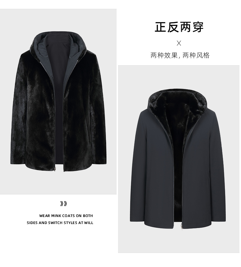 Lankuo High-End Blackglama Mink Coat, Reversible American Black Mink Fur Jacket, Parka