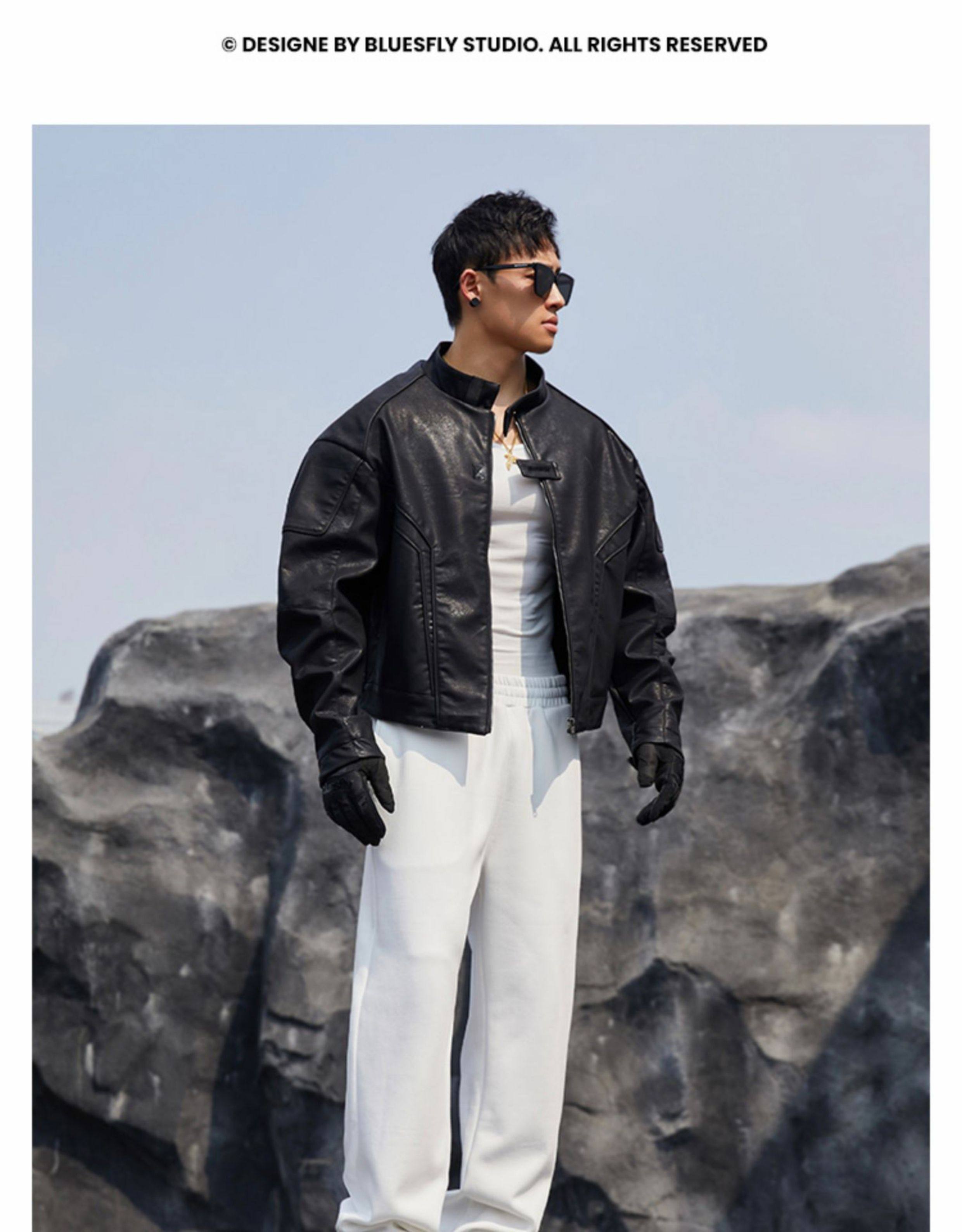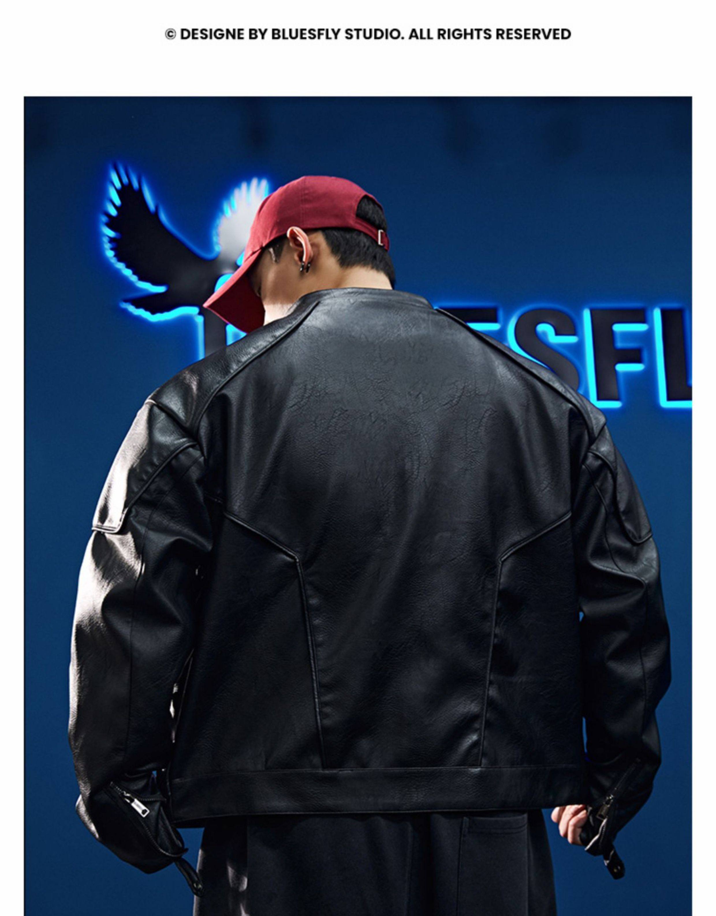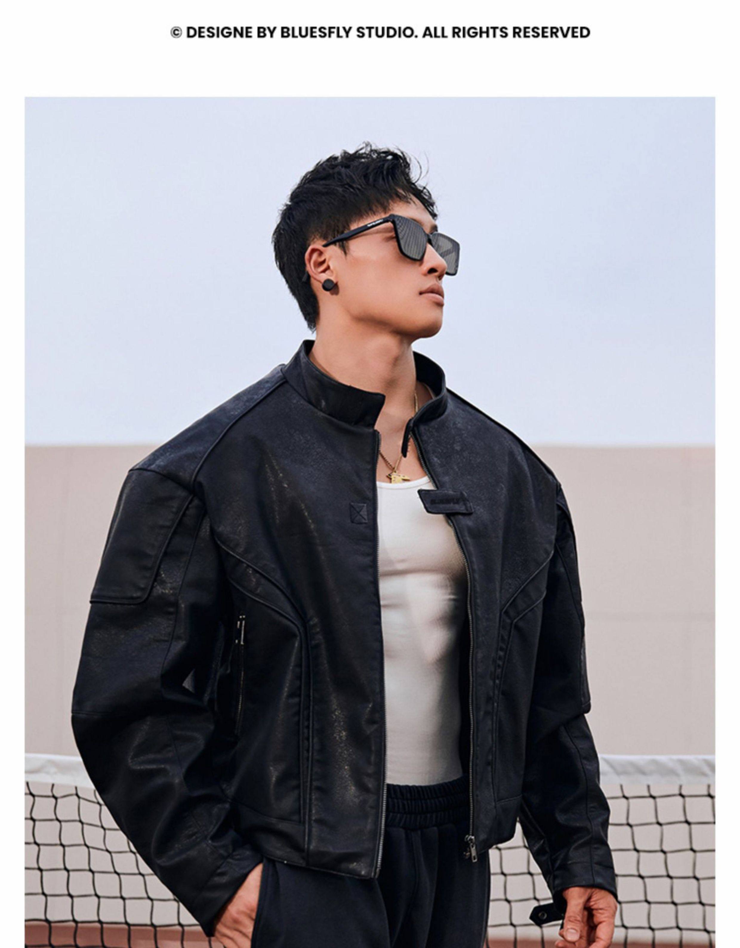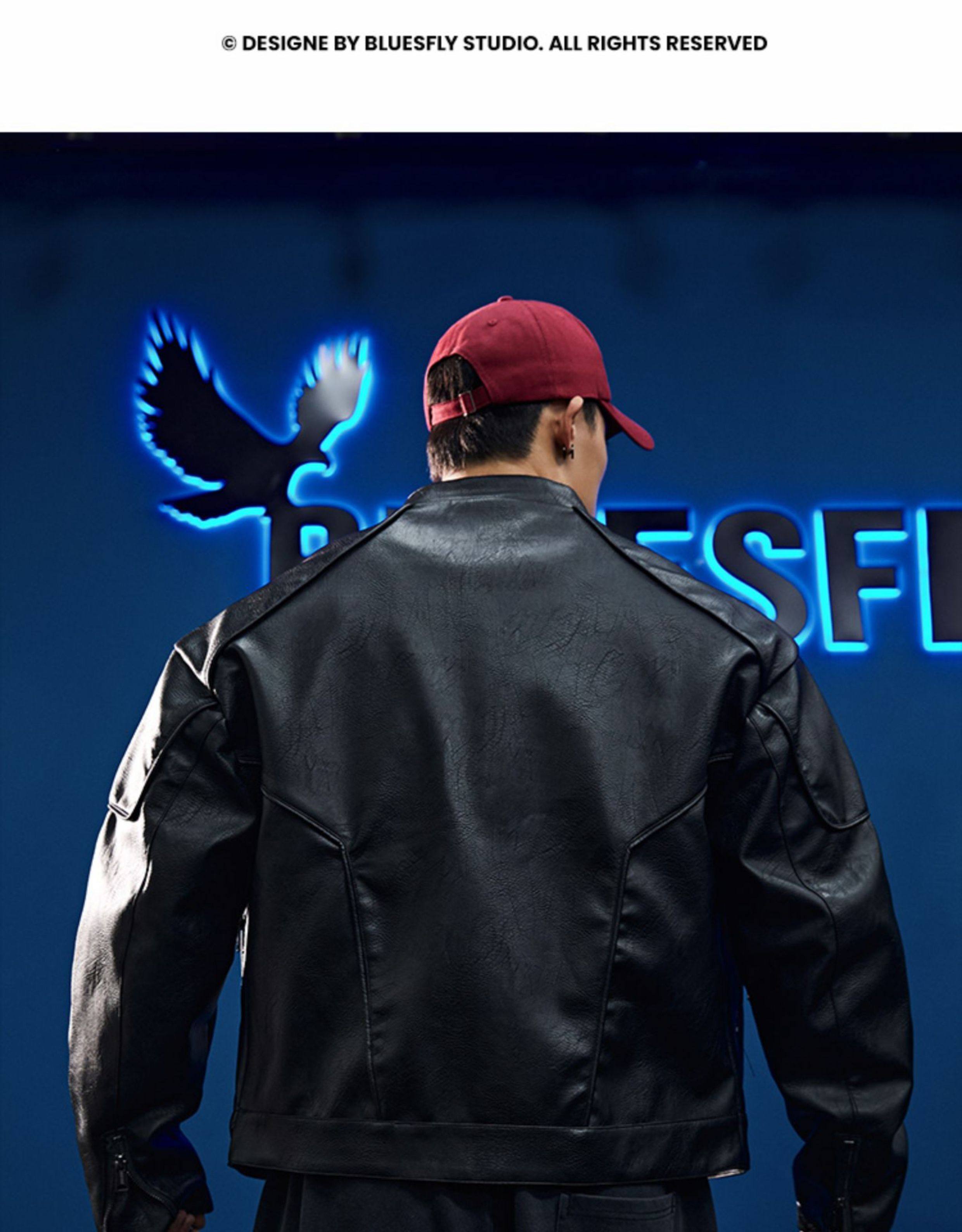Bluesfly American-Style Leather Jacket for Men, Cool and Stylish Silhouette, Three-Dimensional Cut, Deconstructed Zipper, Biker Jacket